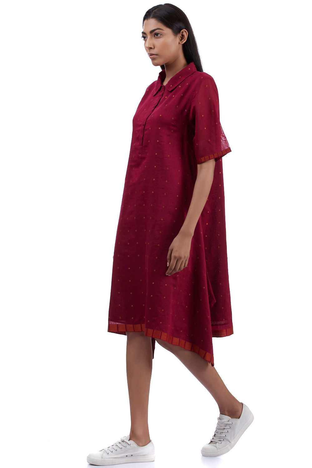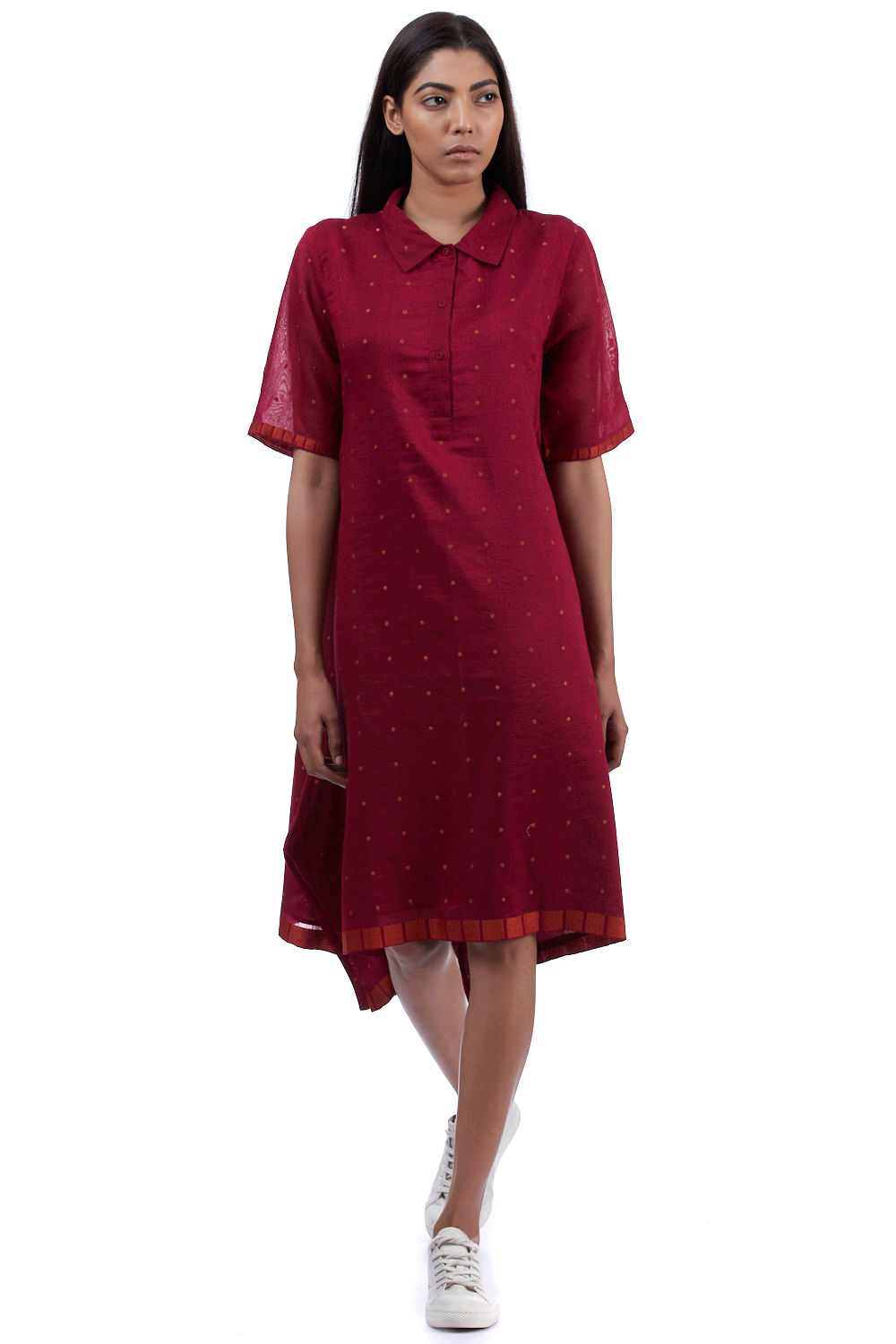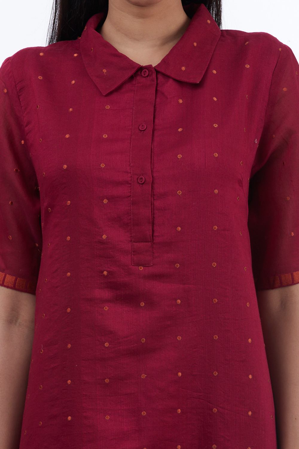 Regular Fit Kurta Can Also Be Worn As A Dress. Features All Over Embroidered Polka Dots And Exclusively Handwoven Border. Garments Are Made From Fabric That Is Washed And Pre-Shrunk To Give A Superior Hand.