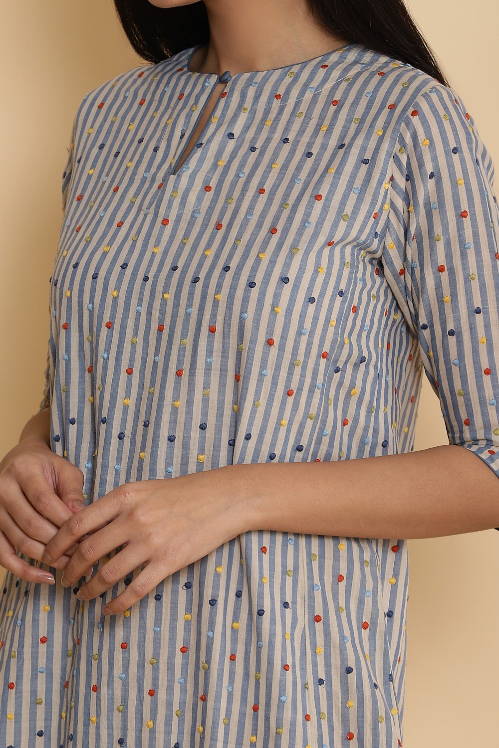 Handwoven Striped Cotton Long Kurta.