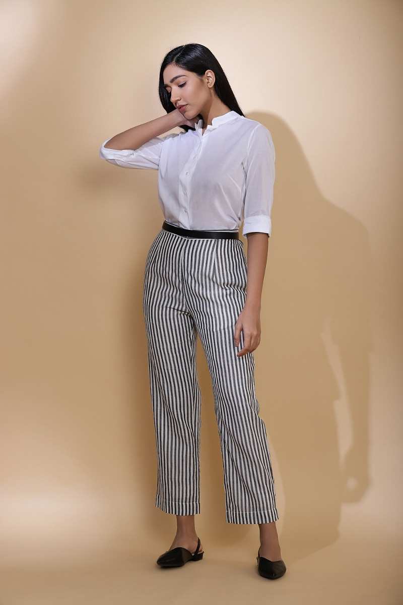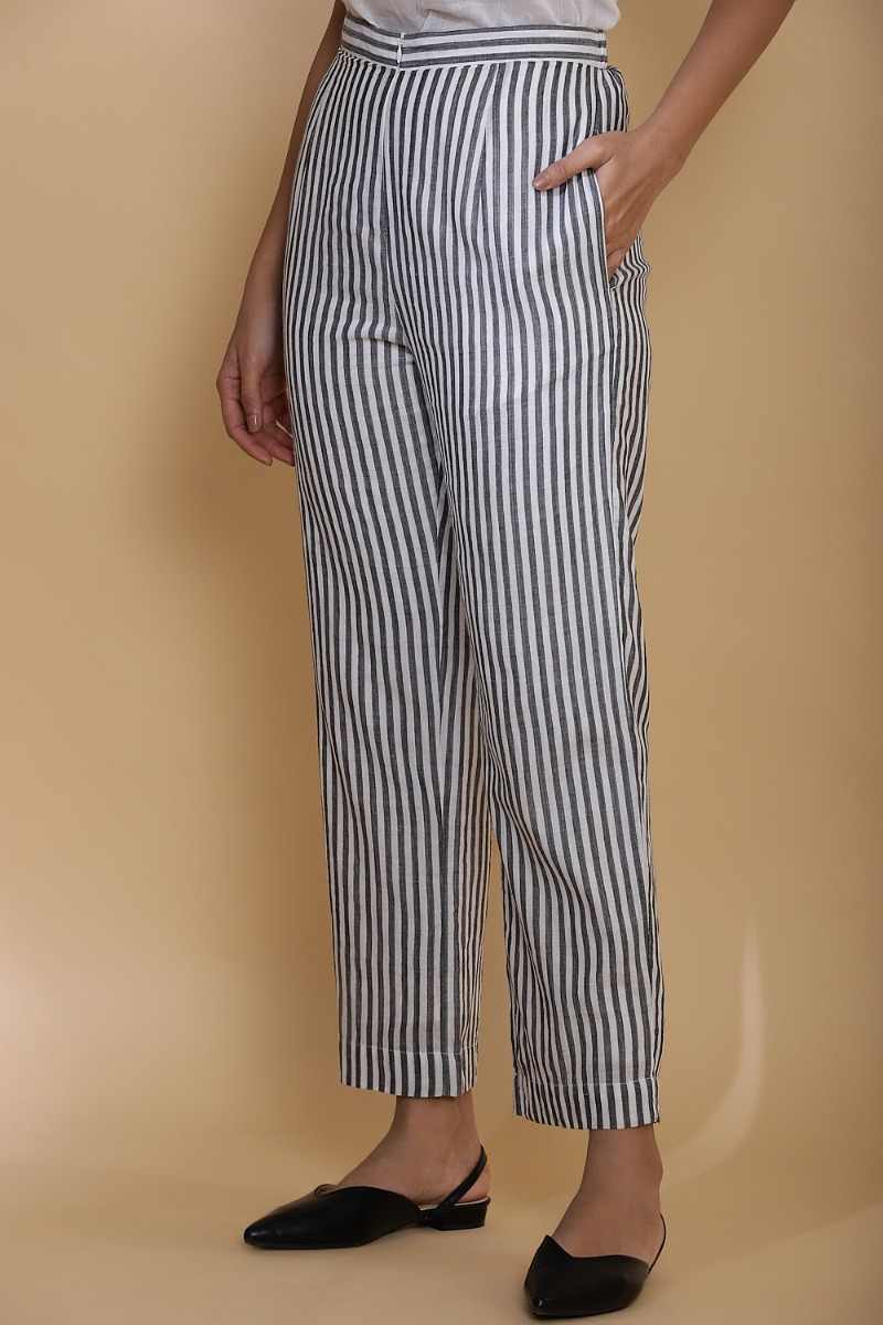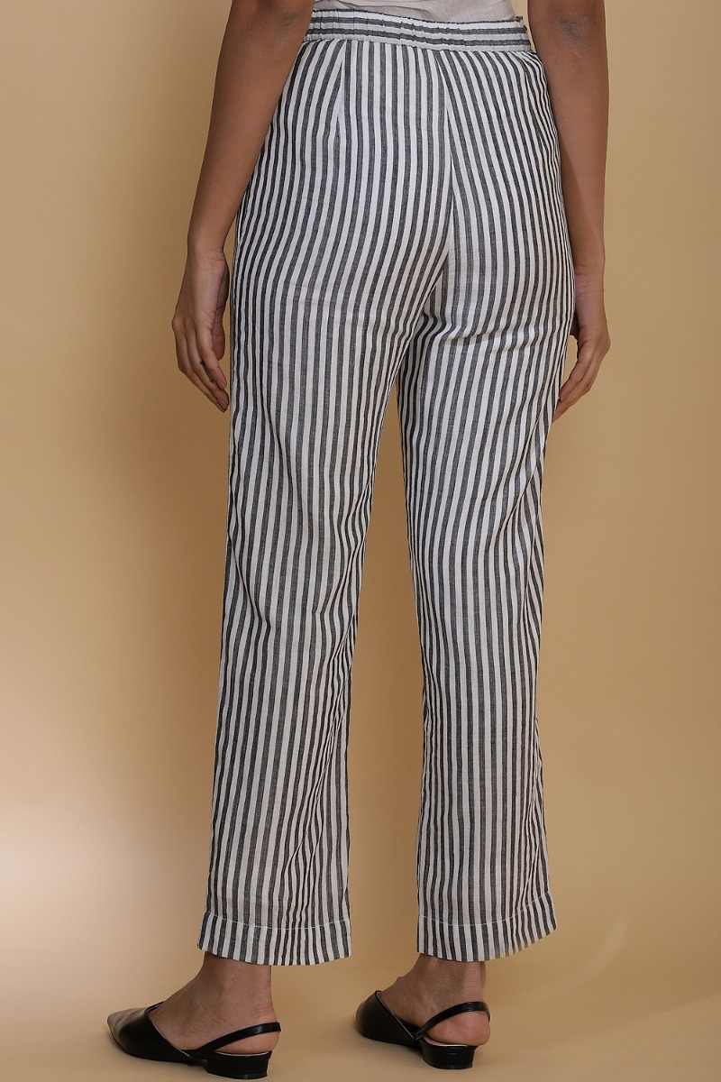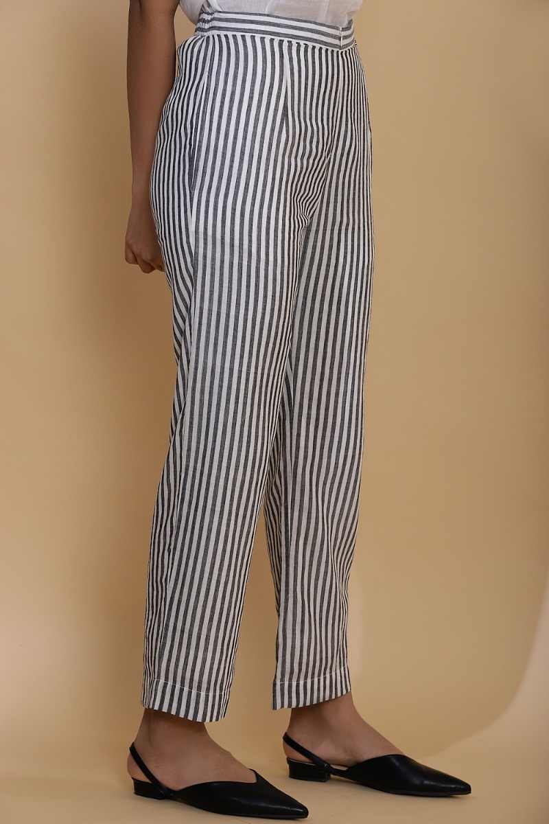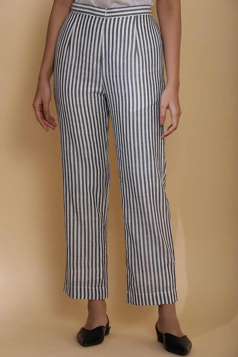 Handwoven Striped Cotton Straight Pants