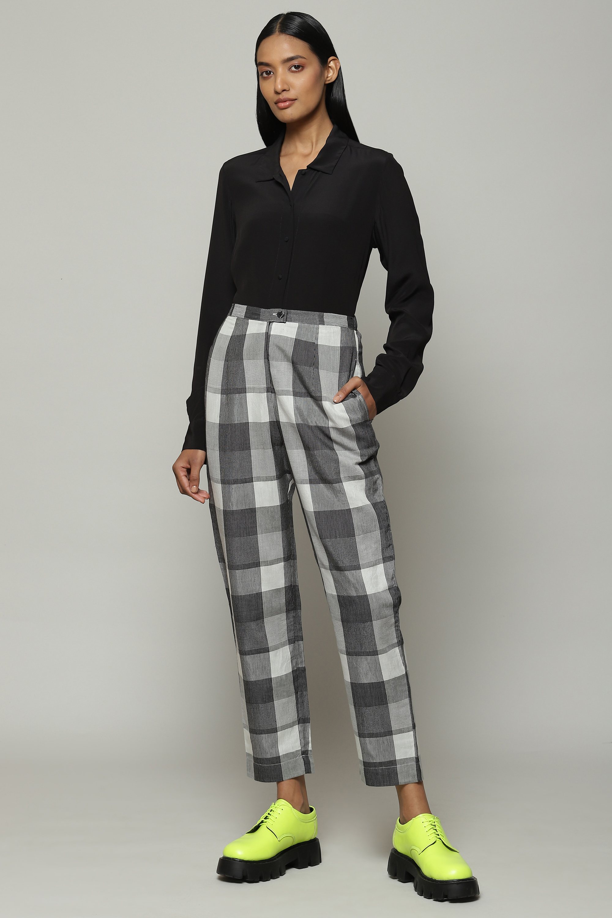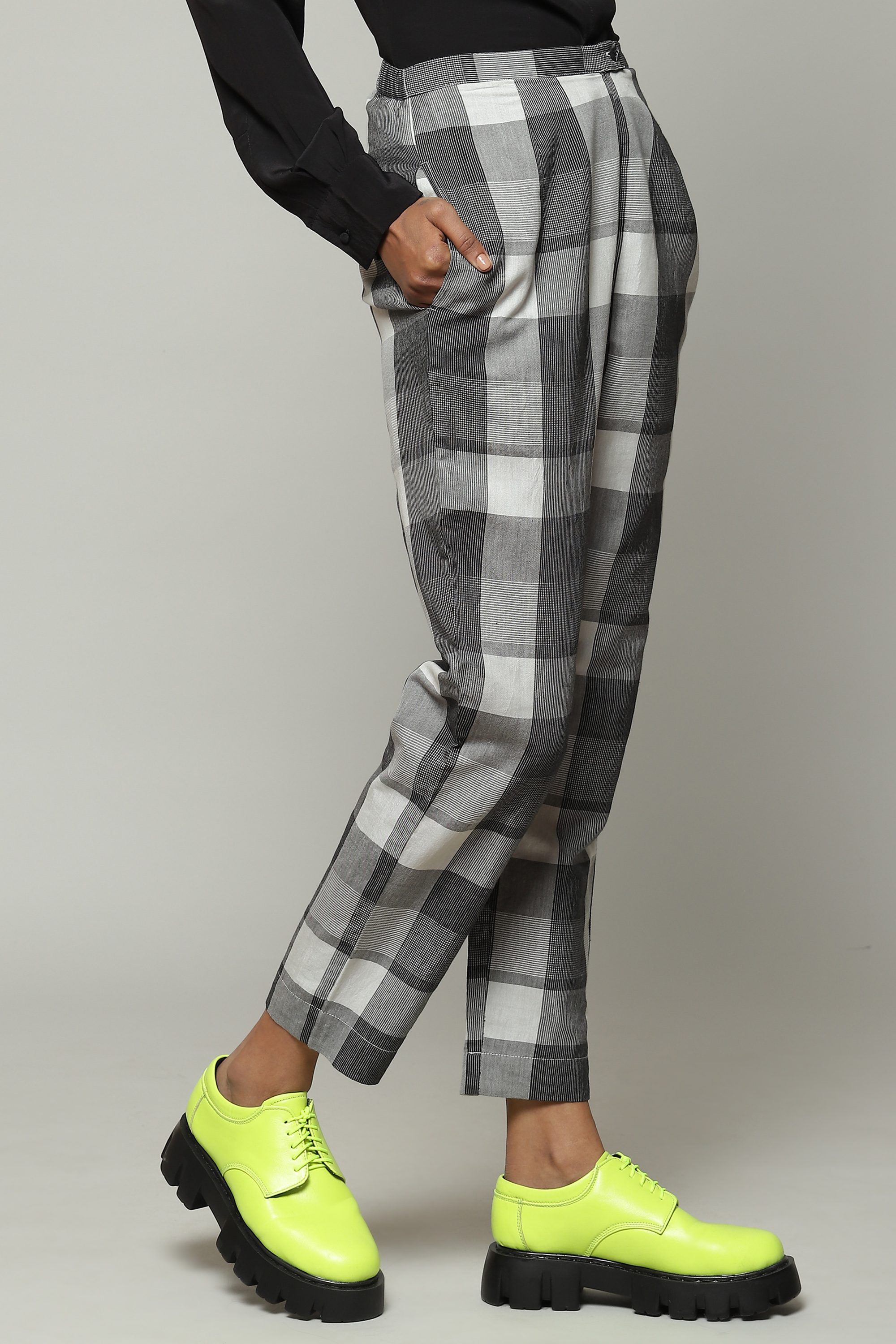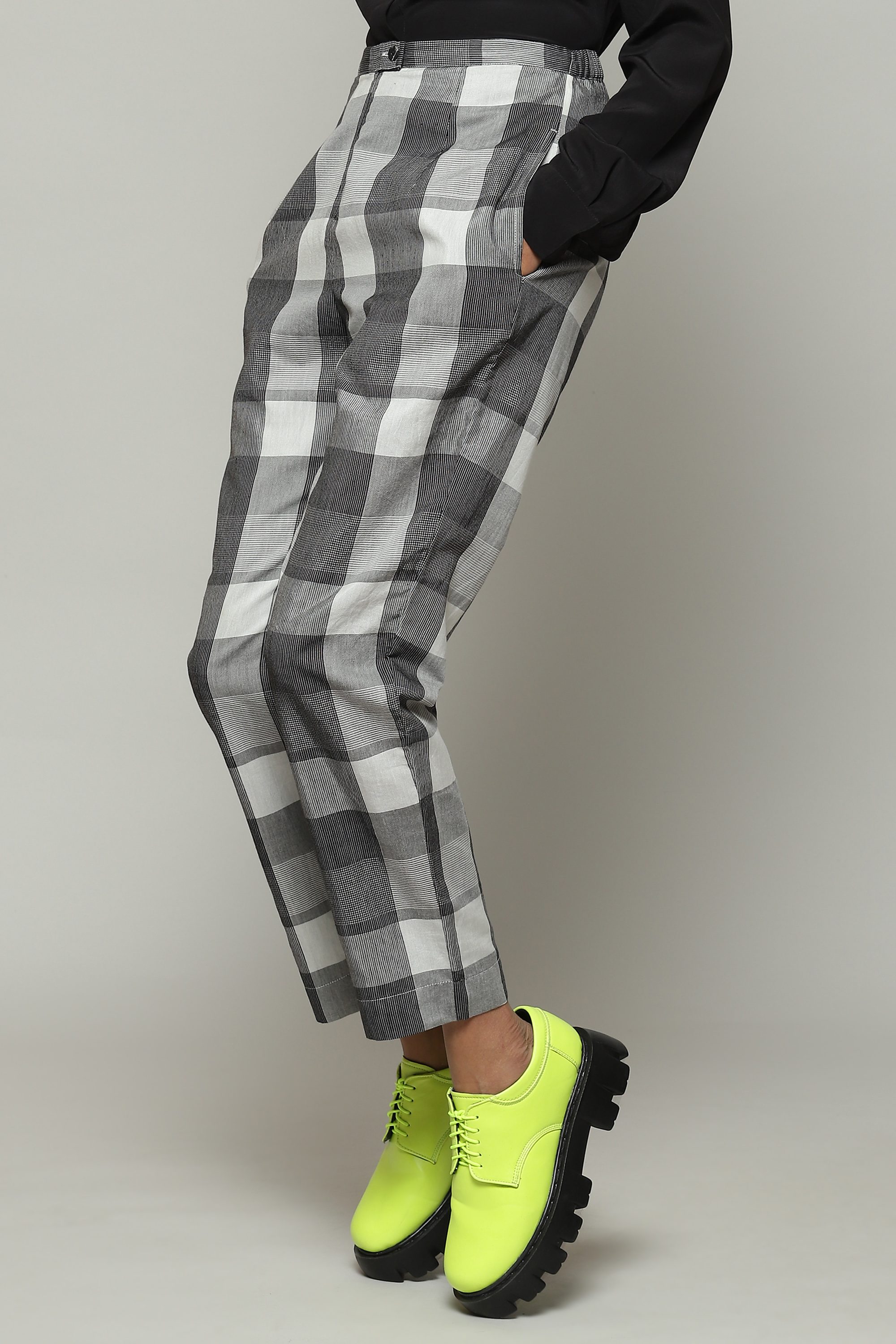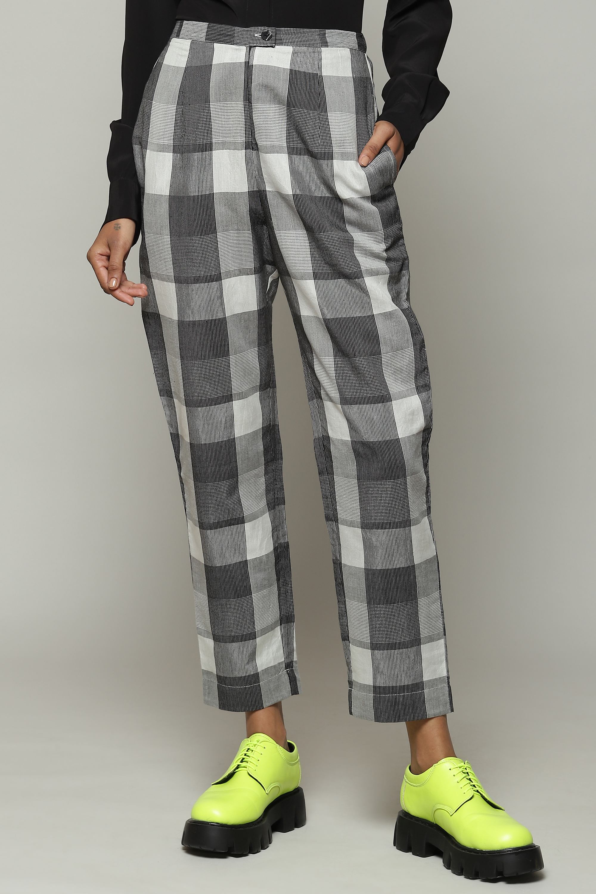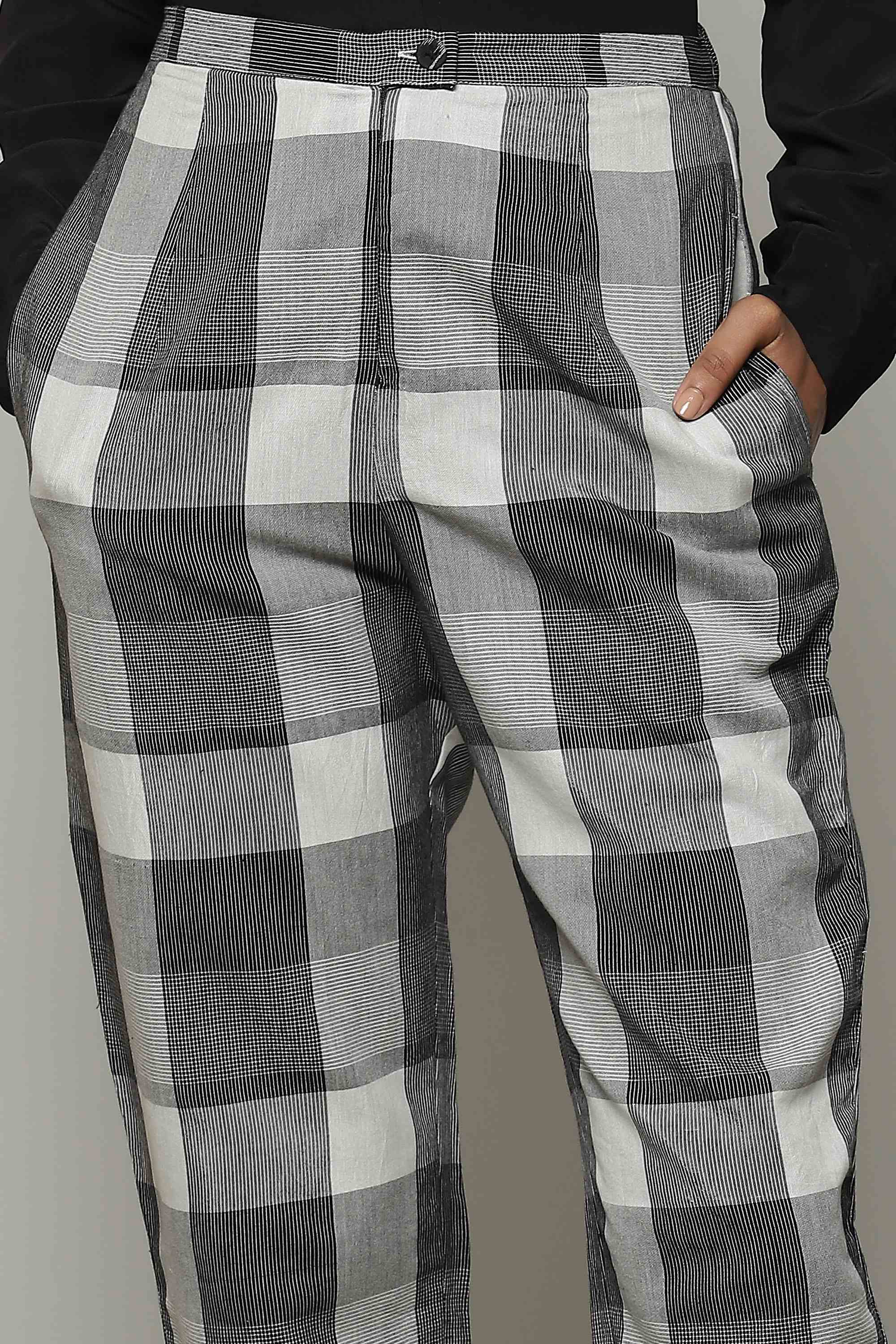 Handwoven Tencel X Cotton Pant Black-Ivory