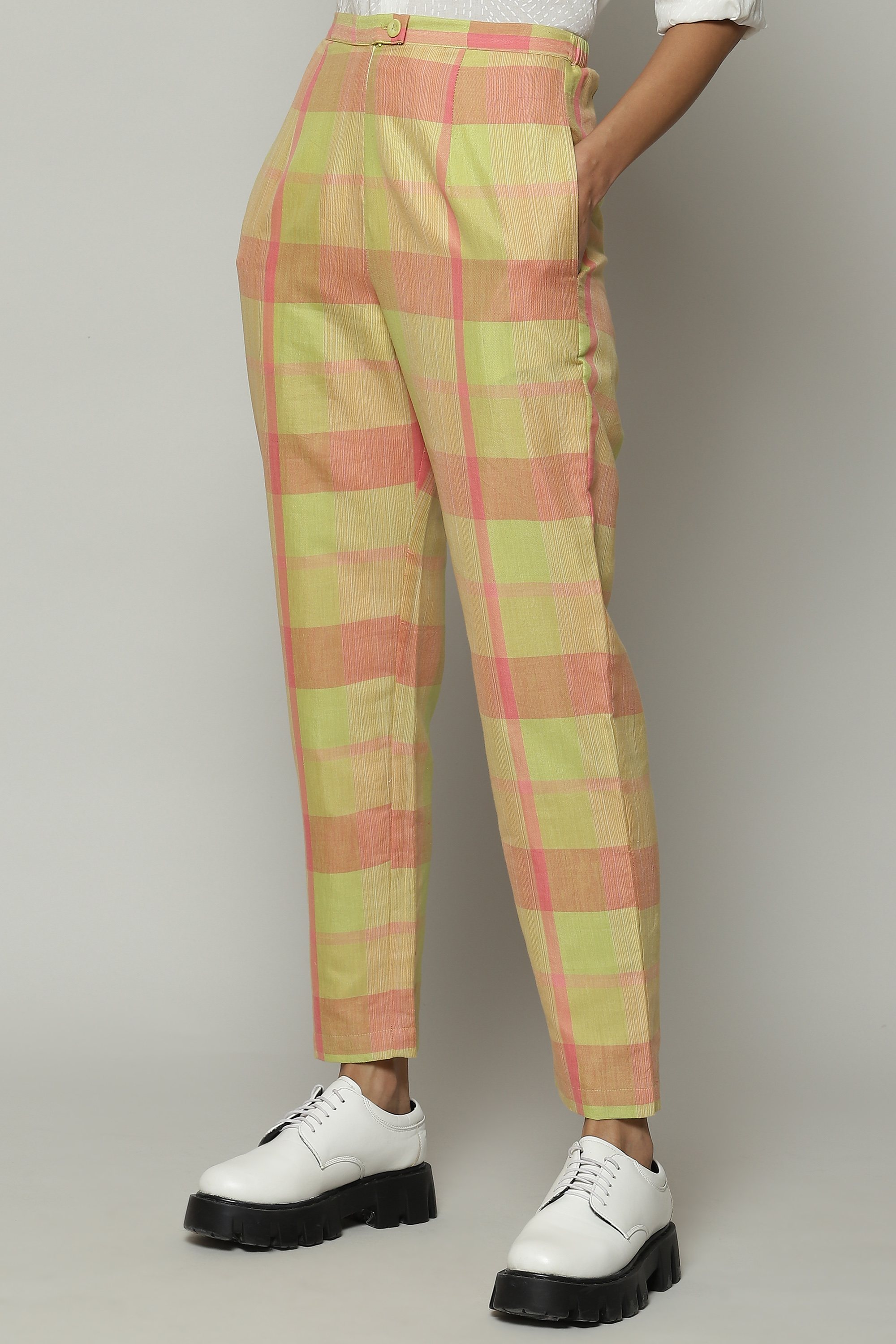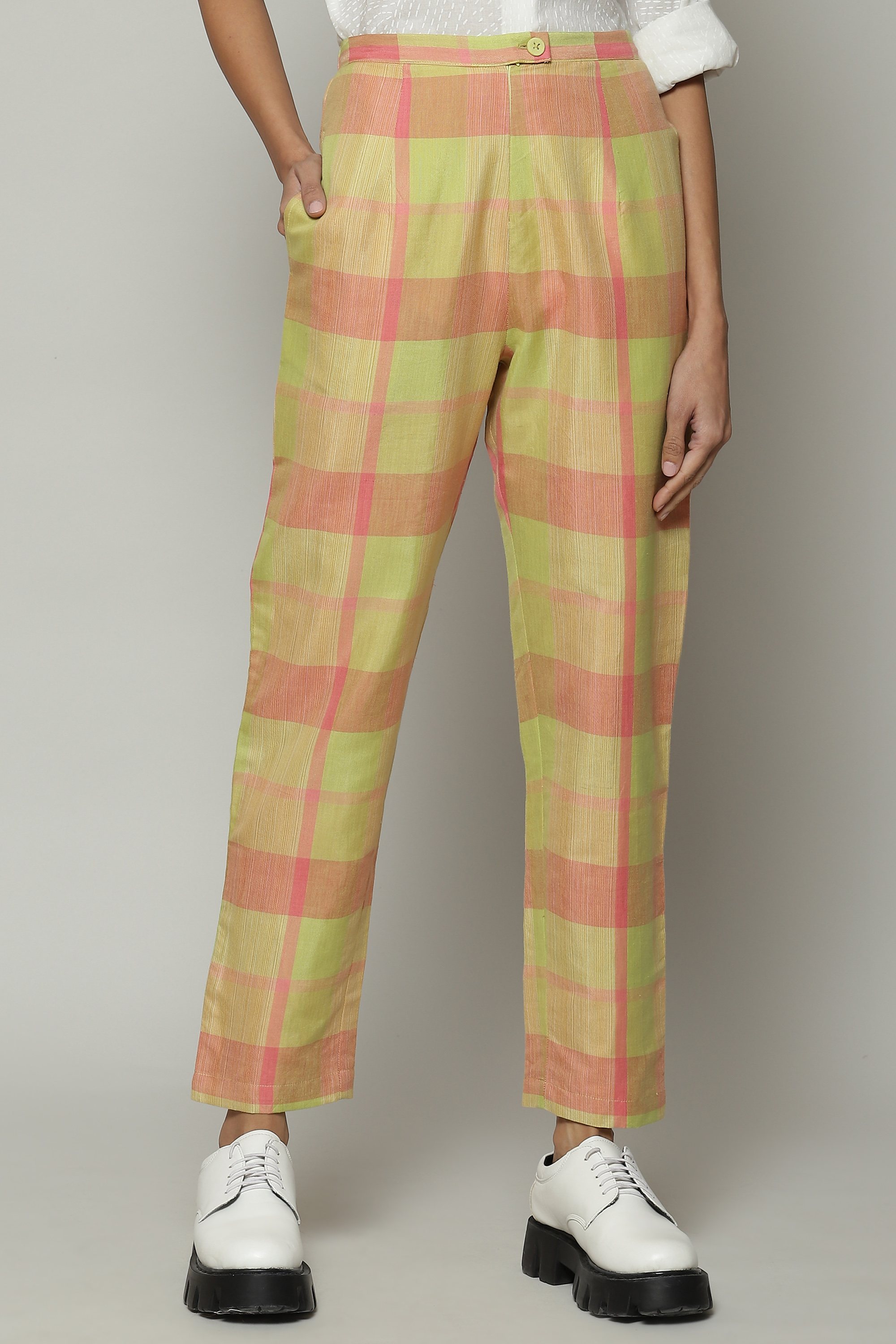 A pair of multi-colored trousers in a blend of cotton and Tencel. Sustainably crafted and produced, this fabric keeps you comfortable through the day. Happiest with its co-ord top, these pants add a splash of color to any ensemble.
