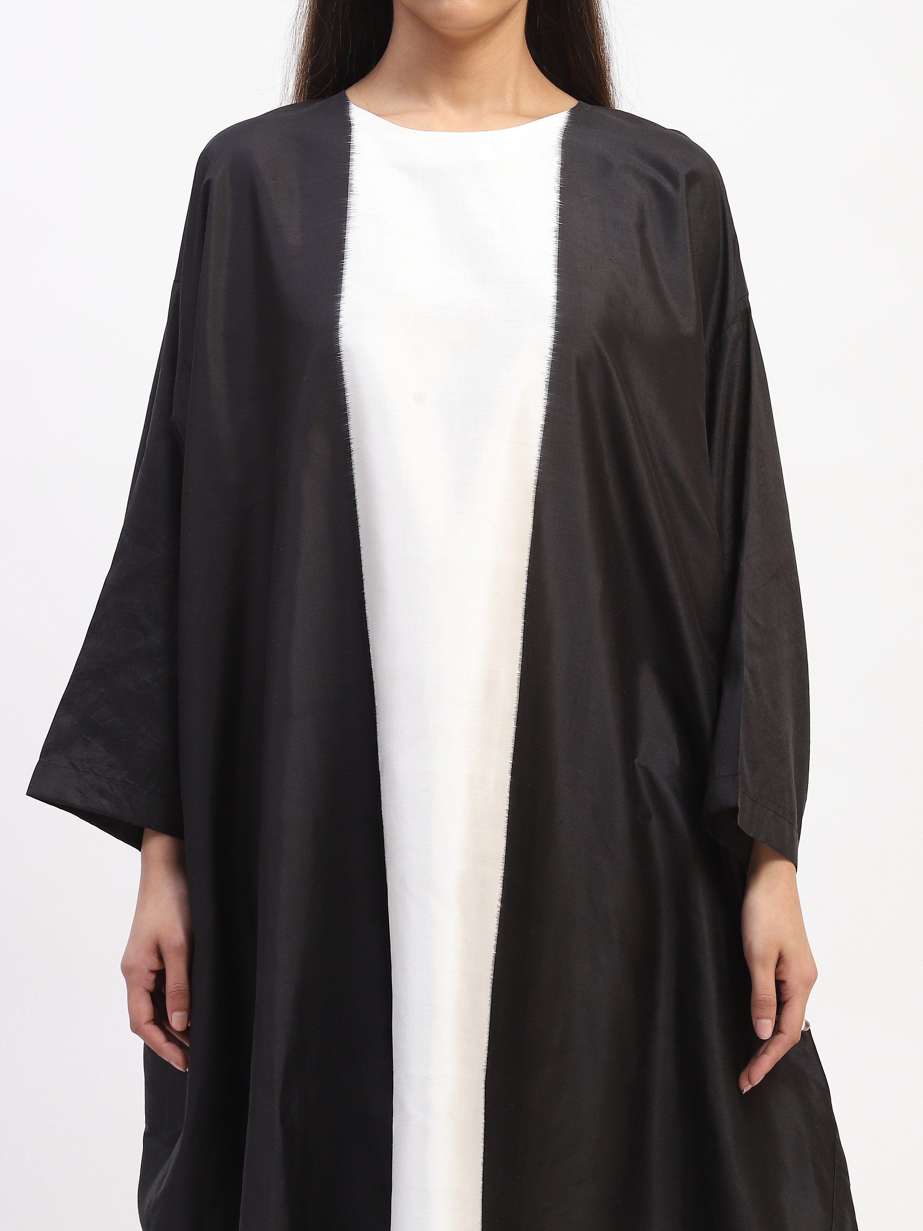 This limited edition piece has been made using a specially designed handwoven double ikat fabric in pure silk. A graphic white stripe makes for a simple yet strong statement.