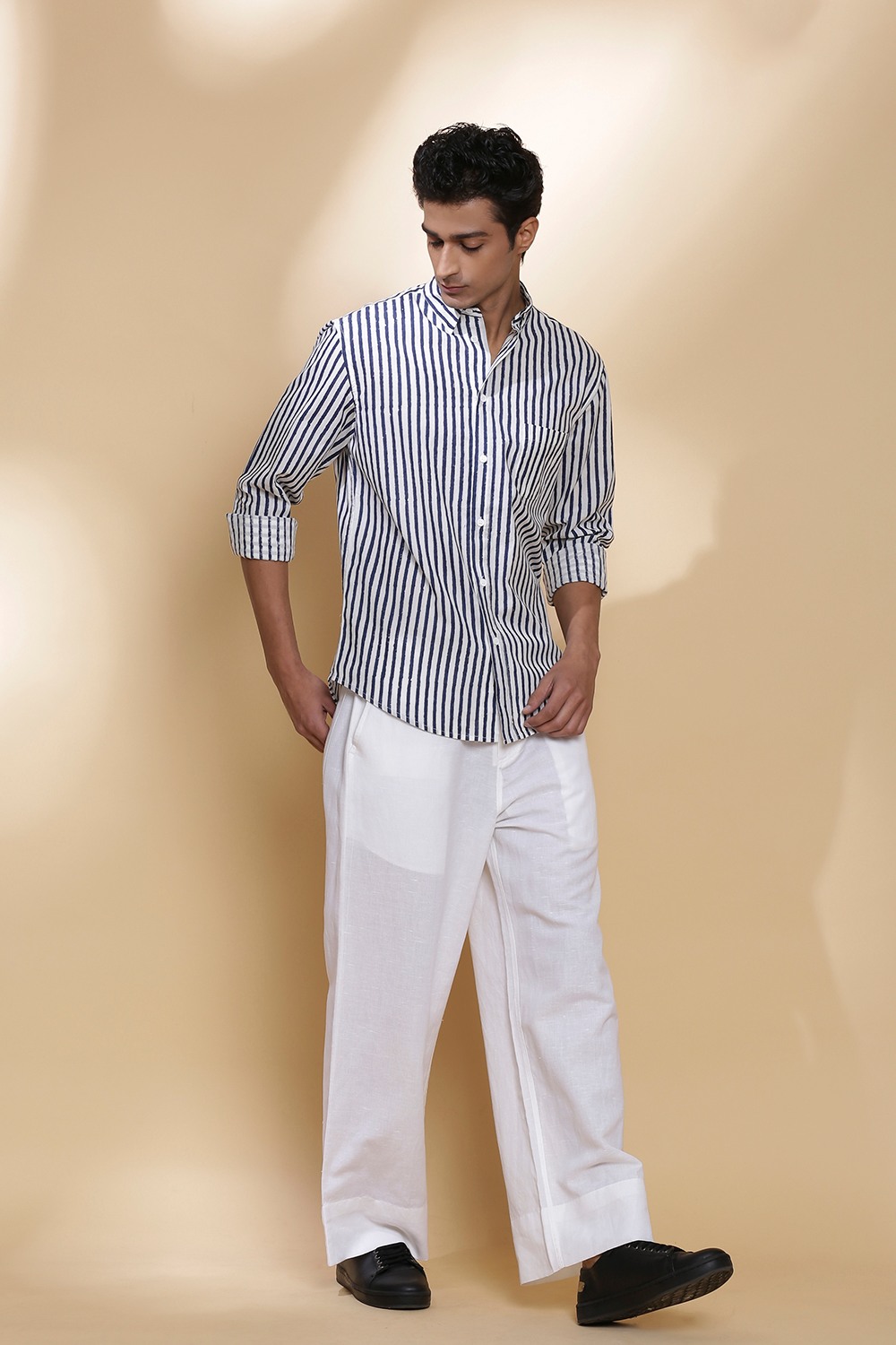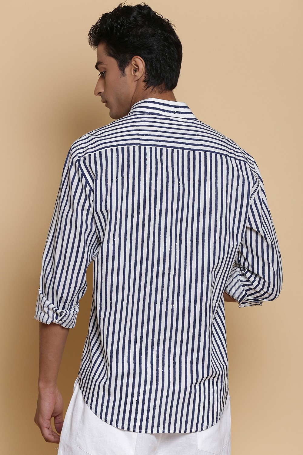 Regular-Fit Stripe Block Print Cotton Shirt Crafted In Lightweight 100% Cotton Abraham & Thakore Shirts For Men Have Been Crafted In Lightweight Natural Textiles In Regular And Slim Fits, Employing Various Traditional Textiles Techniques Model Is Wearing A Size M (Height 6ft) Abraham & Thakore Menswear Follows Sizes S, M, L, And XL. To Find Your Size For The Most Comfortable Fit, Refer To The Size Chart. Garments Are Made From Fabric That Is Washed And Pre-Shrunk To Give A Superior Hand. The Colors Seen In The Image May Vary From The Actual Product Due To Different Computer Screen Resolutions And Displays.