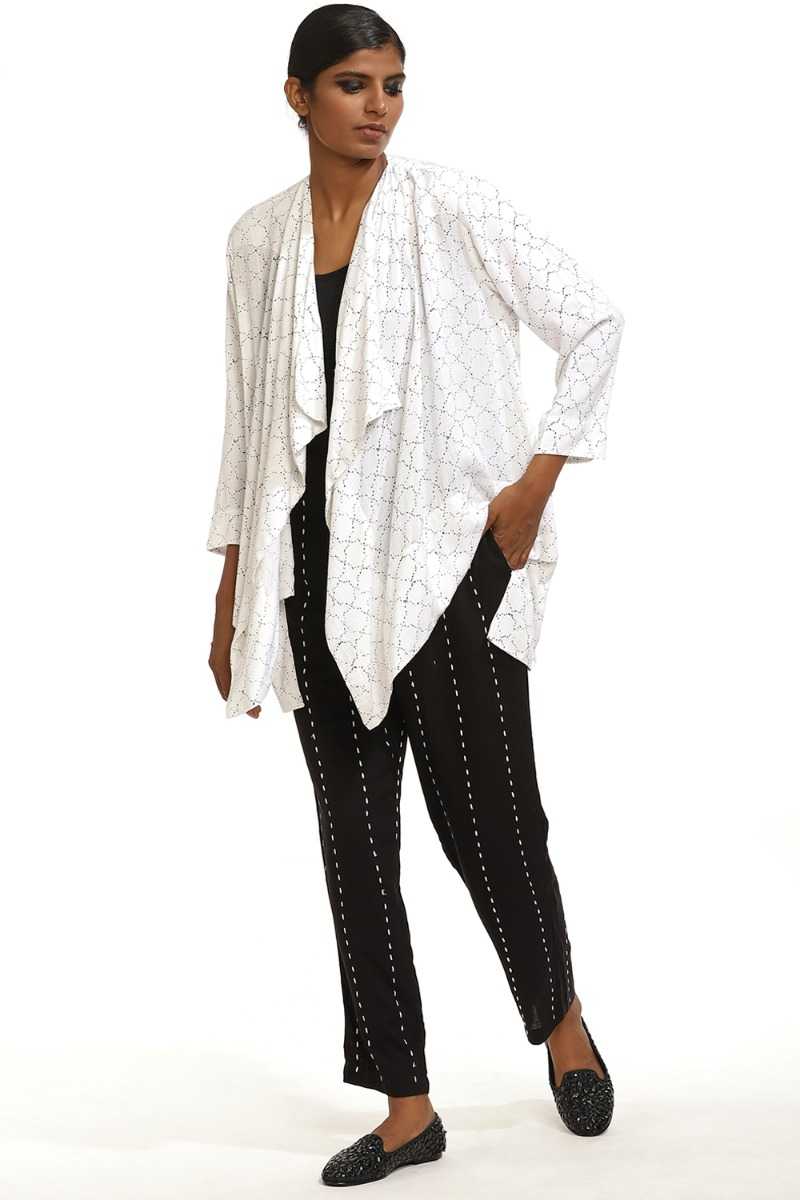 Ivory Viscose With Black Hand Stitch Jali Print.
