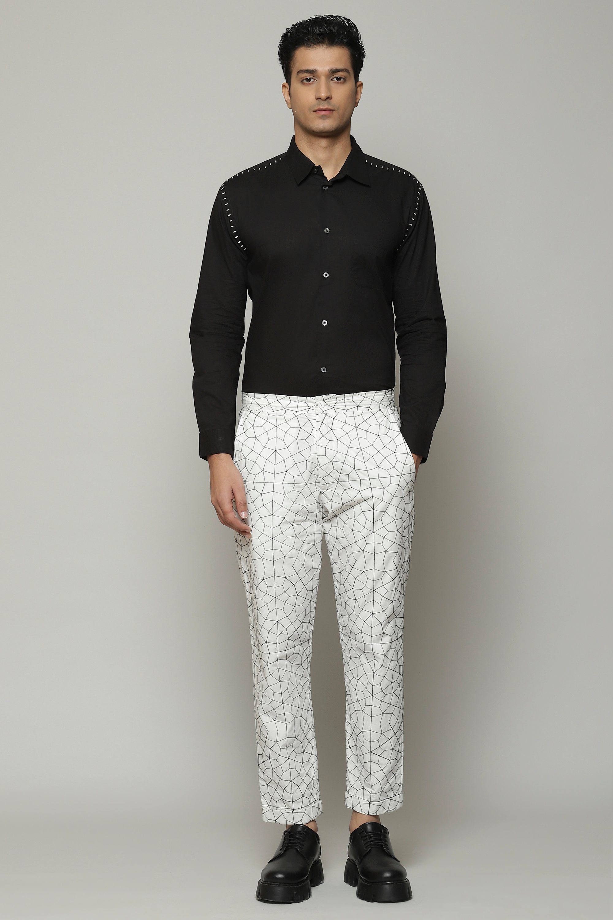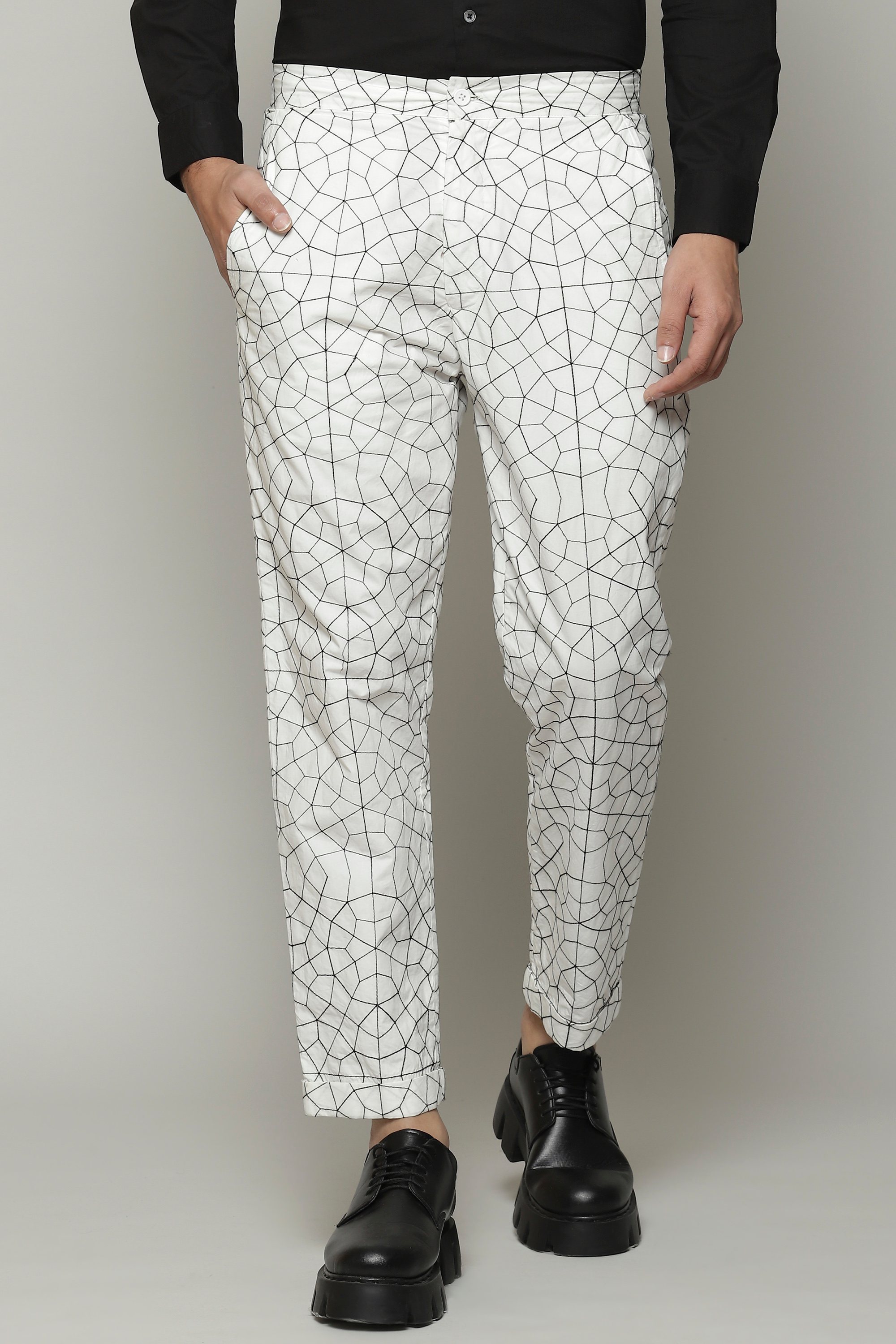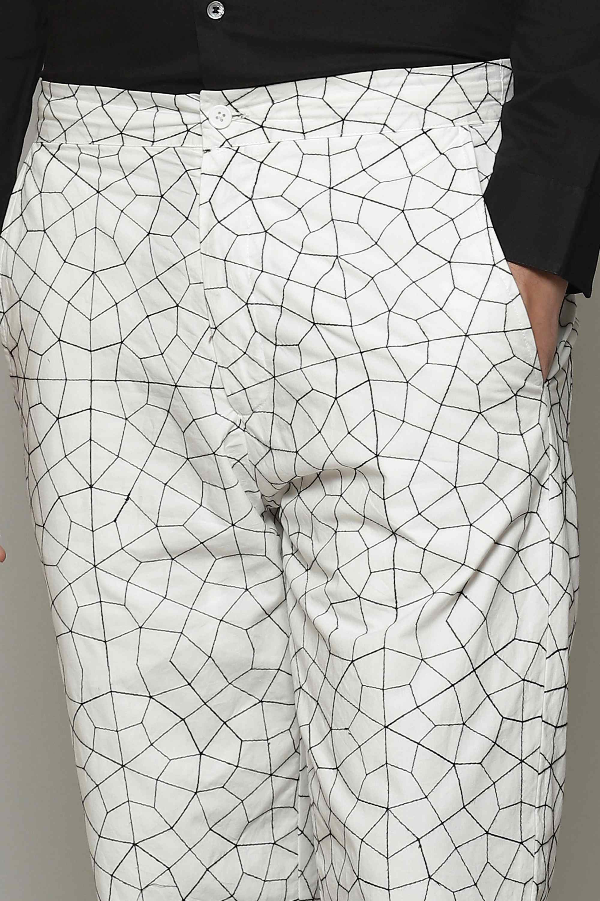 Easy going pants for any day of the week. Crafted in a breathable poplin. The embroidery patten uses fine, silken yarns. Ideal with the matching, co-ord shirt.