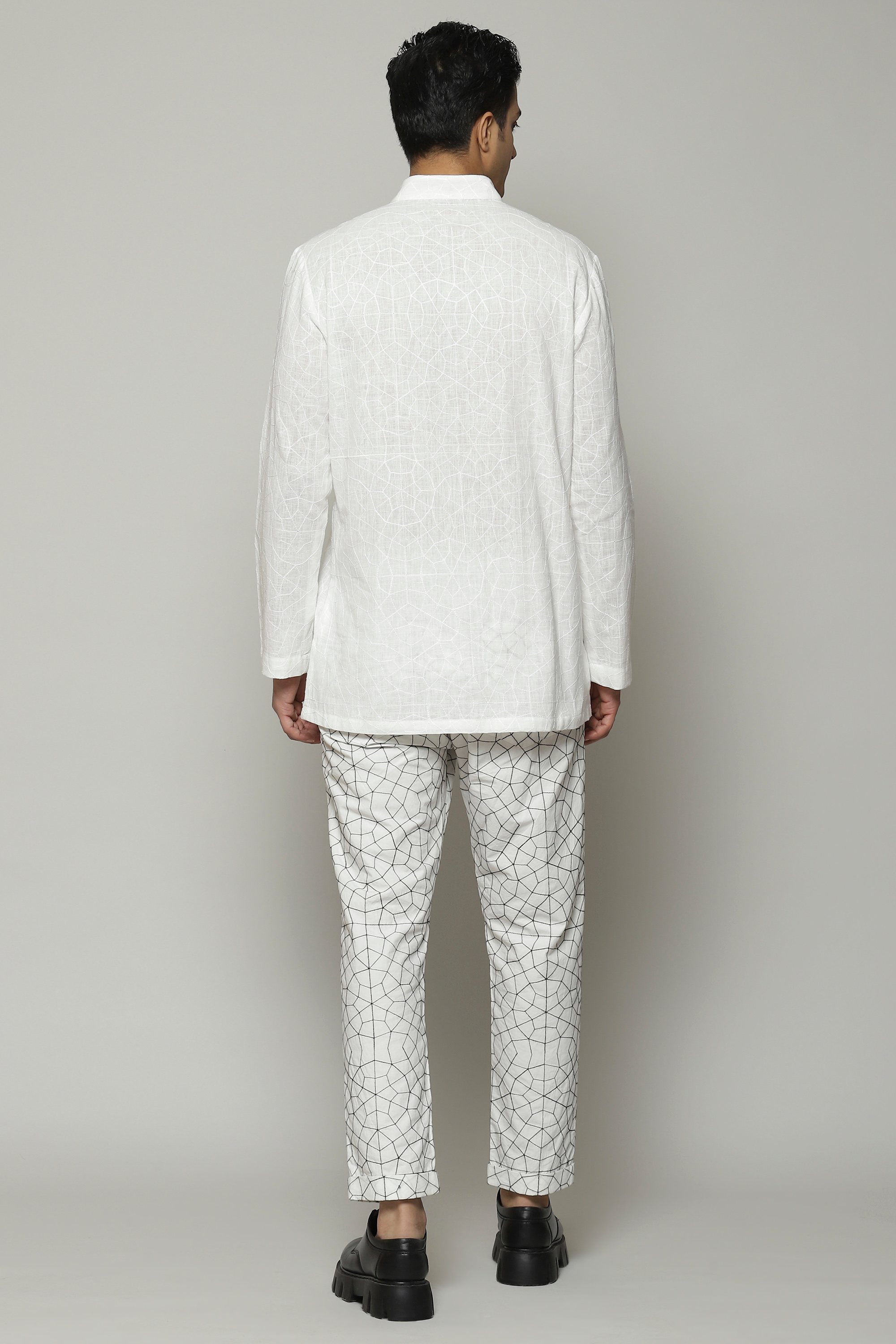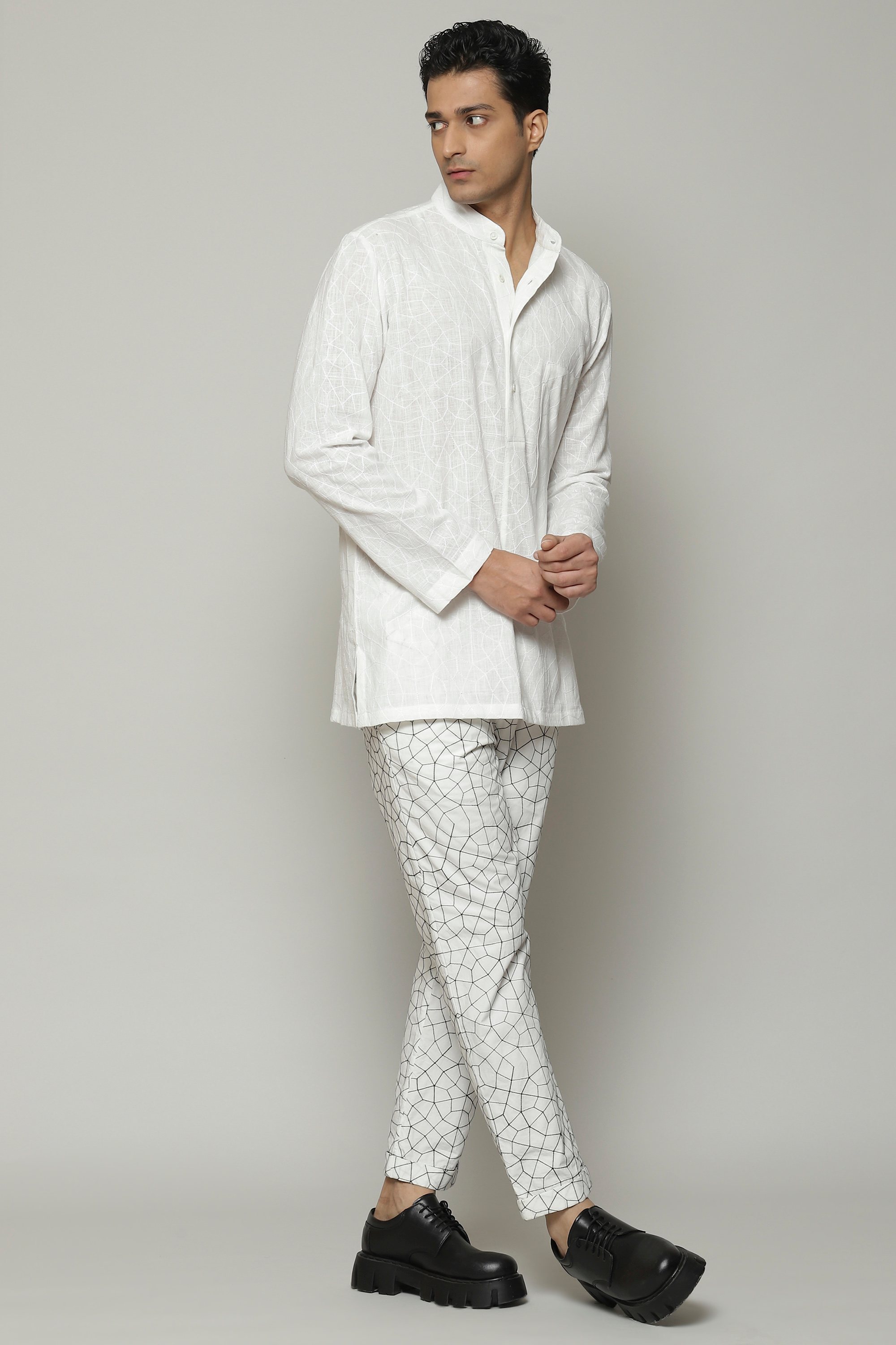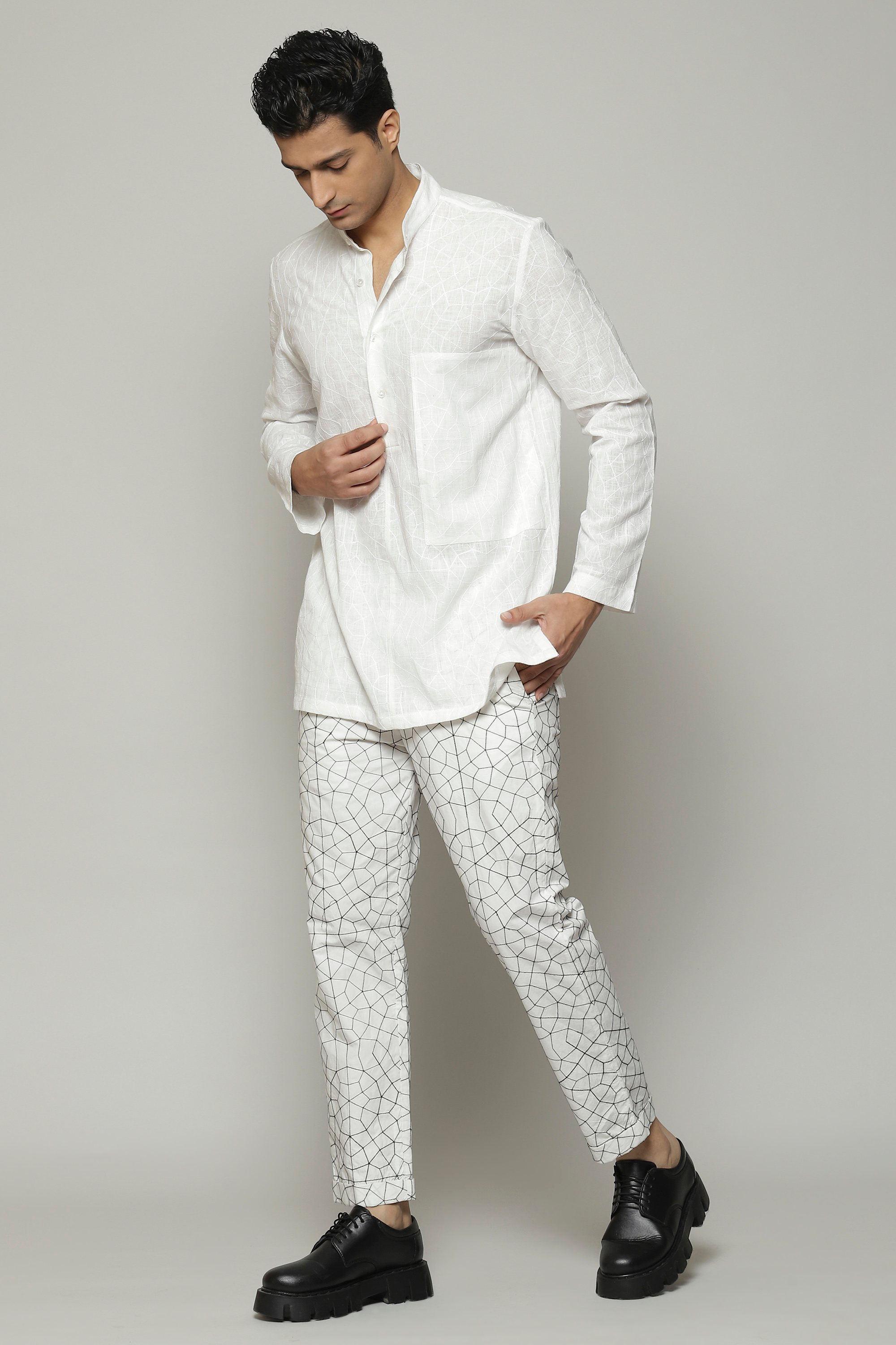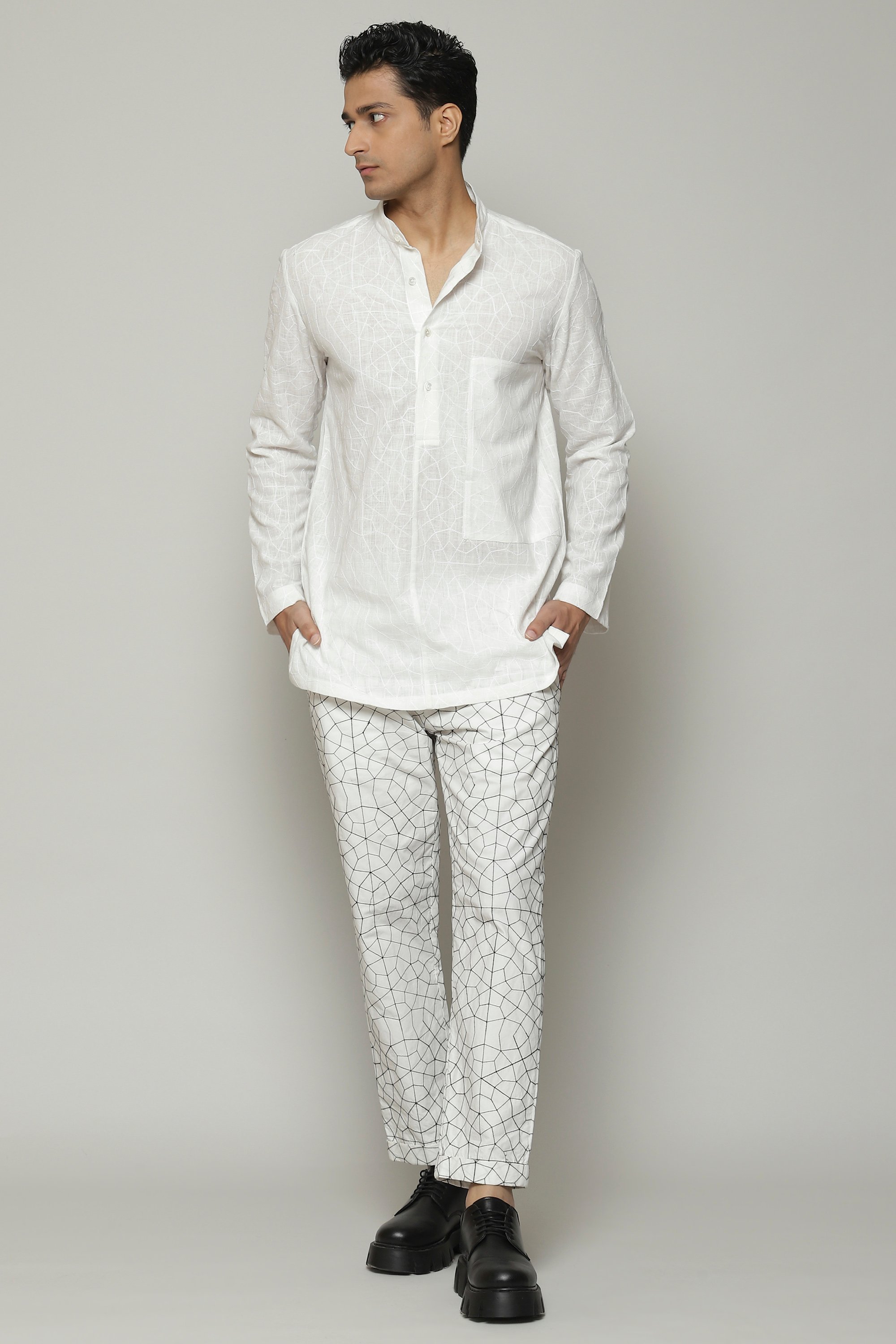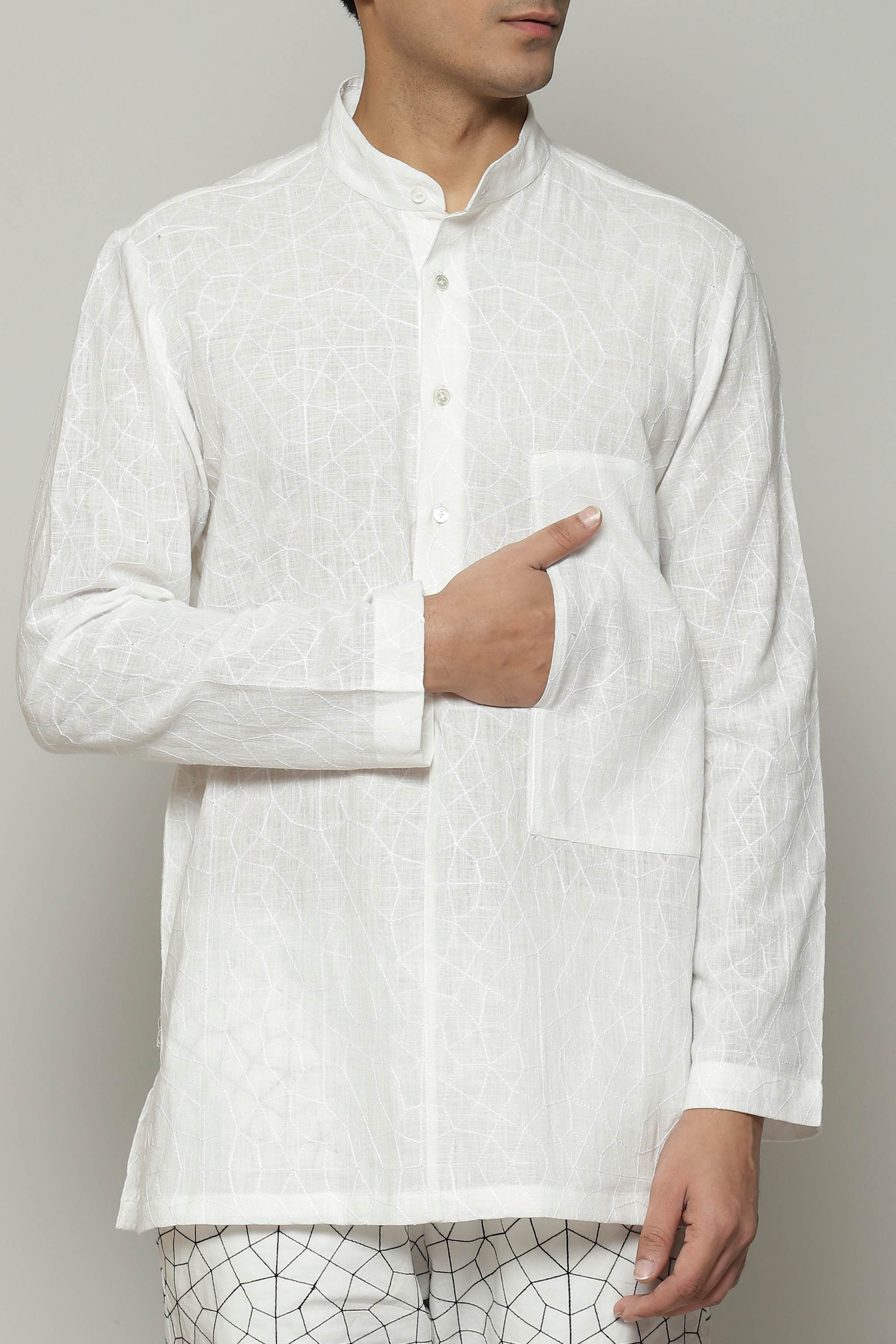 The white kurta of our dreams. Woven out of soft cotton, and embroidered with silken yarn. The result is a classic that is built to last. An easy silhouette allows it to be dressed up or down, depending on your mood.