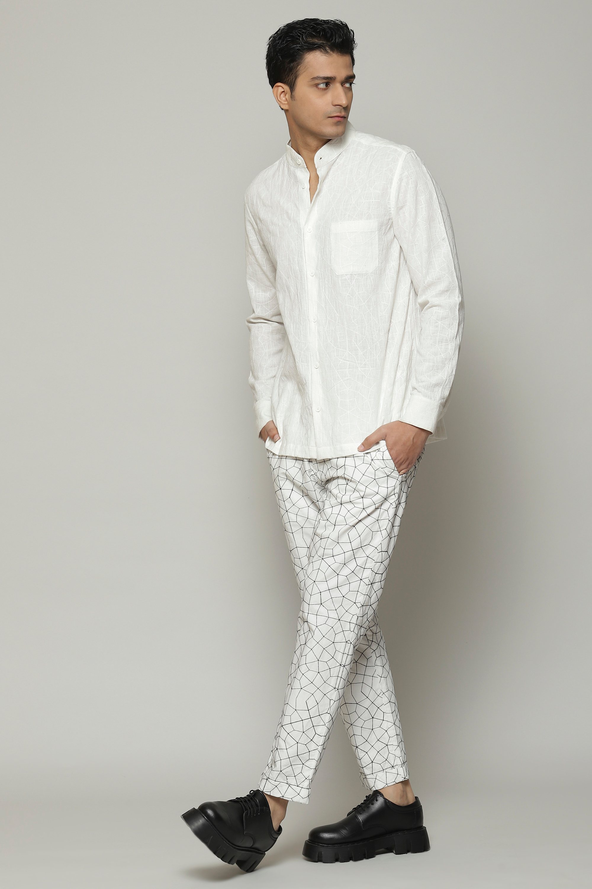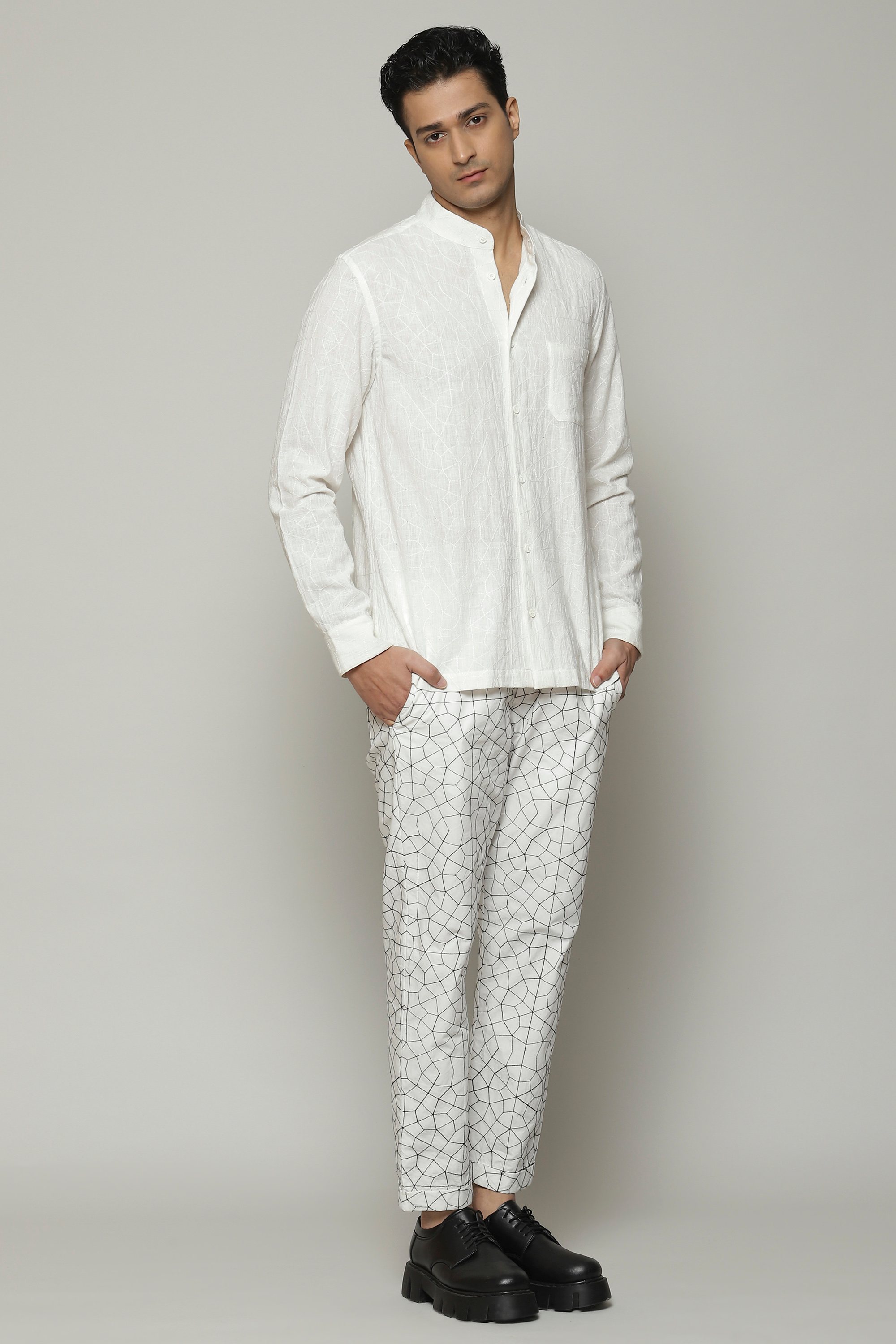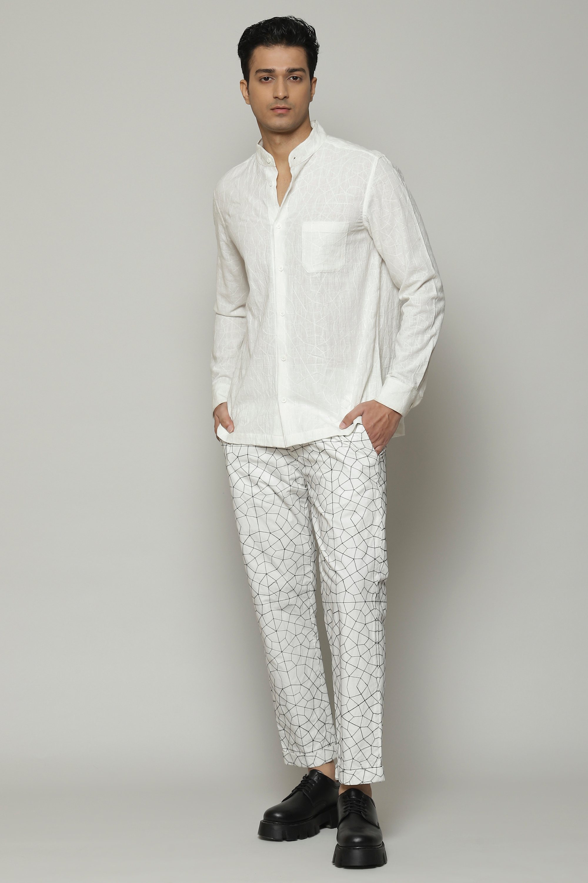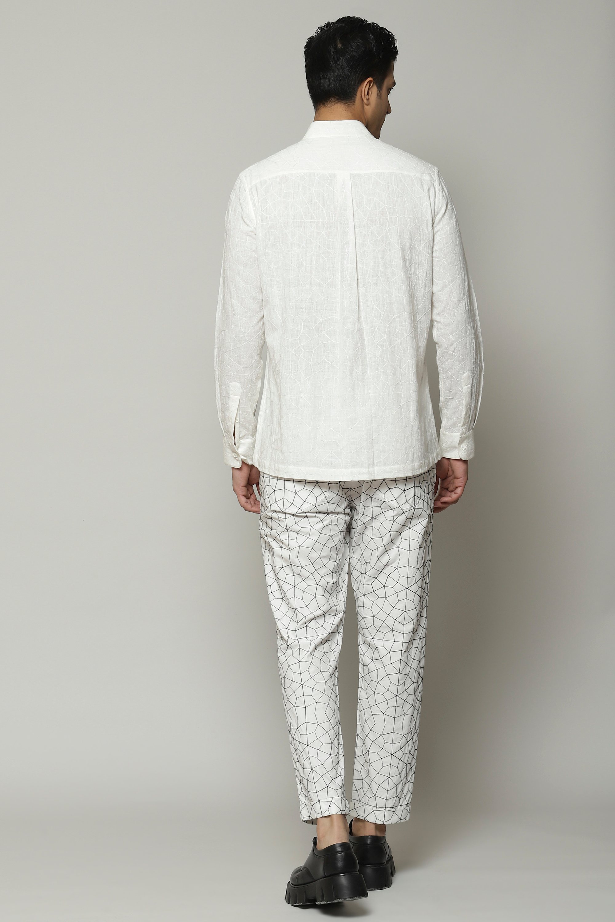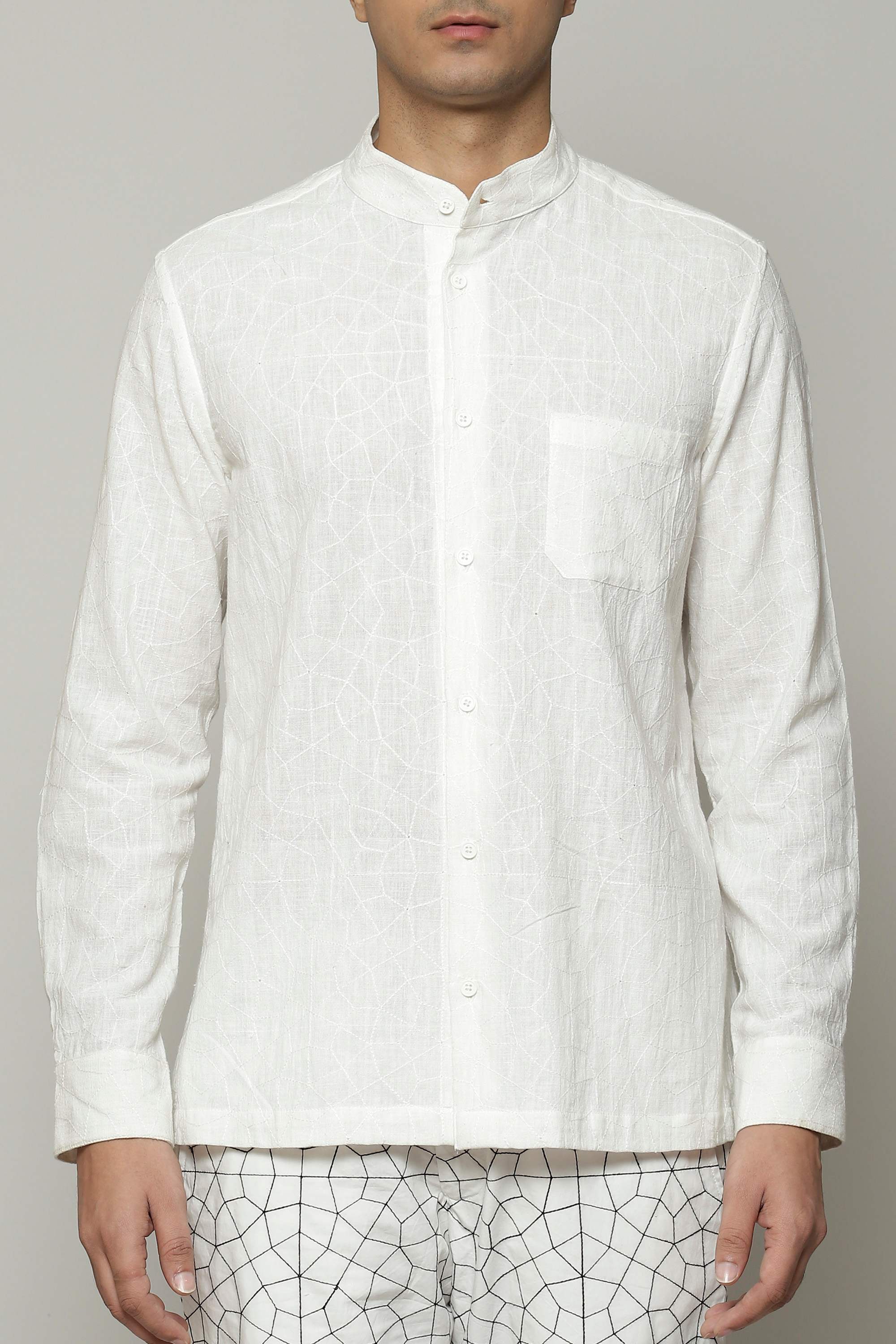 The white shirt of our dreams. Woven out of soft cotton, and embroidered with silken yarn. The result is a classic that is built to last. An easy silhouette allows it to be dressed up or down, depending on your mood.