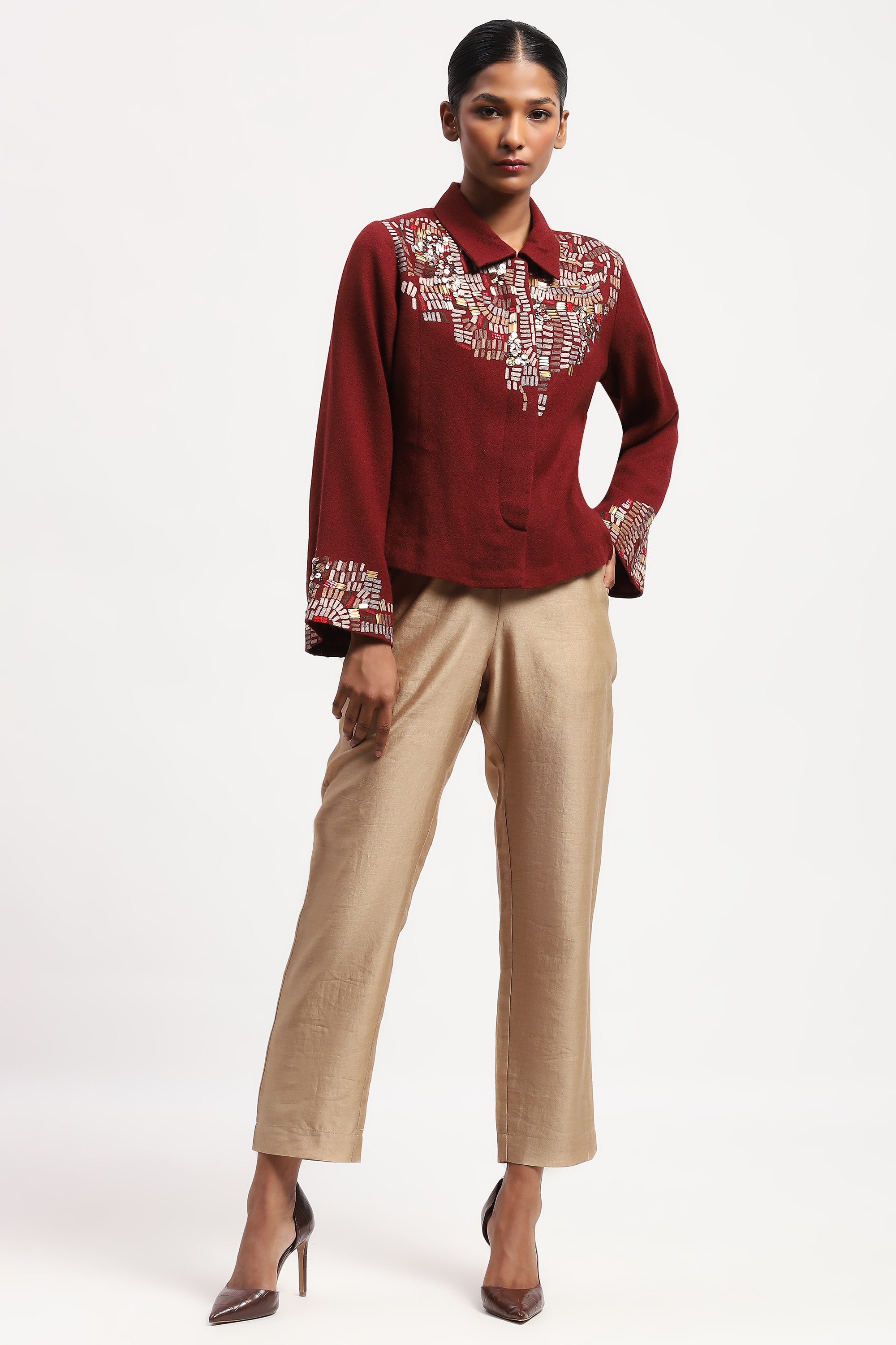 Care : Shell- 100% Silk, Lining- 100% Viscose (Dry Clean Only, Iron Low, Do Not Iron On Emblishment) Made In India
