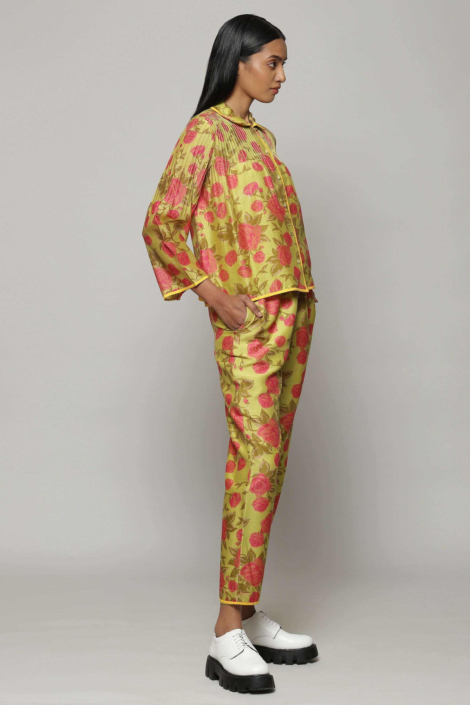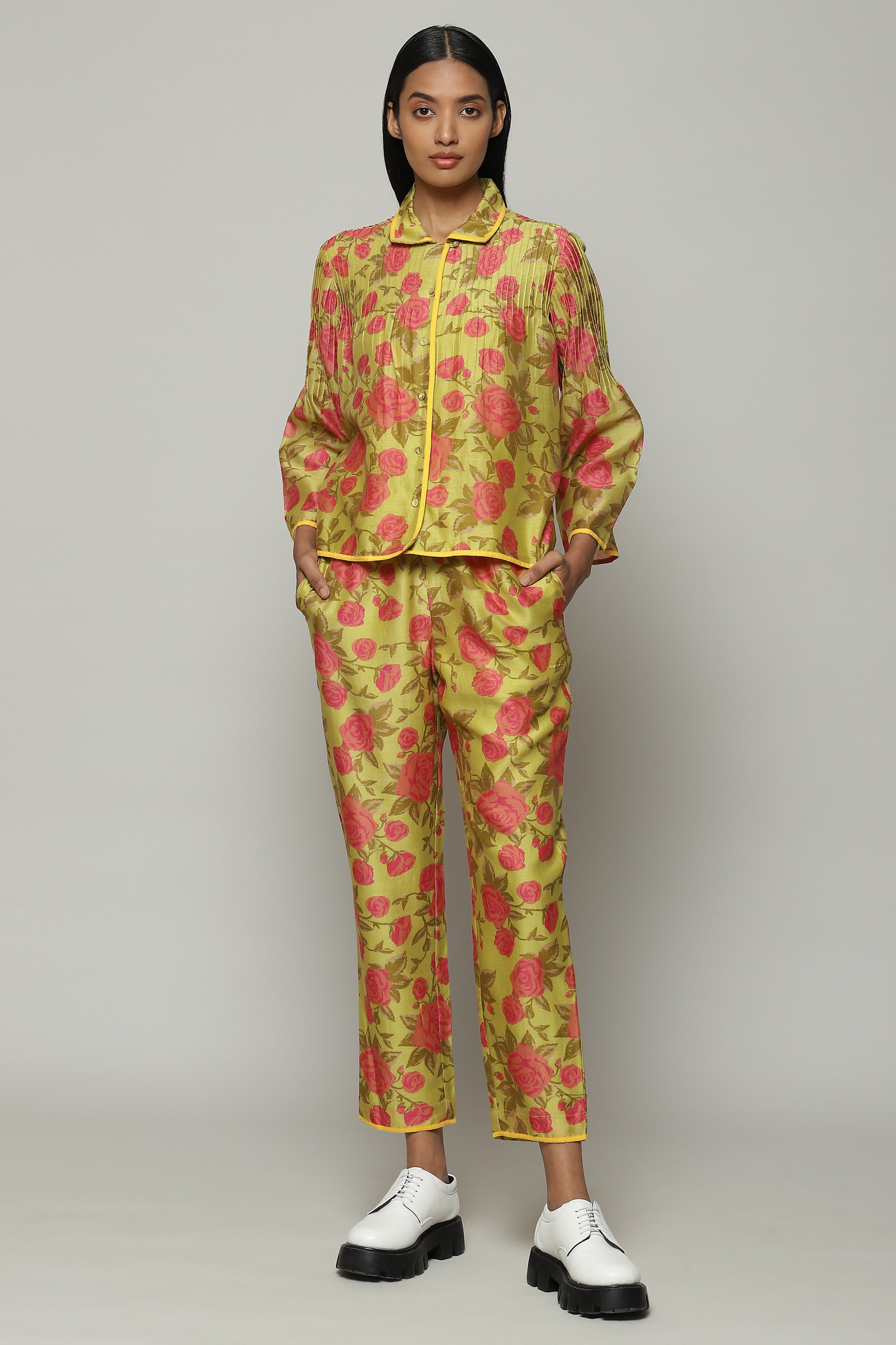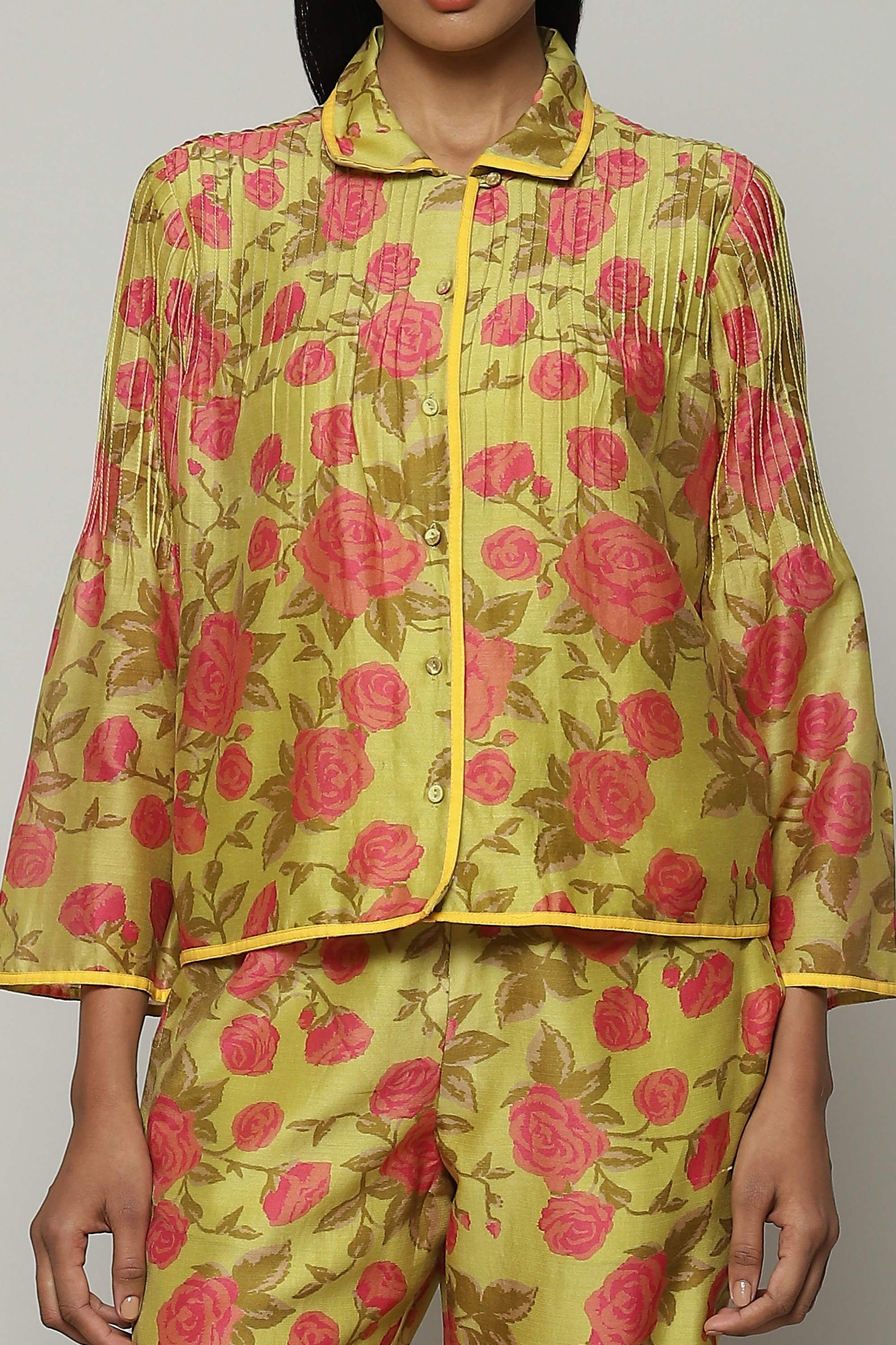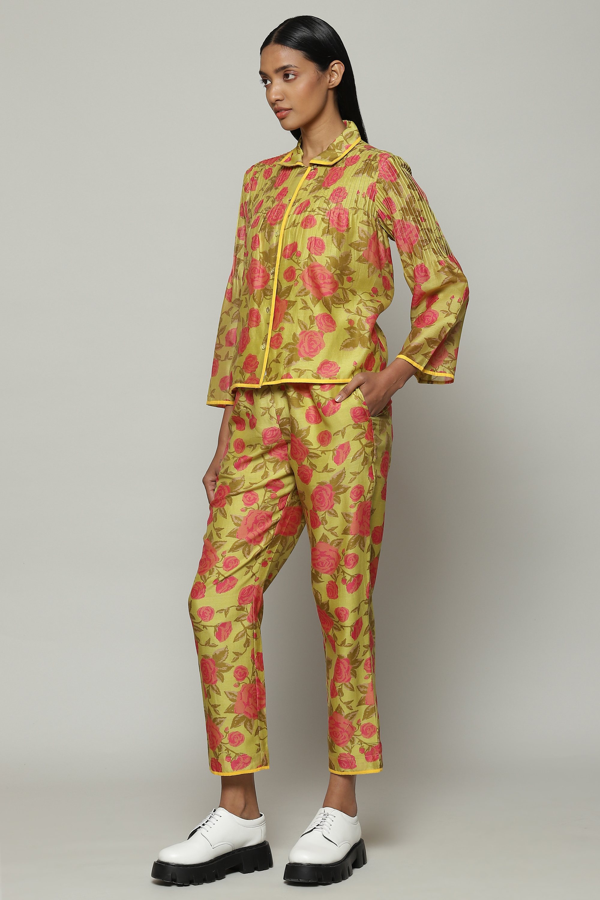 May a thousand flowers bloom. If this top could speak, these would probably be its favourite words. Crafted in a luxurious chanderi fabric, this is ideal for a festive summer brunch.