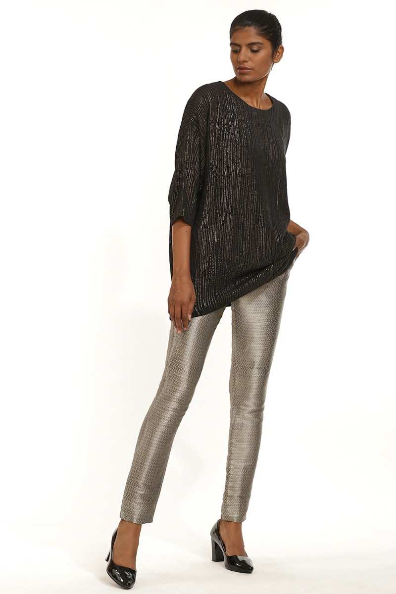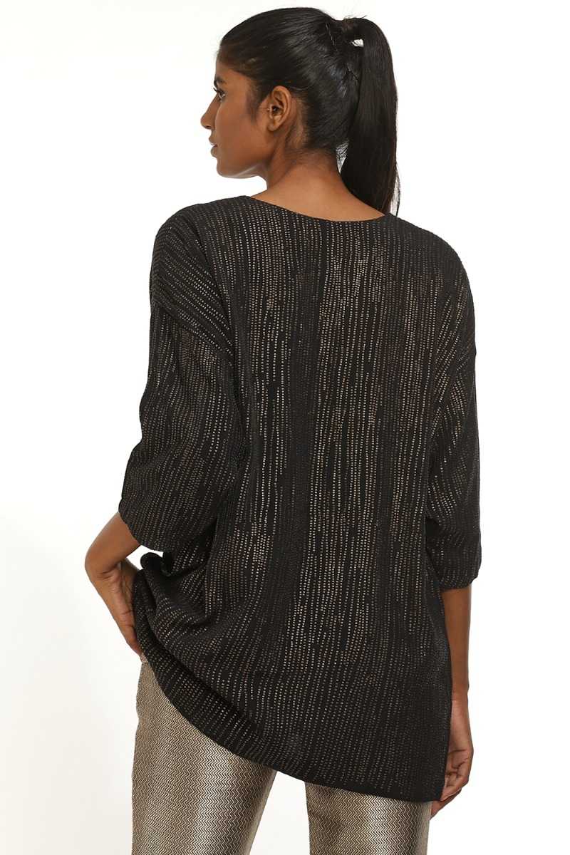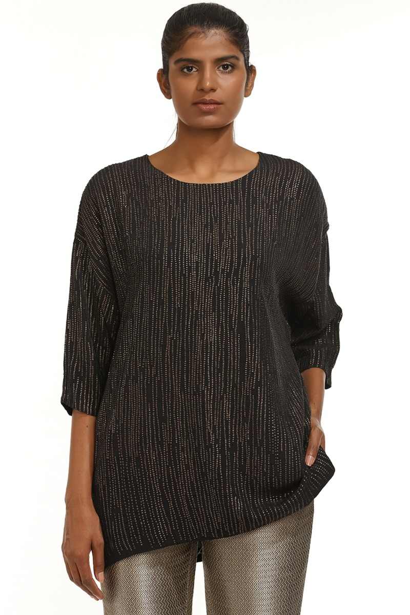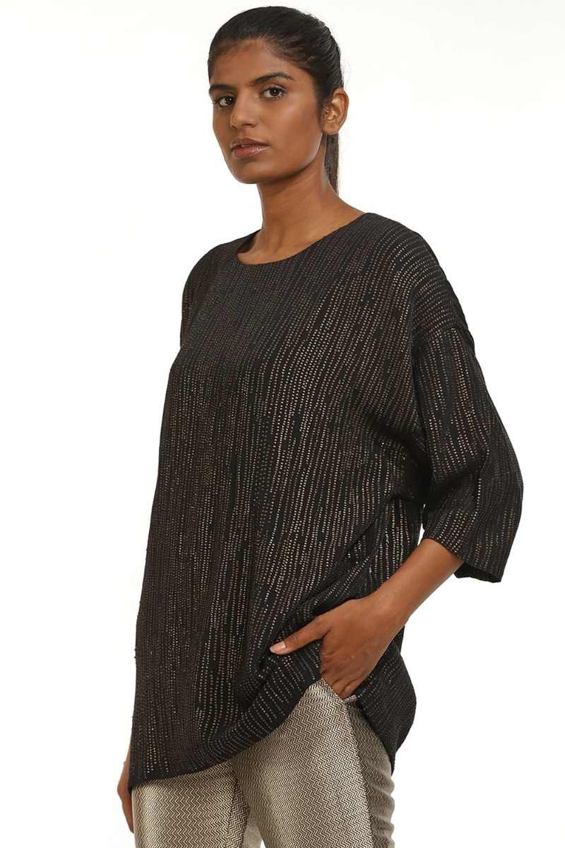 Easy-Kimono Tunic Sequin Lines. Black Crepe Allover Hand Embroidered Gold Sequin Lines. Garments Are Made From Fabric That Is Washed And Pre-Shrunk To Give A Superior Hand.