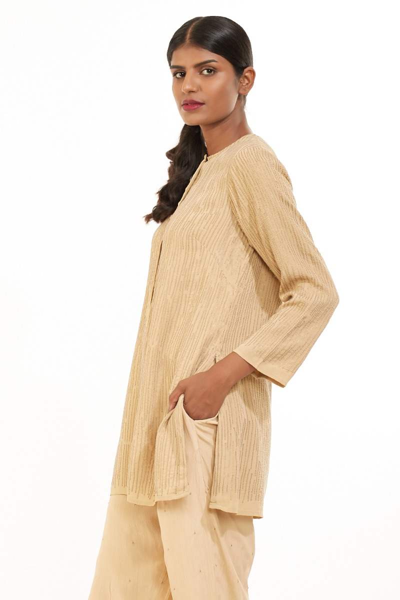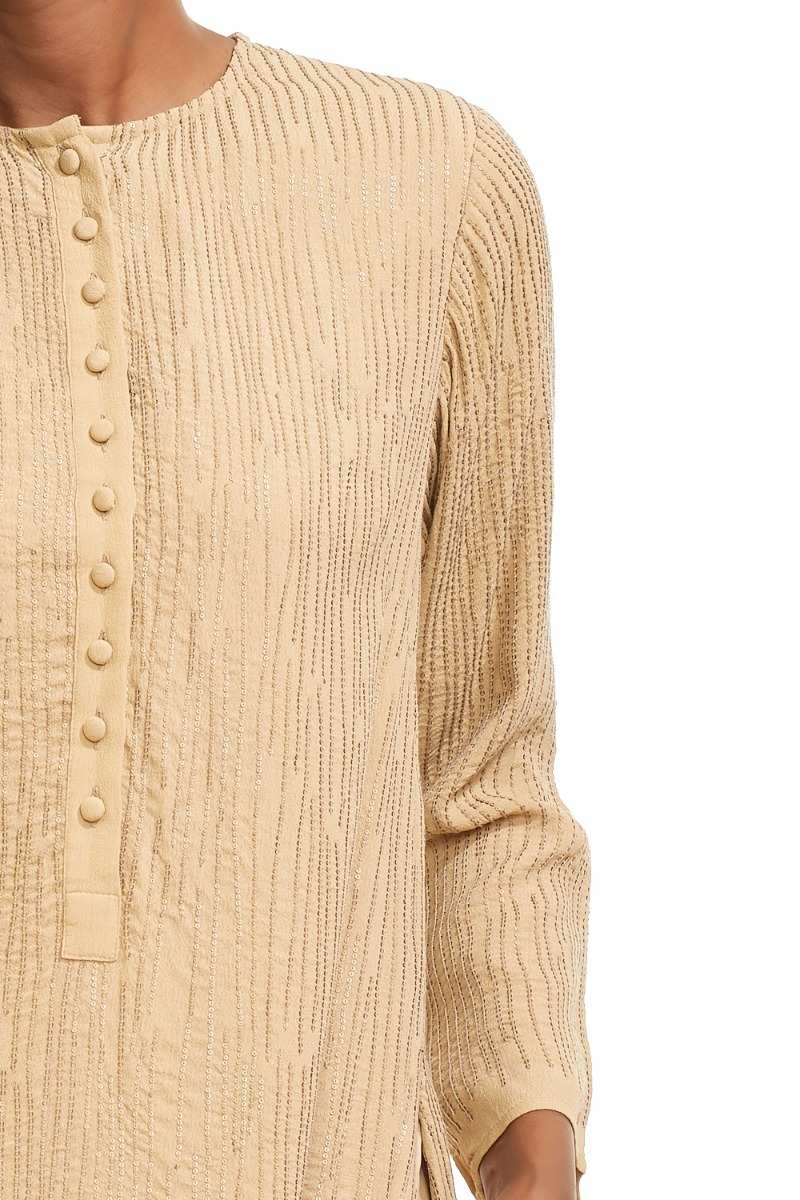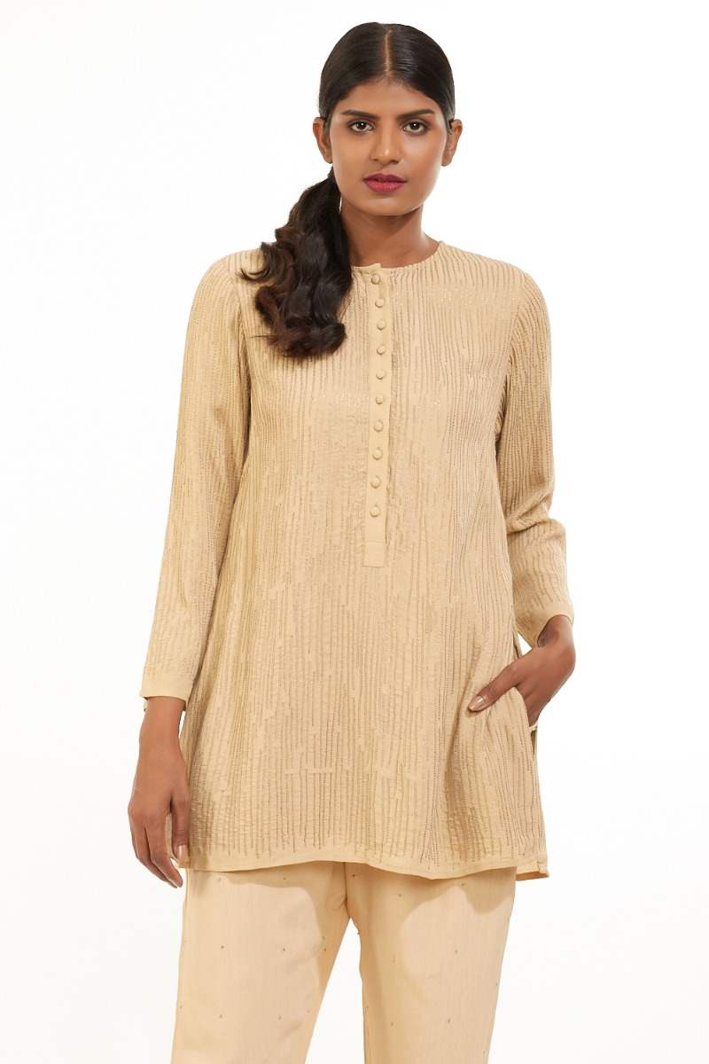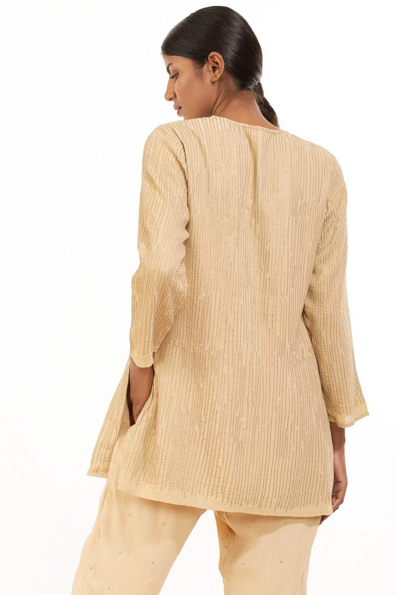 Easy Fit Short Kurta. Embellished With Hand Embroidered Irregular Sequin Lines. Garments Are Made From Fabric That Is Washed And Pre-Shrunk To Give A Superior Hand.