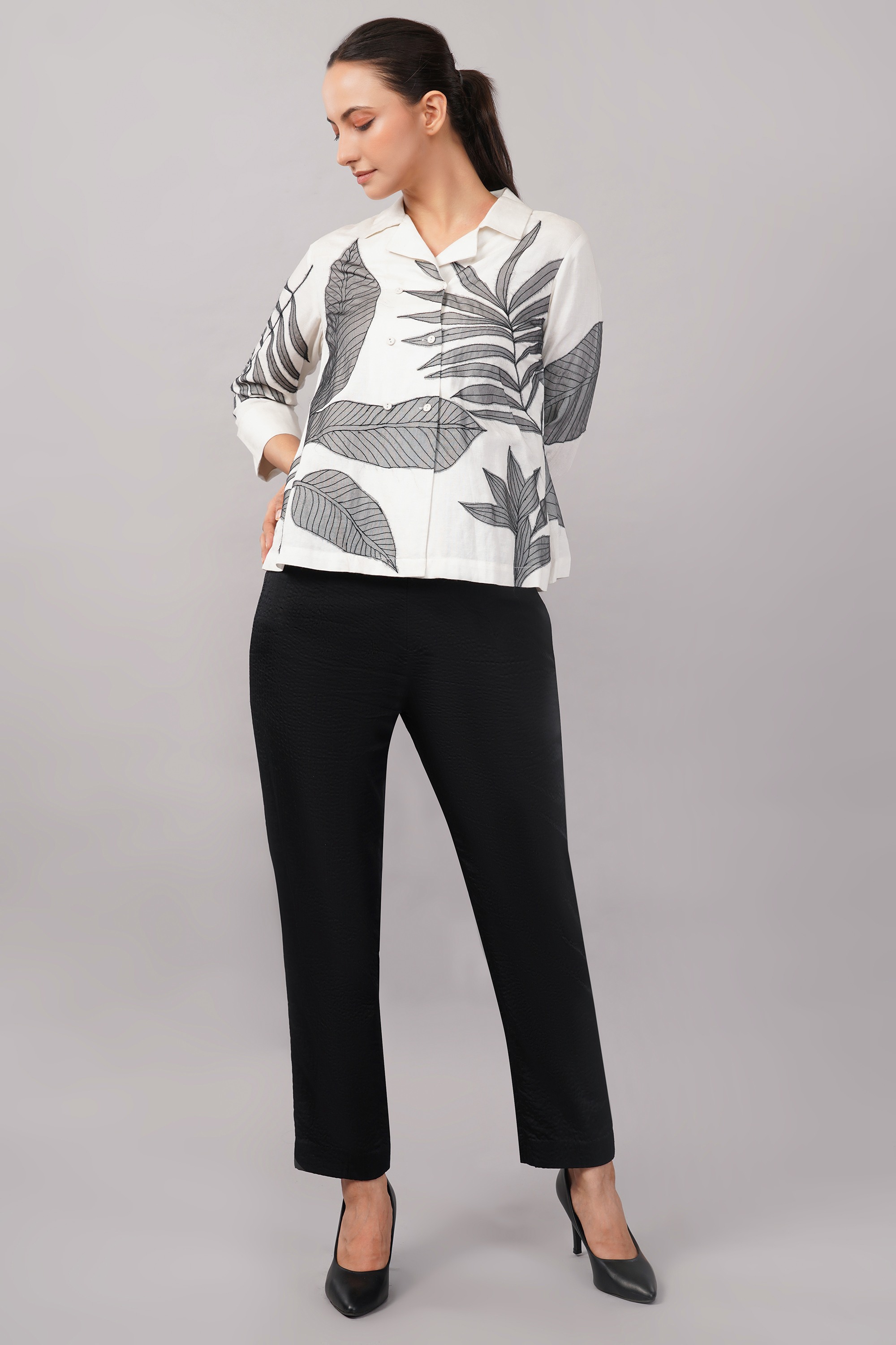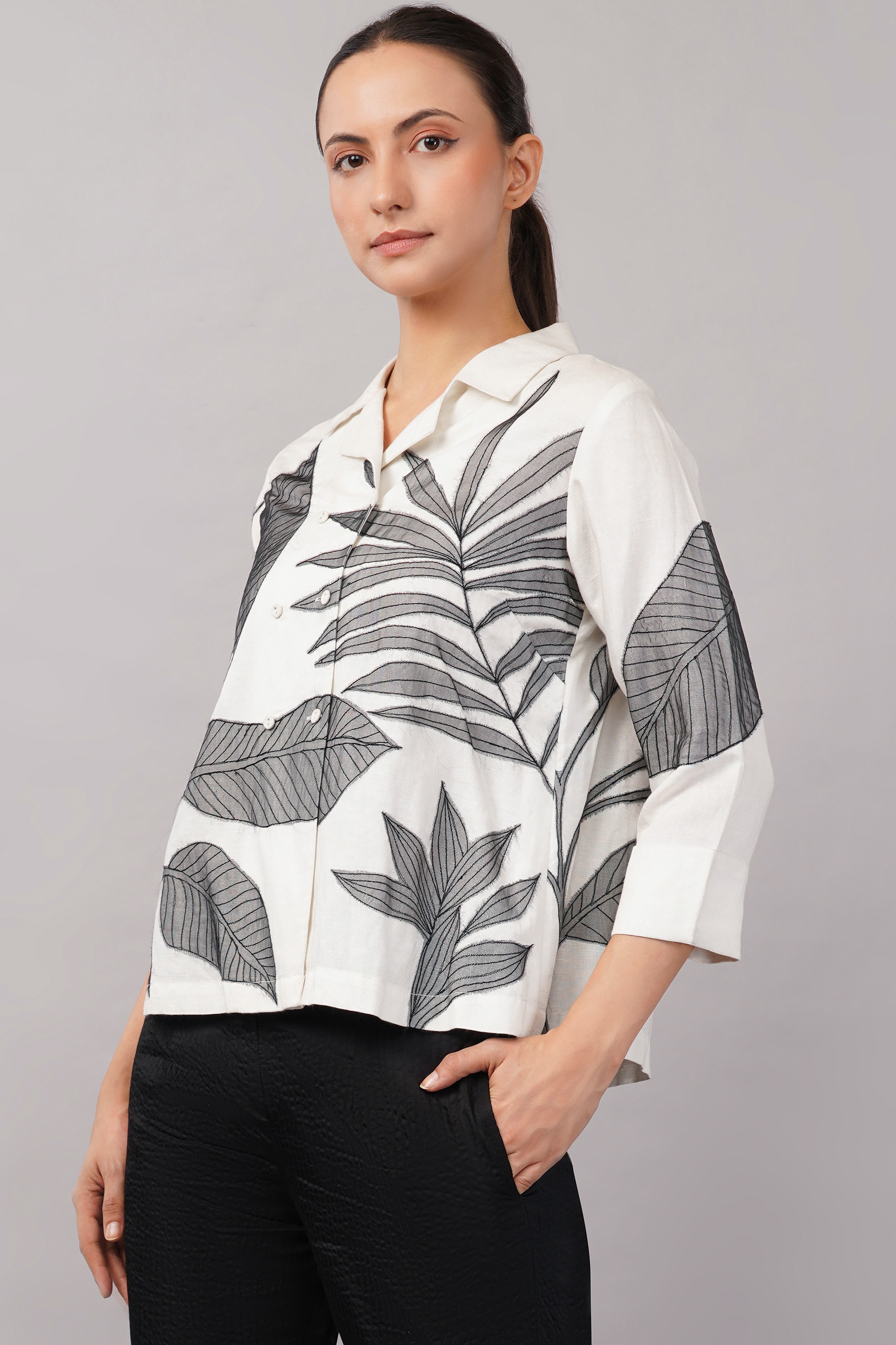 This limited edition piece has been made using sheer tulle that has been appliqued in the shape of leaves. The graphic forms in contrast colours make it a statement piece. Wear it with aplomb.