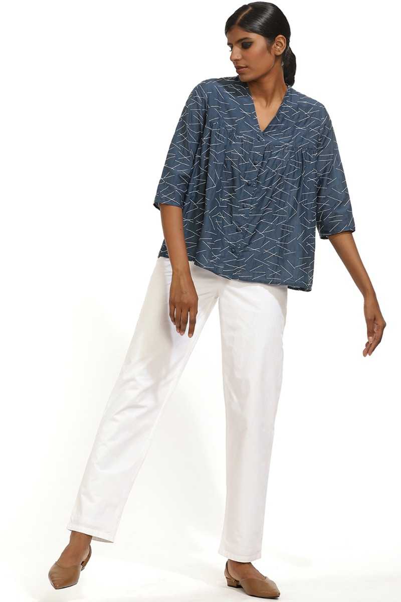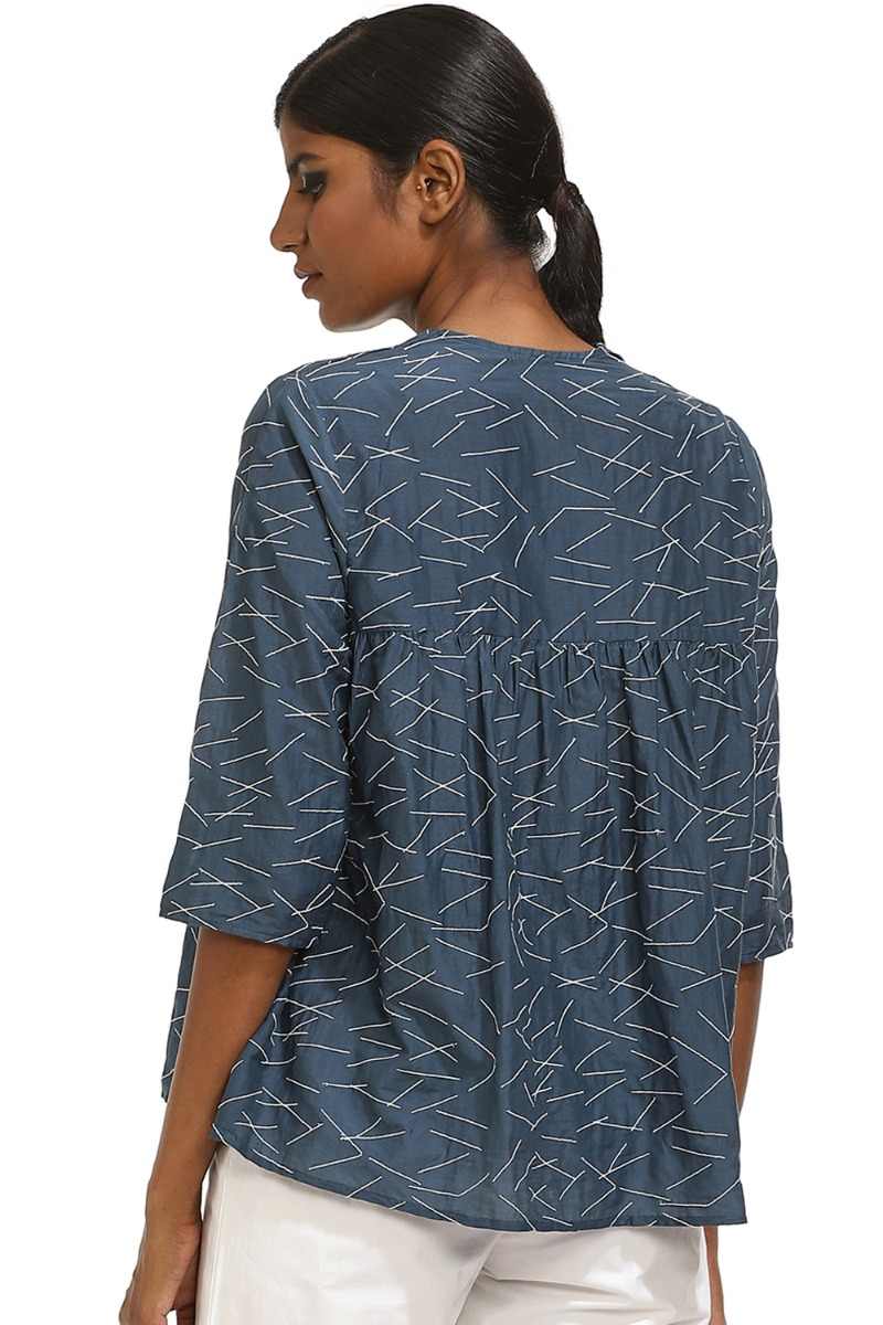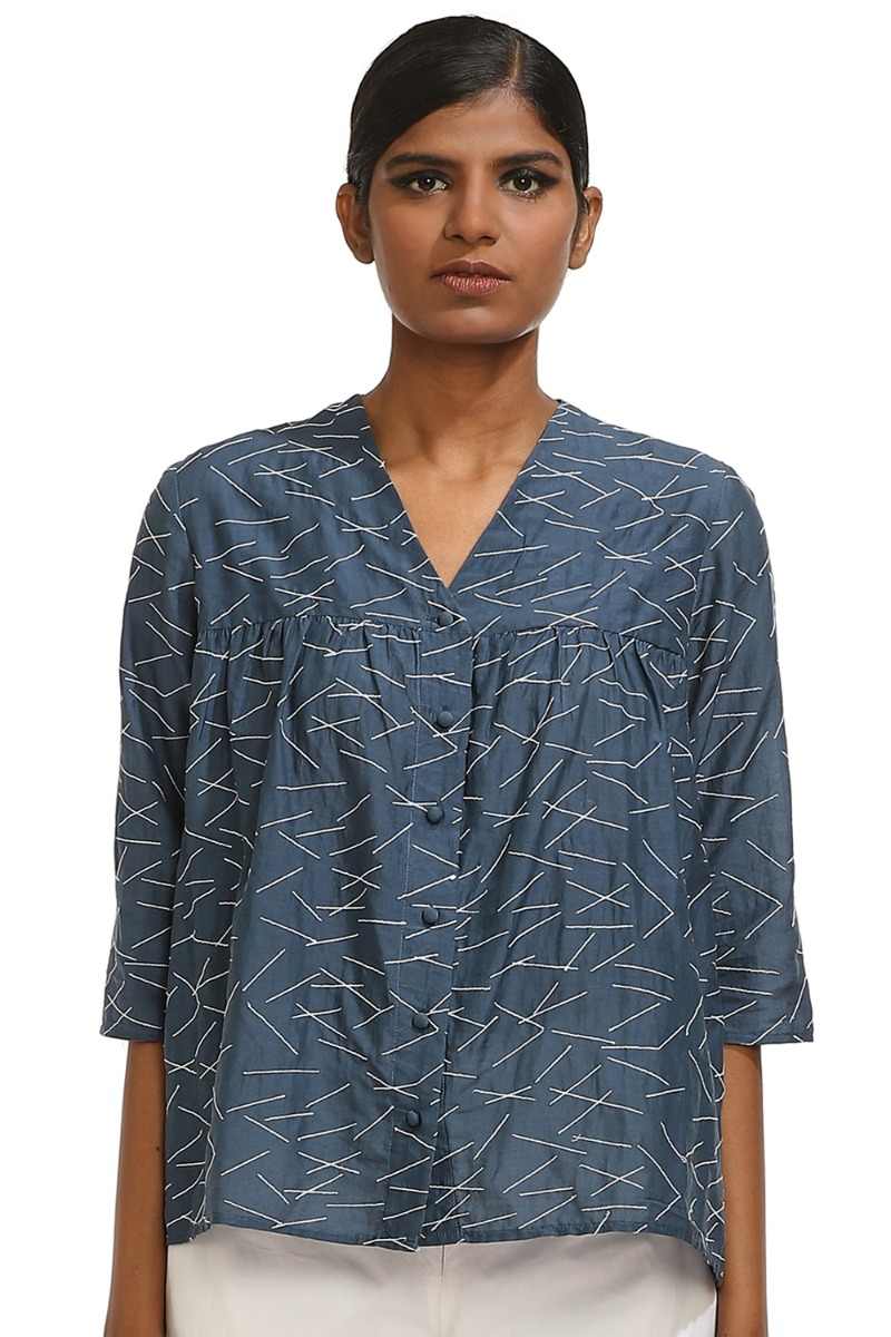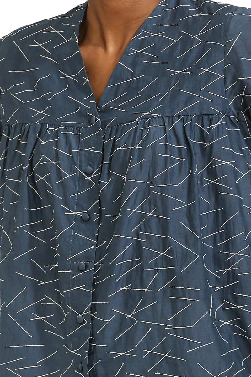 Ragular-Fit Kedia Top. Lines Texture Embroidered Top