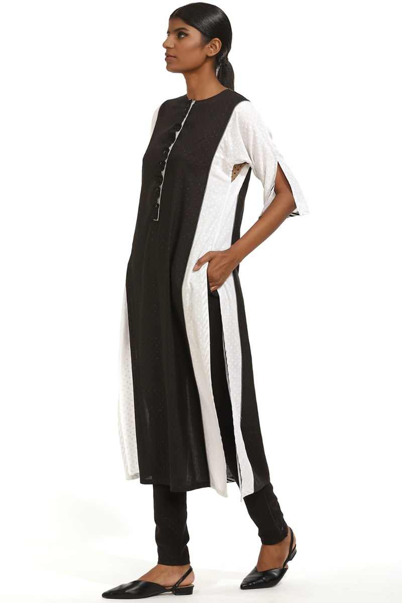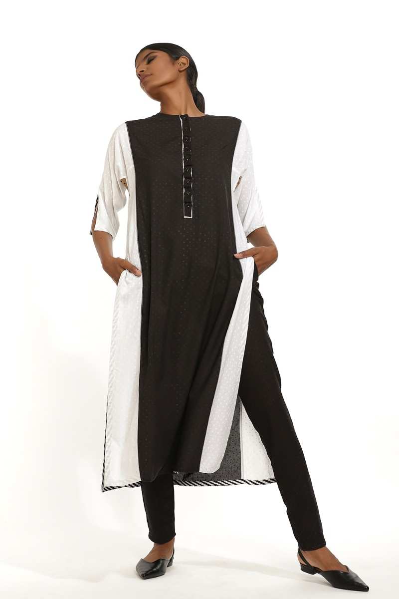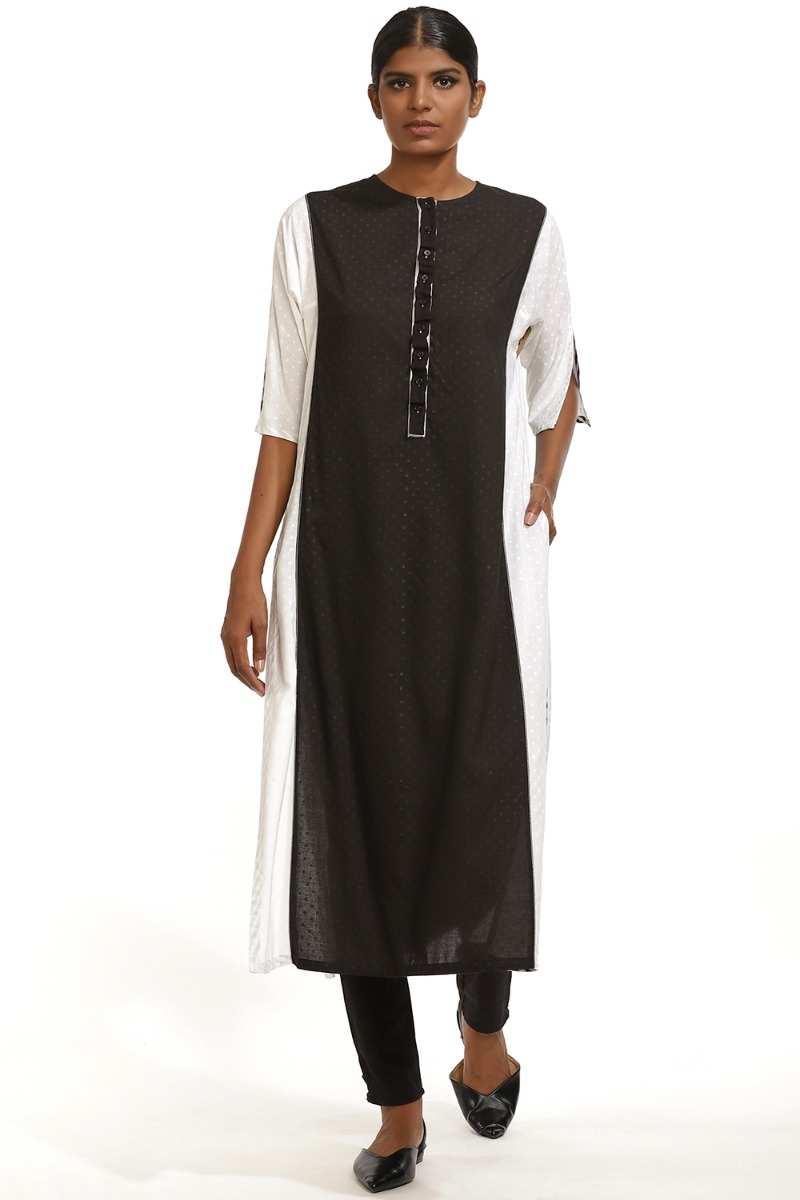 Ivory & Black Sustainable Viscose Patchwork Printed Dots