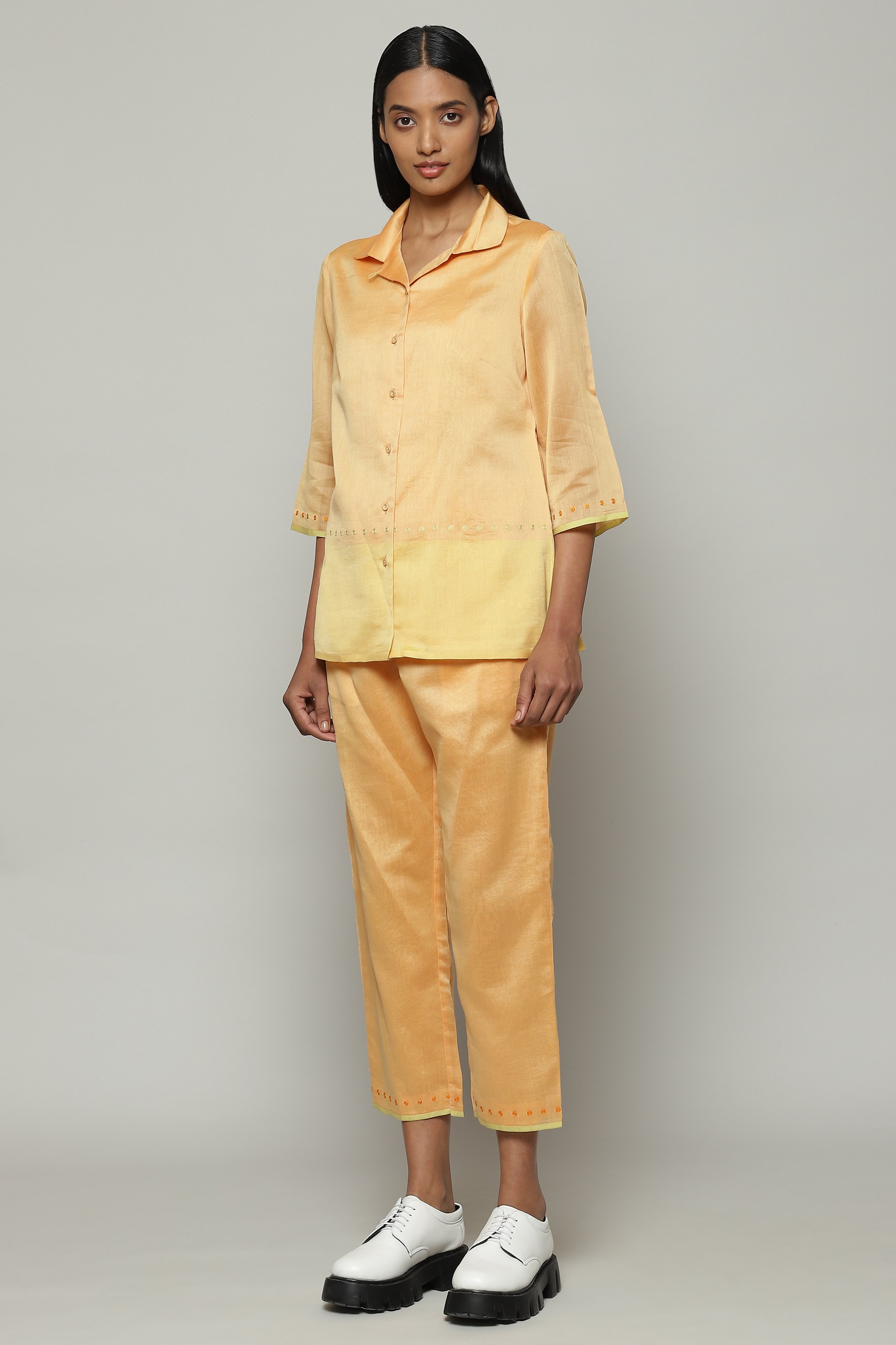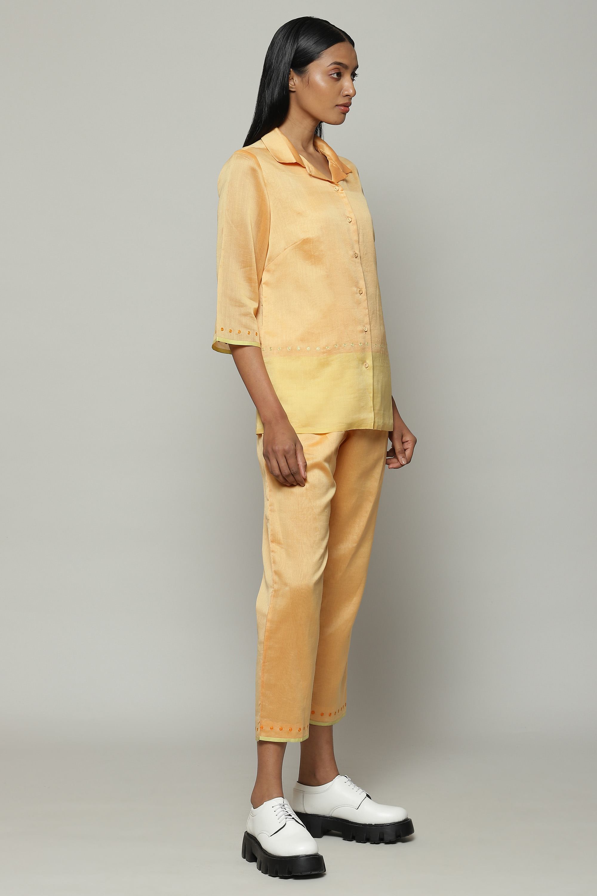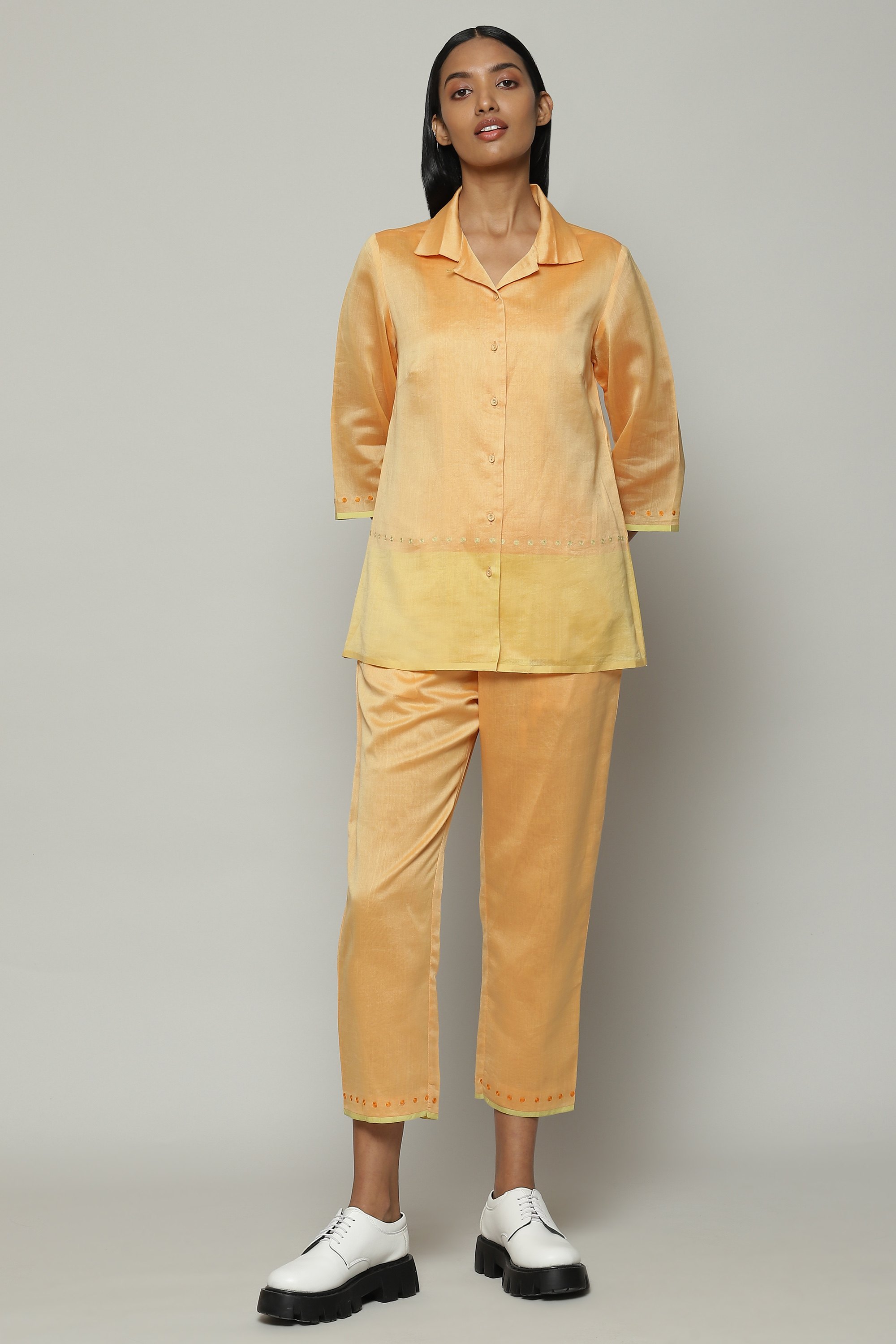 Maheshwar Border Silk X Cotton Shirt Apricot