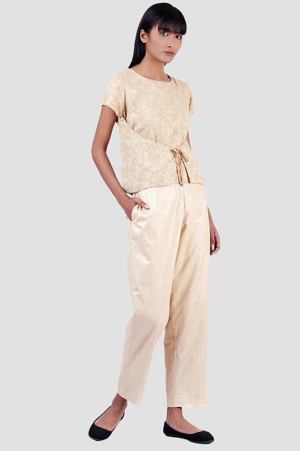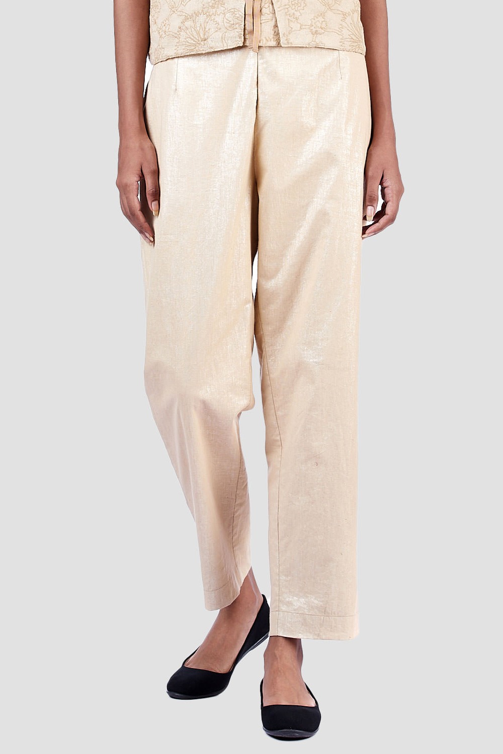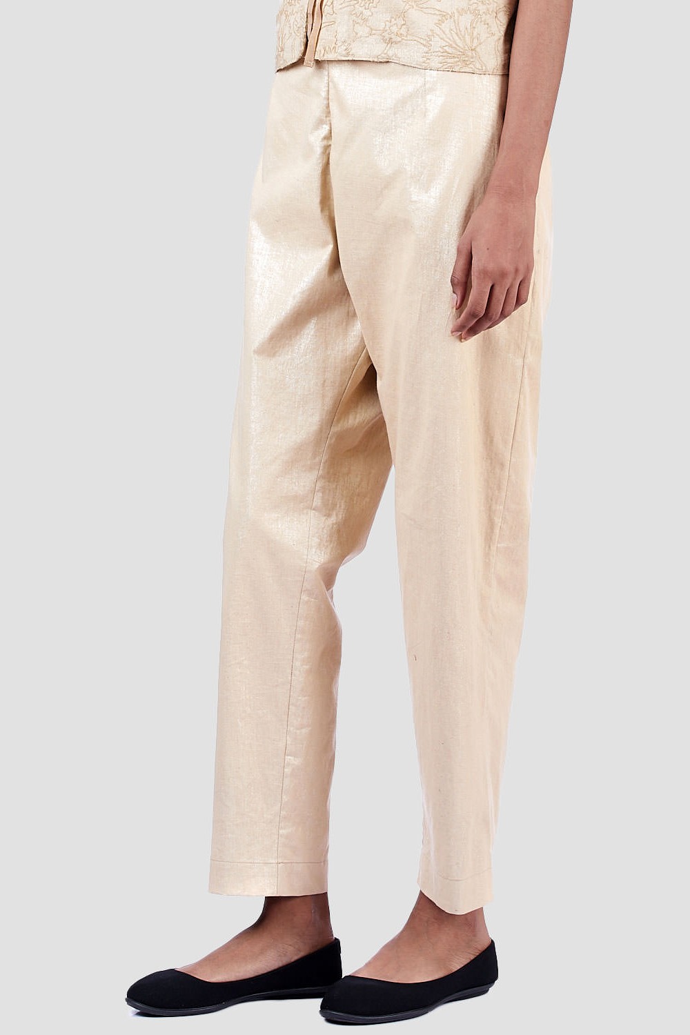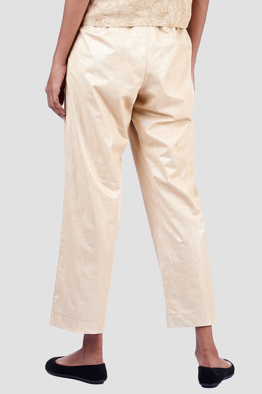 Regular-Fit Pant. Features All Over Metallic Print. Garments Are Made From Fabric That Is Washed And Pre-Shrunk To Give A Superior Hand.