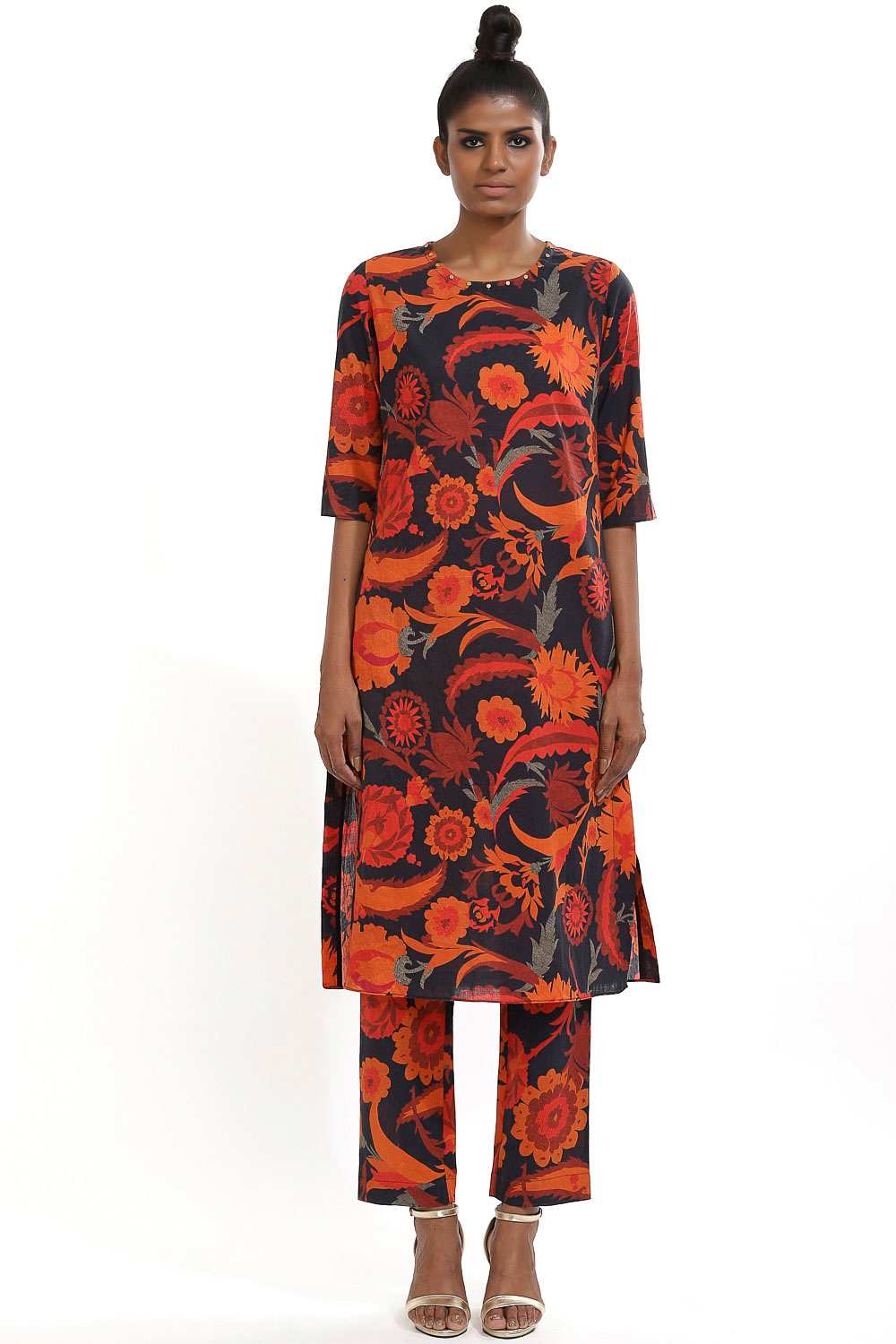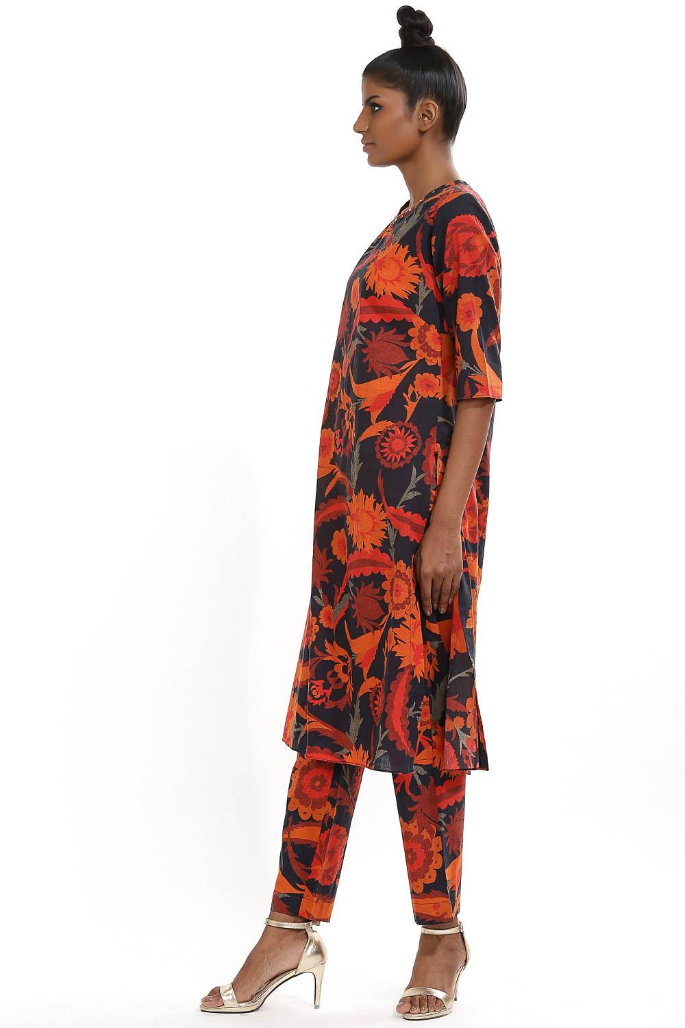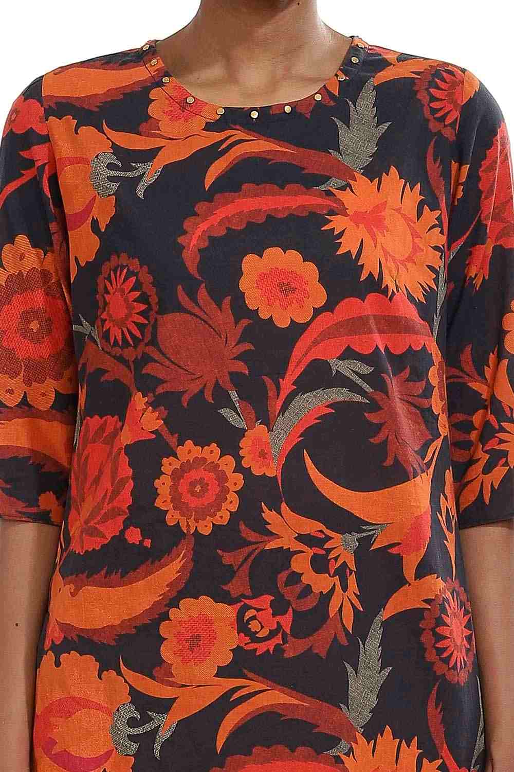 Multi color floral print with metal stud. This garment is exclusively handcrafted using an environmentally sustainable viscose.