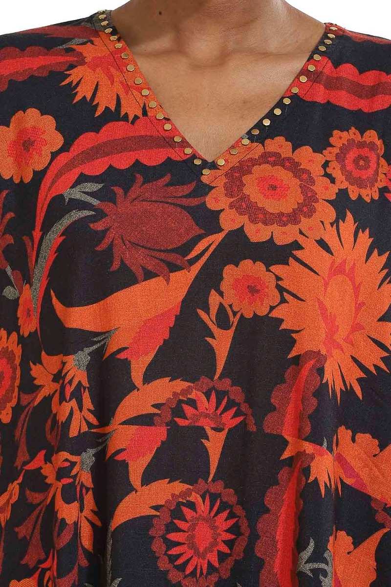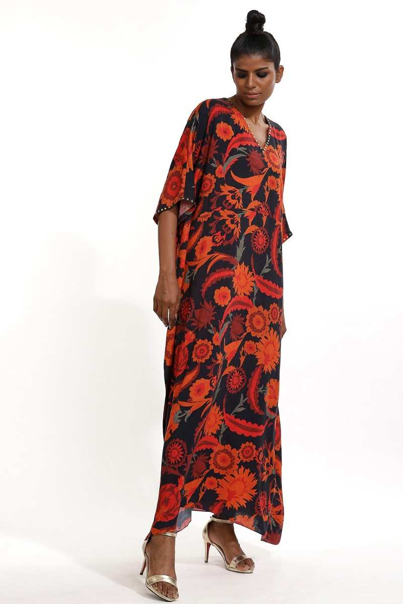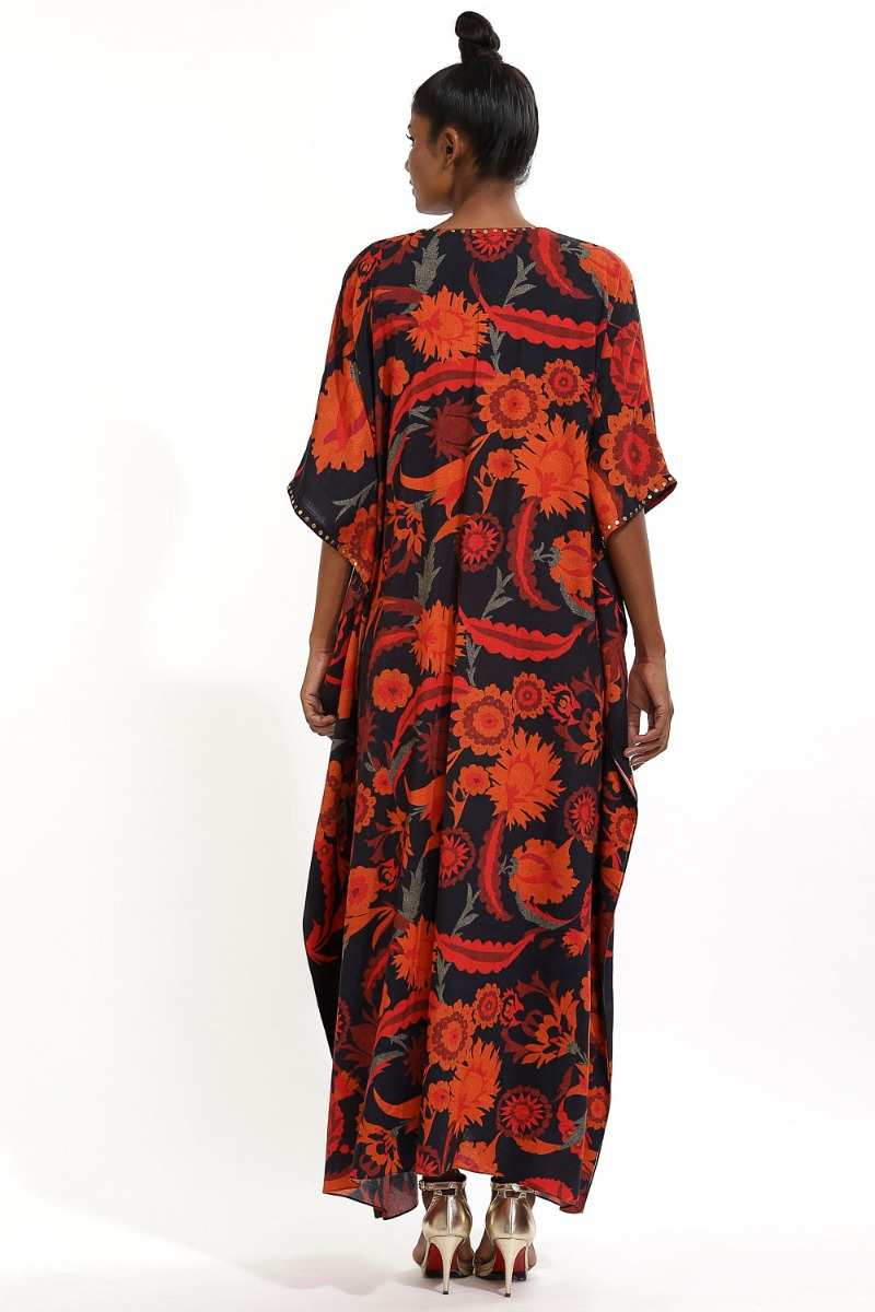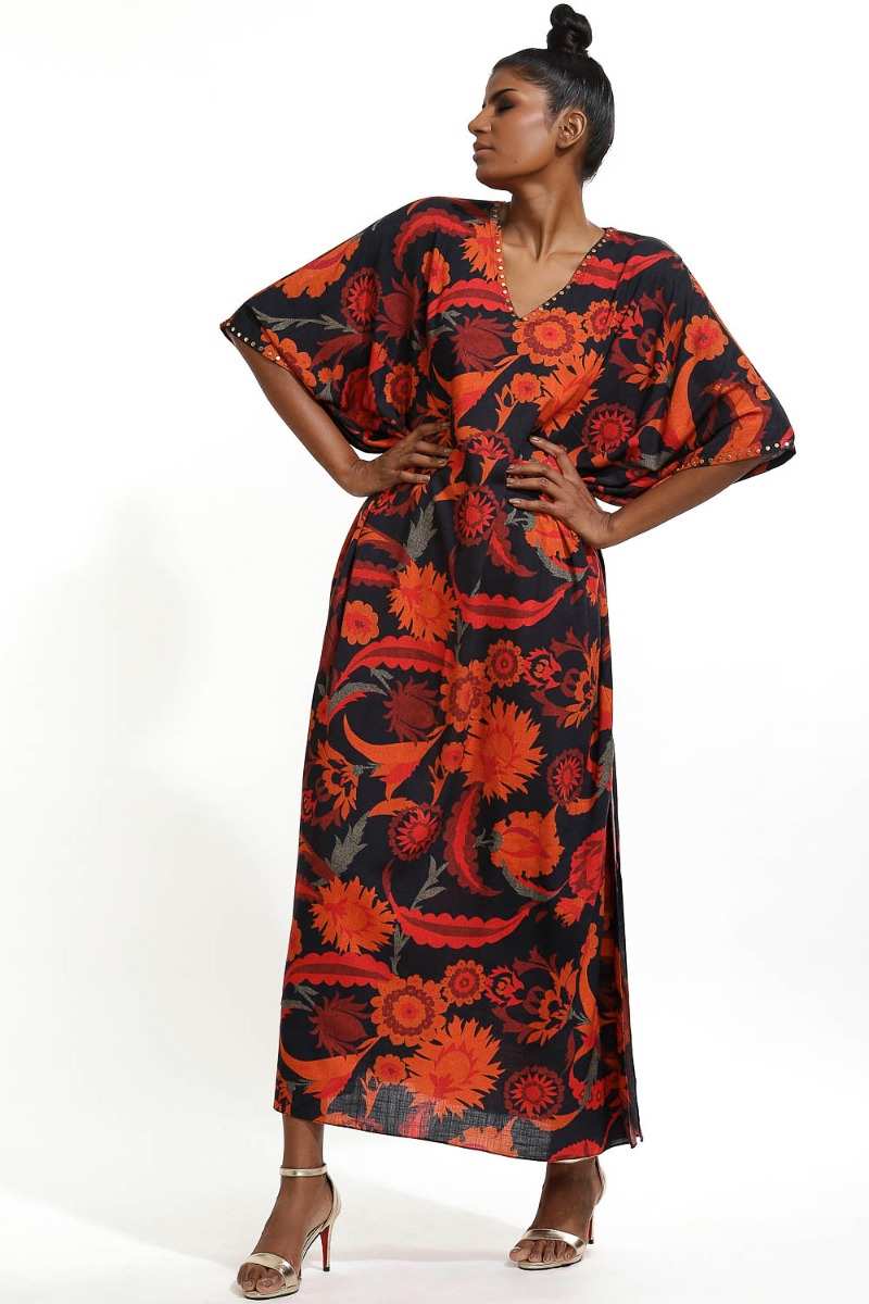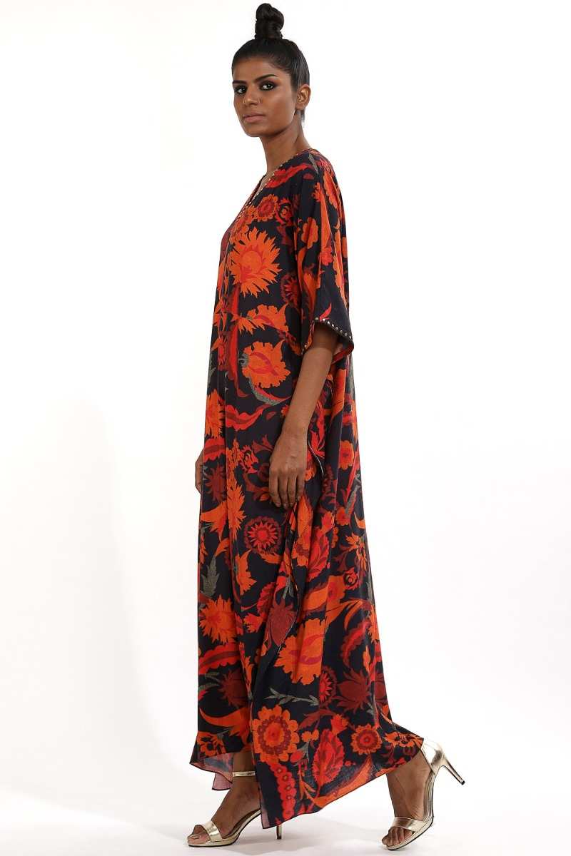 Multi Color Floral Print With Metal Stud Long Kaftan