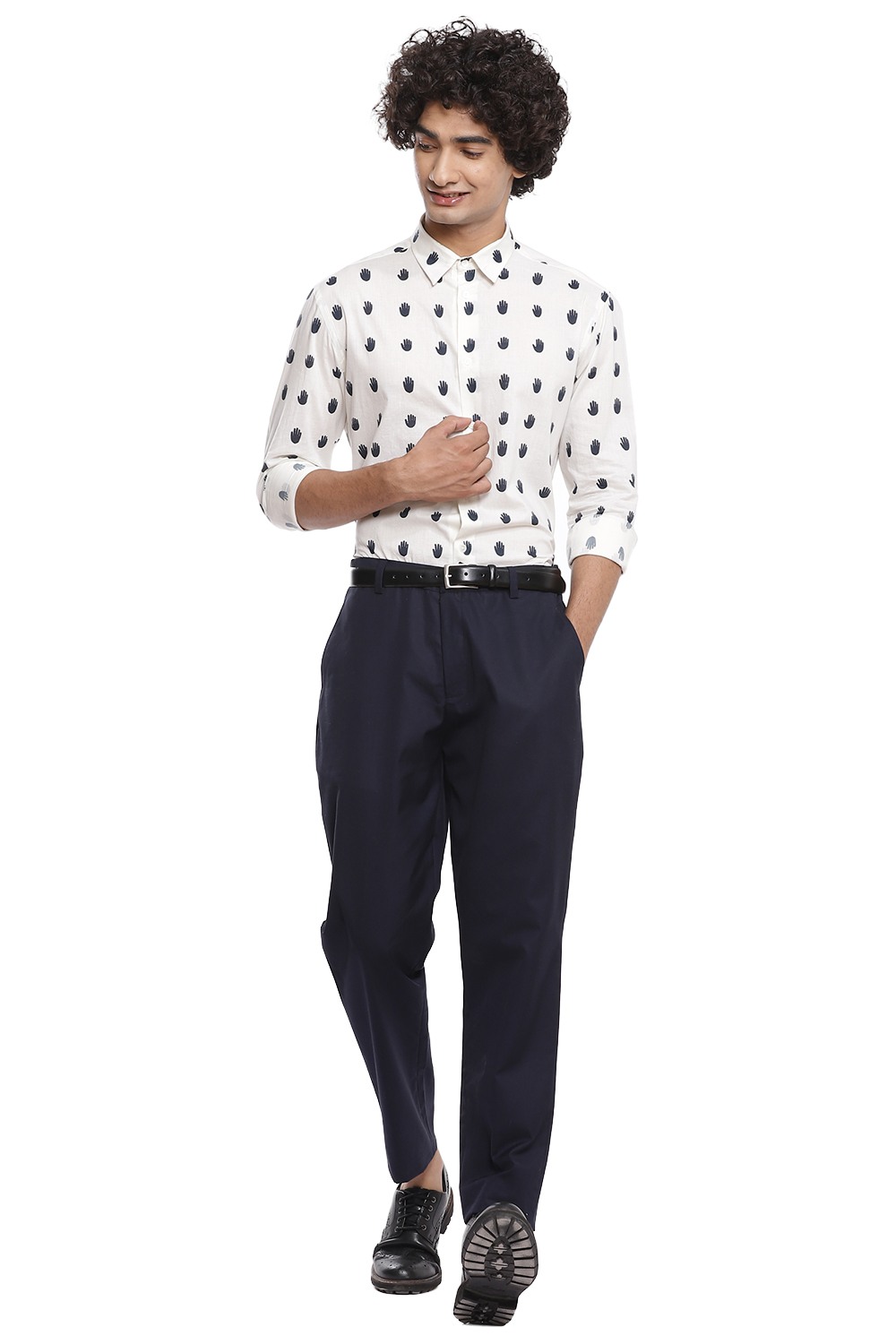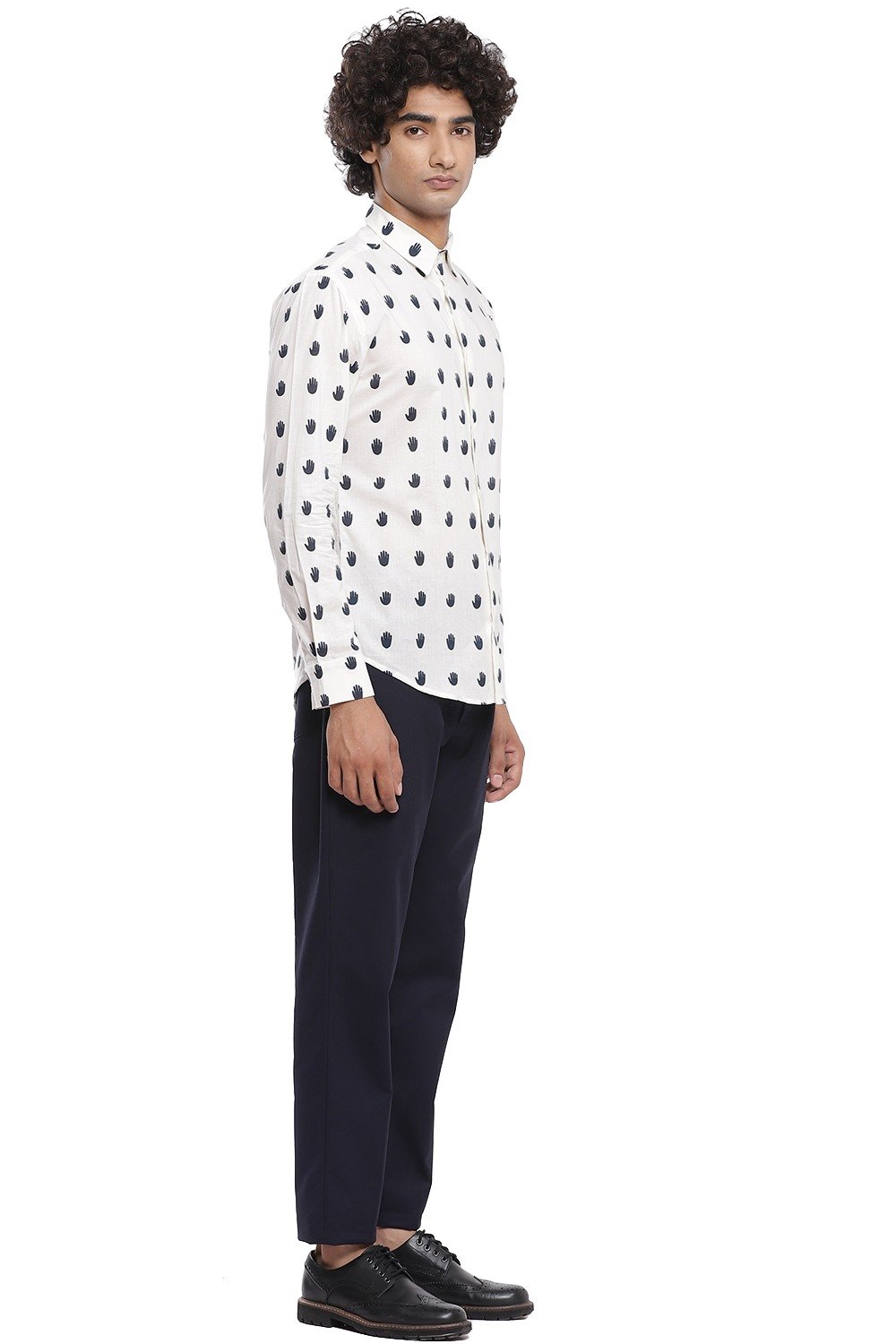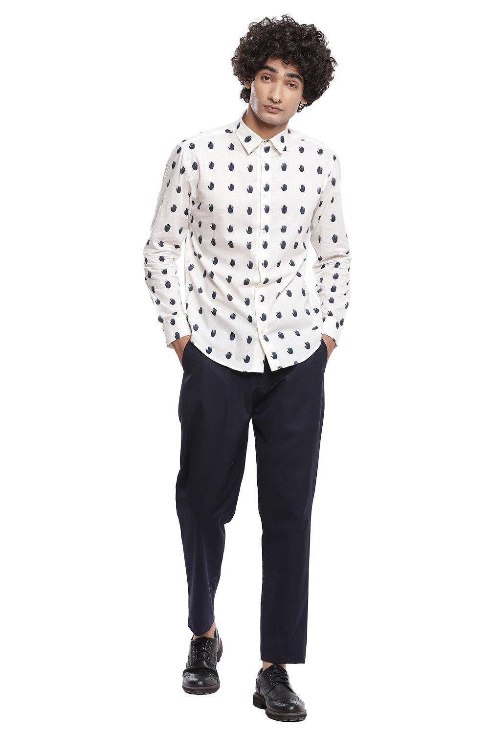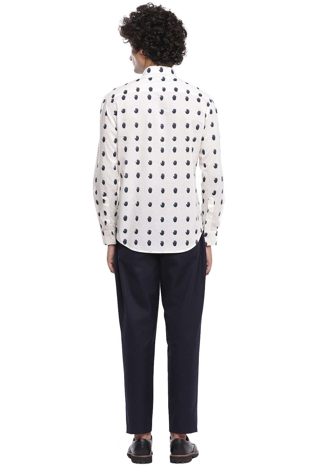 The perfect shirt with the hand motif in navy on an ivory ground, crafted from cotton cambric, cut for an easy and relaxed fit.