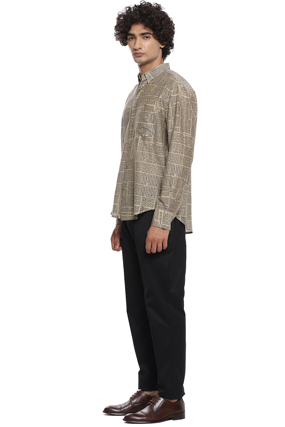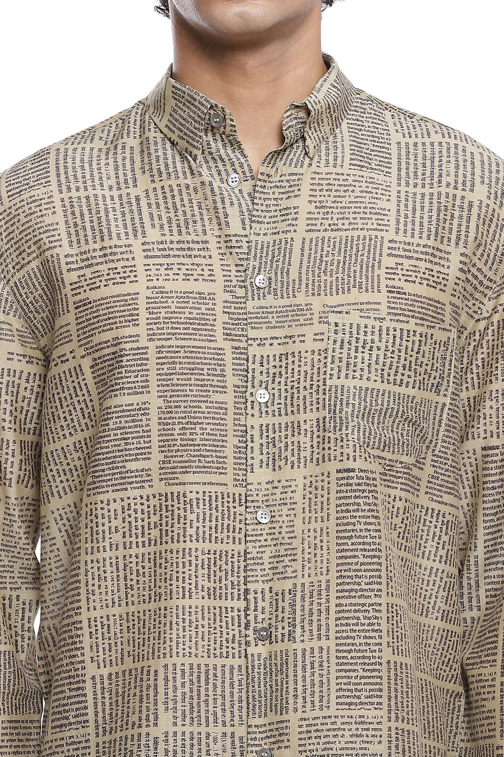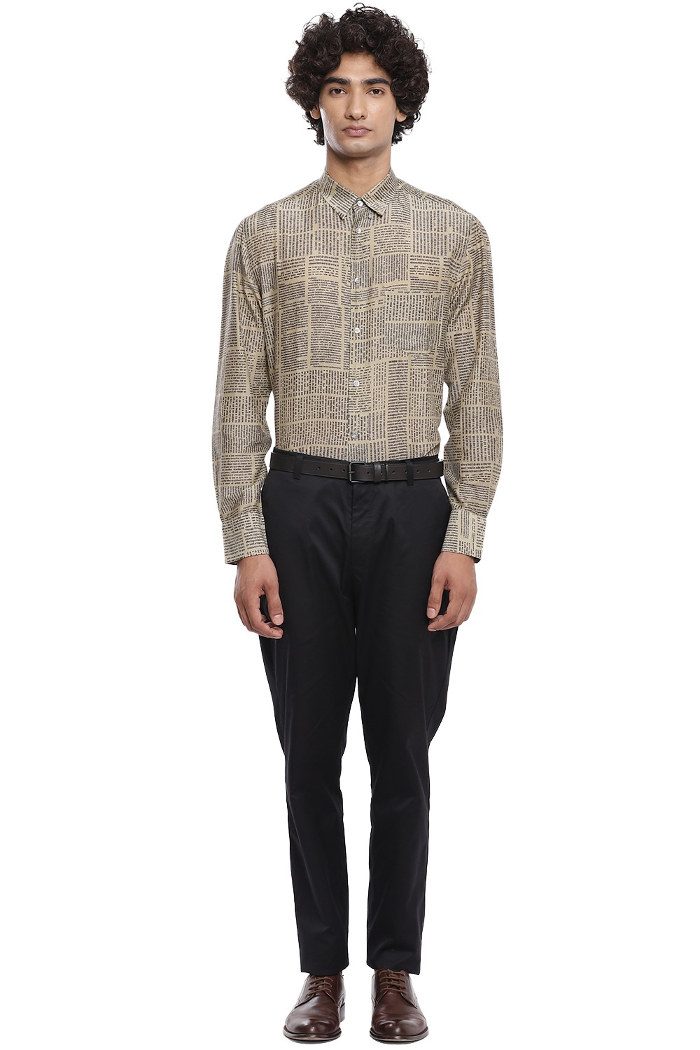 Newspaper Print Regular Fit Shirt. Abraham And Thakore Shirts For Men Have Been Crafted In Lightweight Natural Textiles In Regular And Slim Fits, Employing Various Traditional Textiles Techniques.