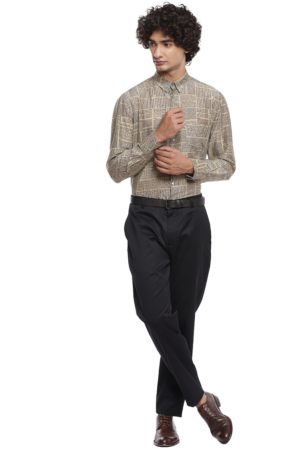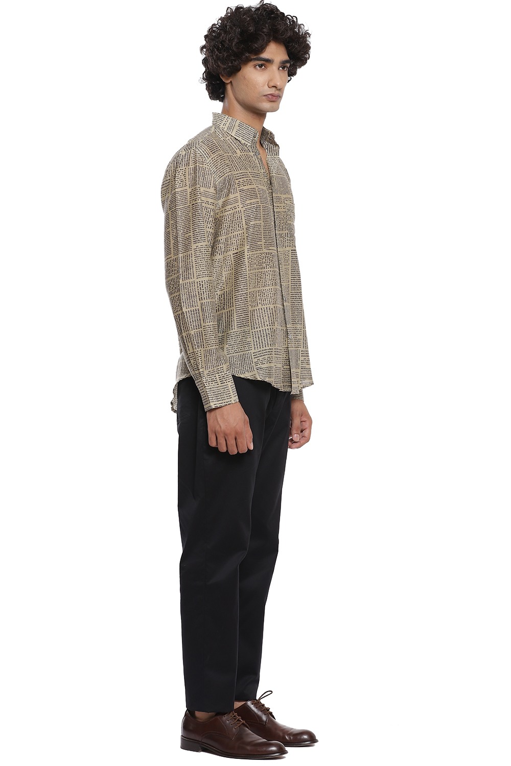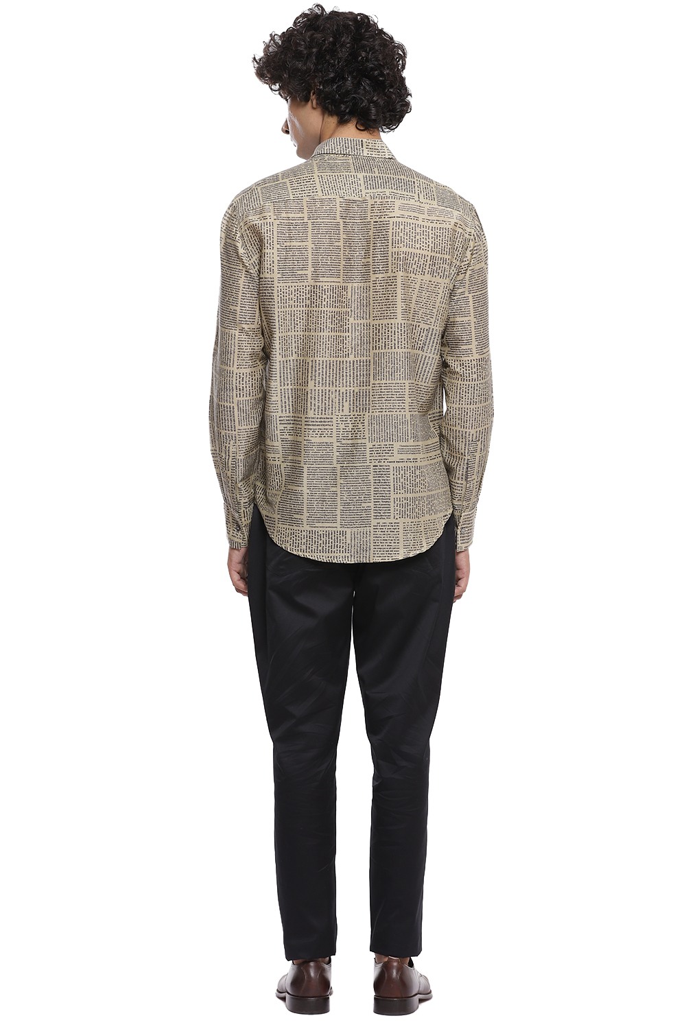 Newspaper Print Regular Fit Shirt. Abraham And Thakore Shirts For Men Have Been Crafted In Lightweight Natural Textiles In Regular And Slim Fits, Employing Various Traditional Textiles Techniques.