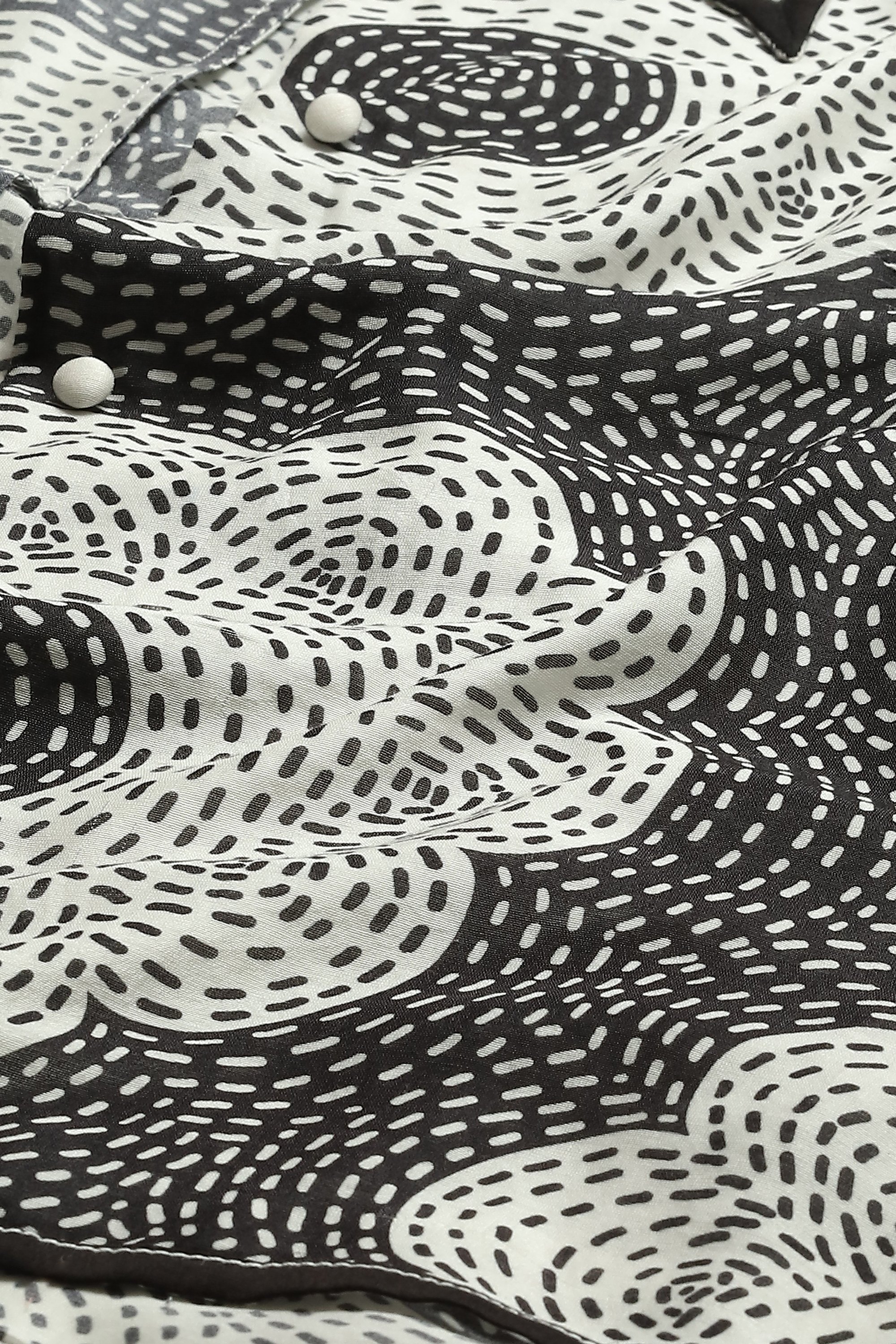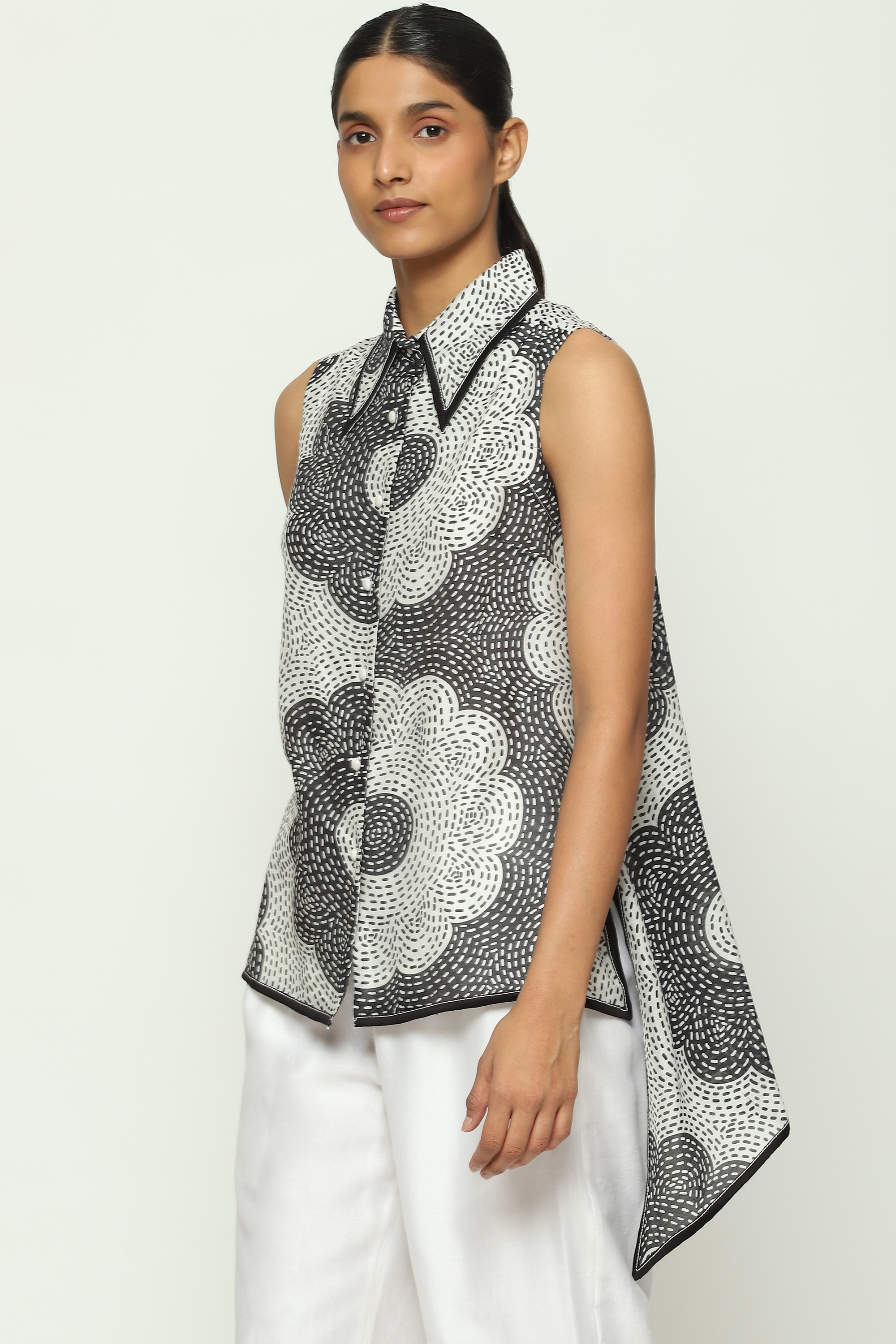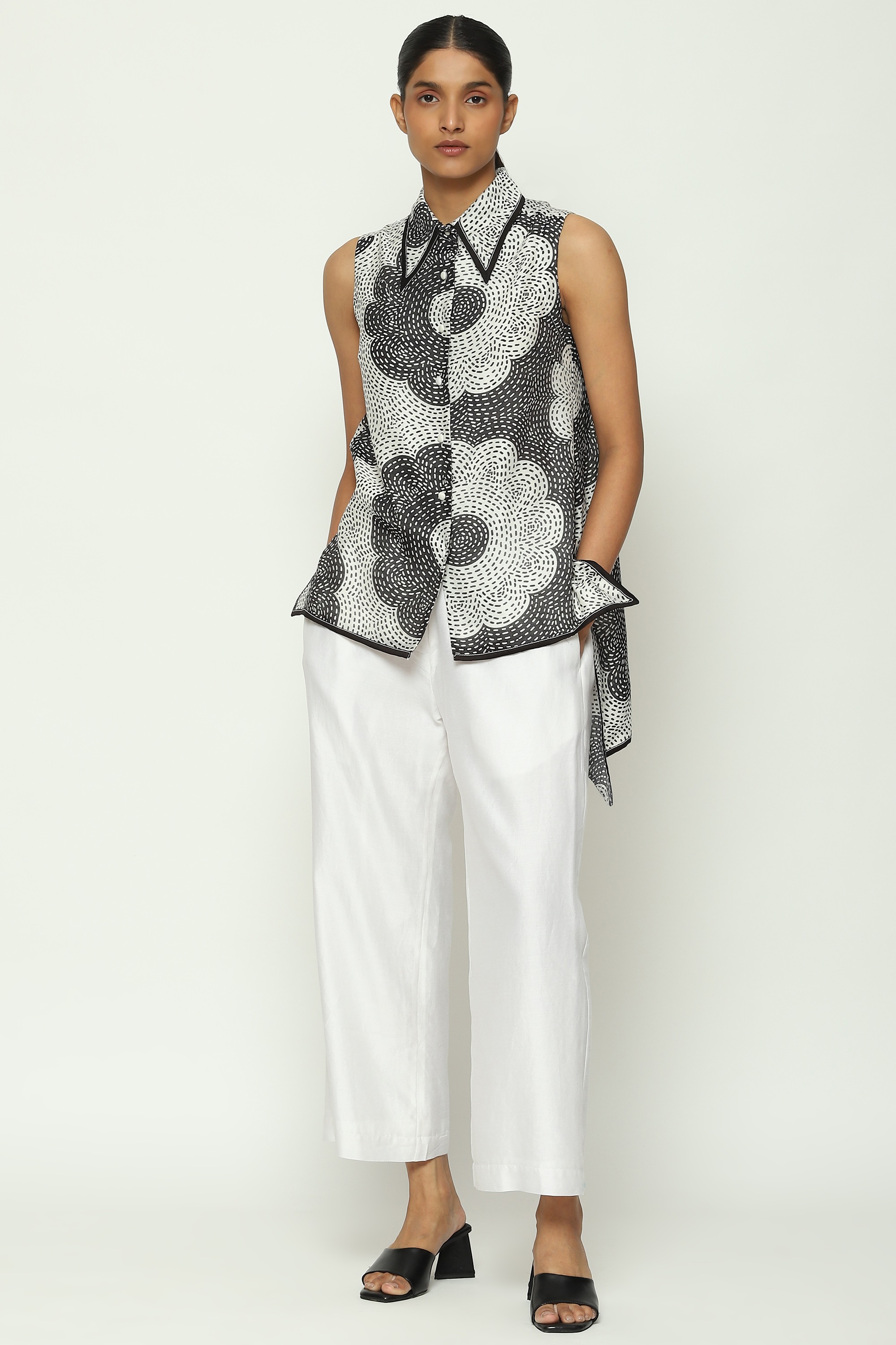 A symbol of joy, printed in kantha stitches on a black and white top.