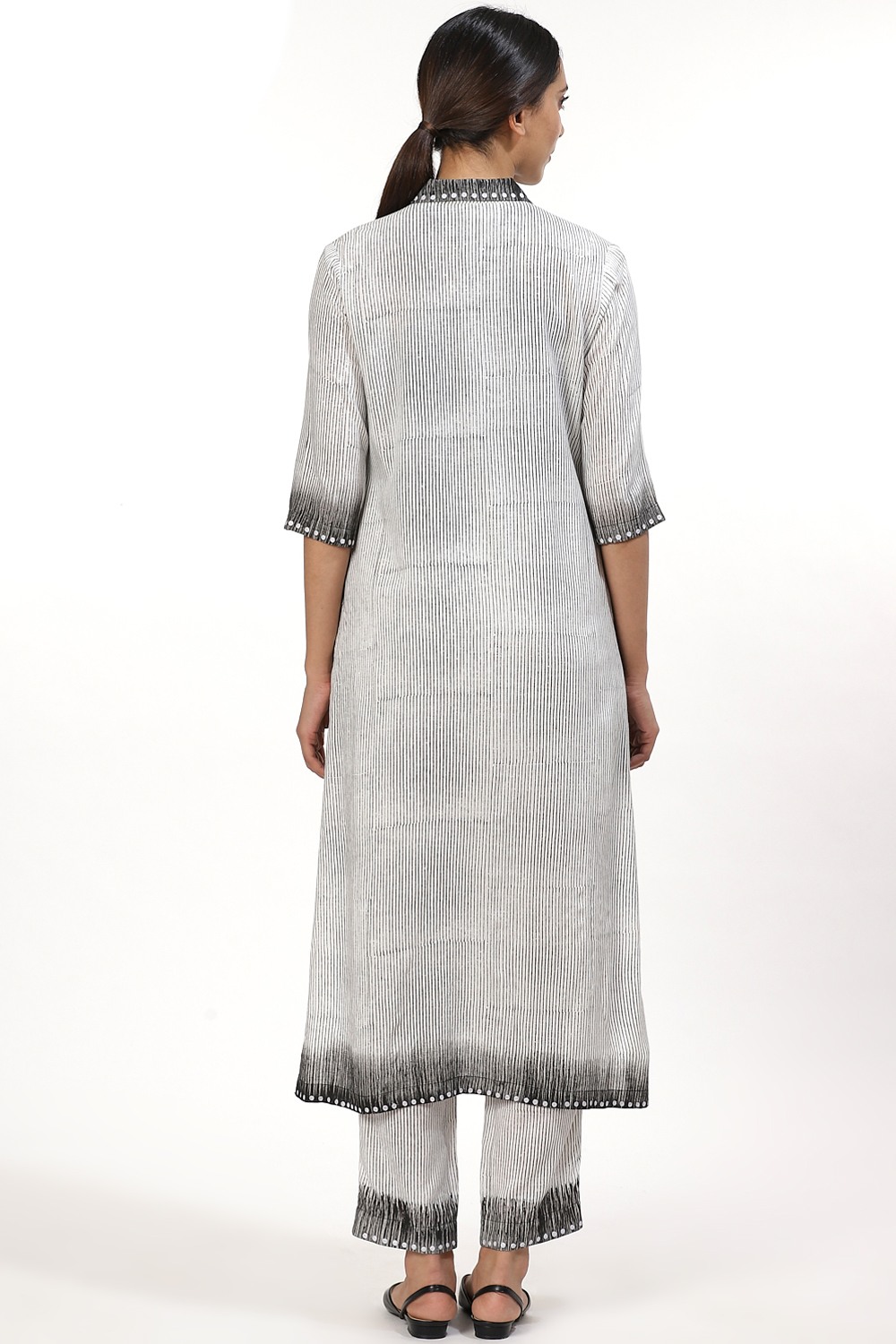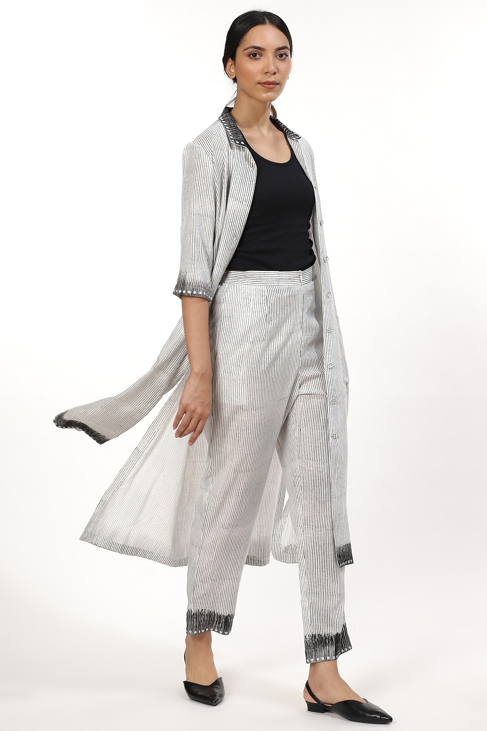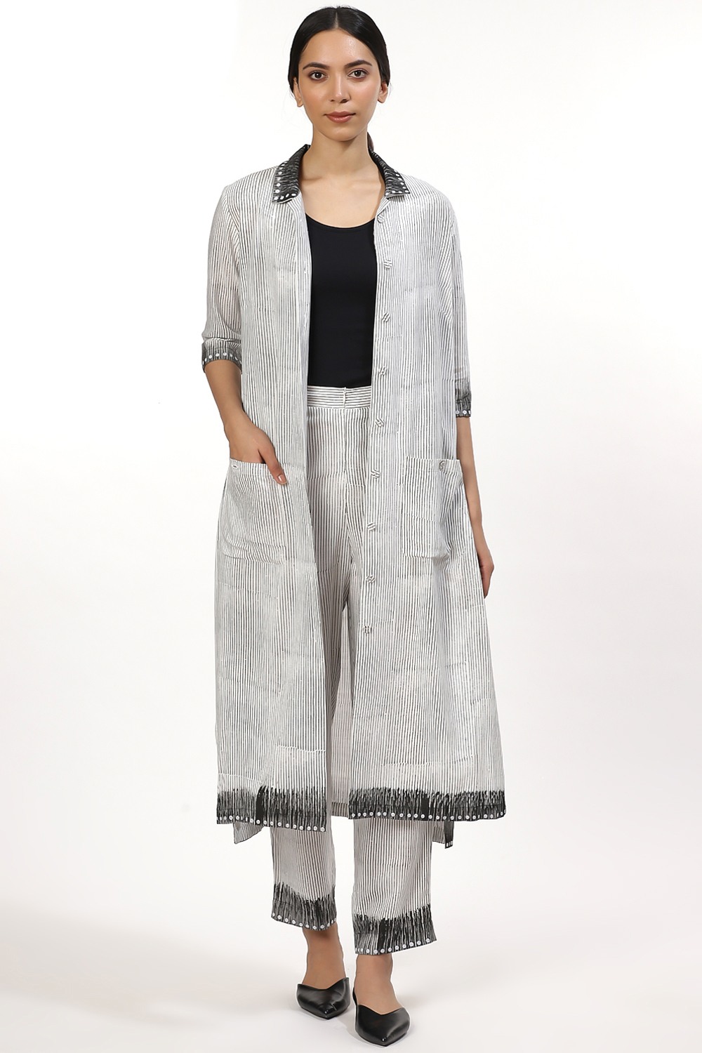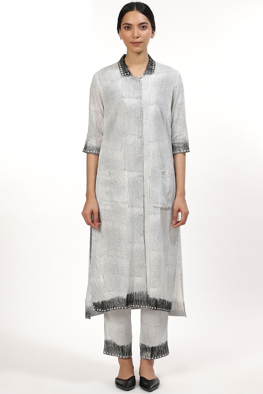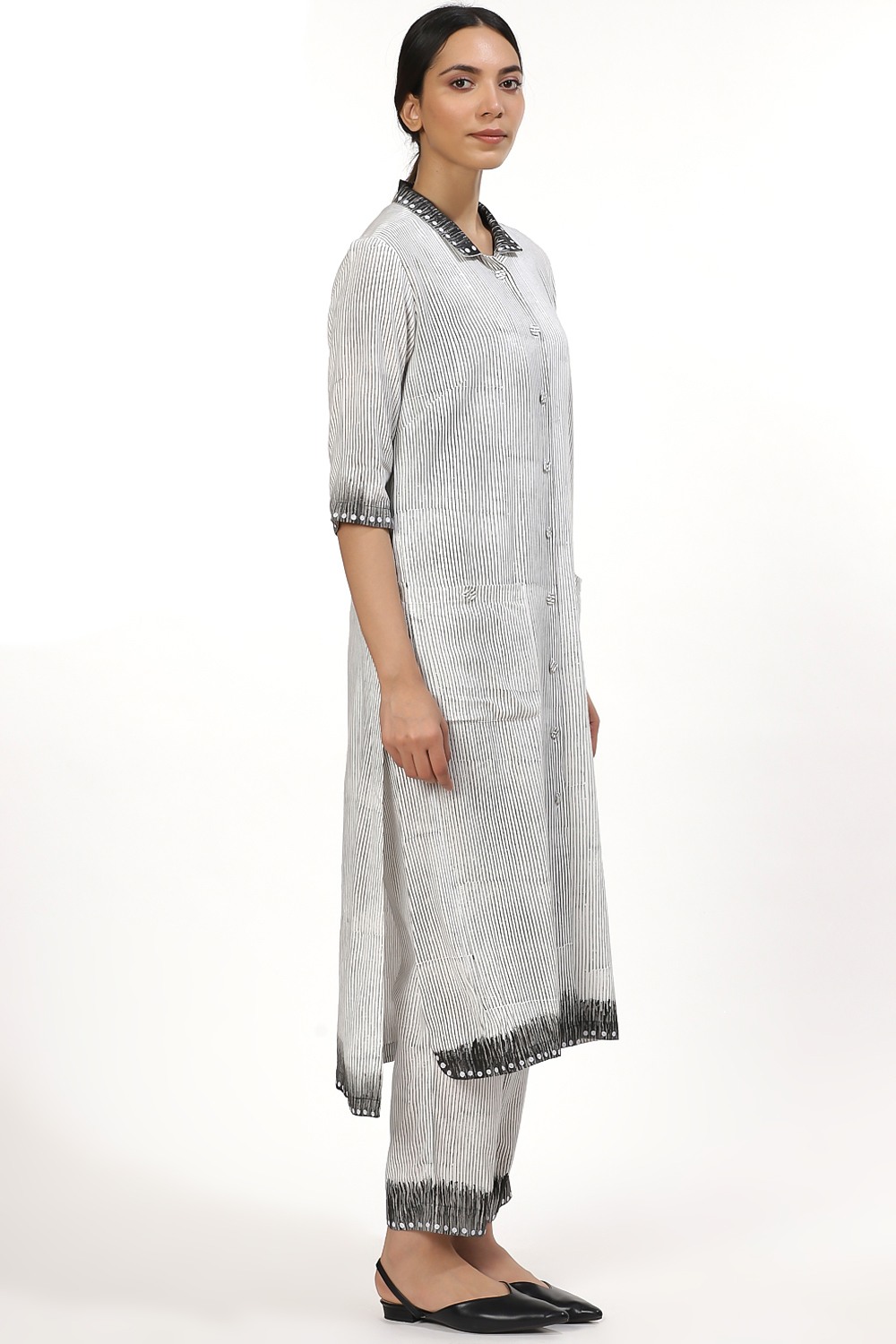 Fine Block Printed Shirt Dress With Hand Painted Brush Stroke Borders, Crafted From Cellulose Blend Fabric, In A Relaxed Button Front Silhouette.