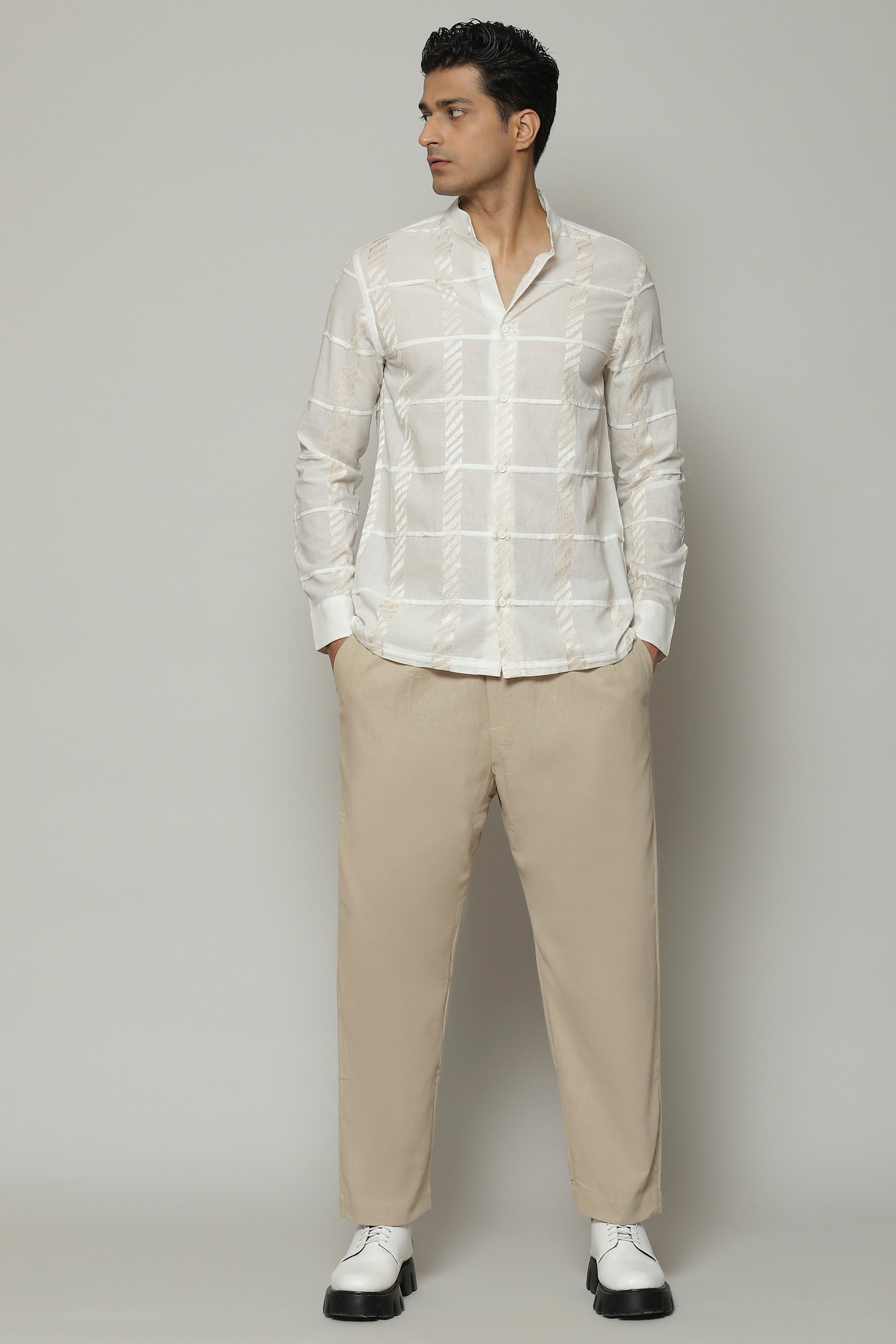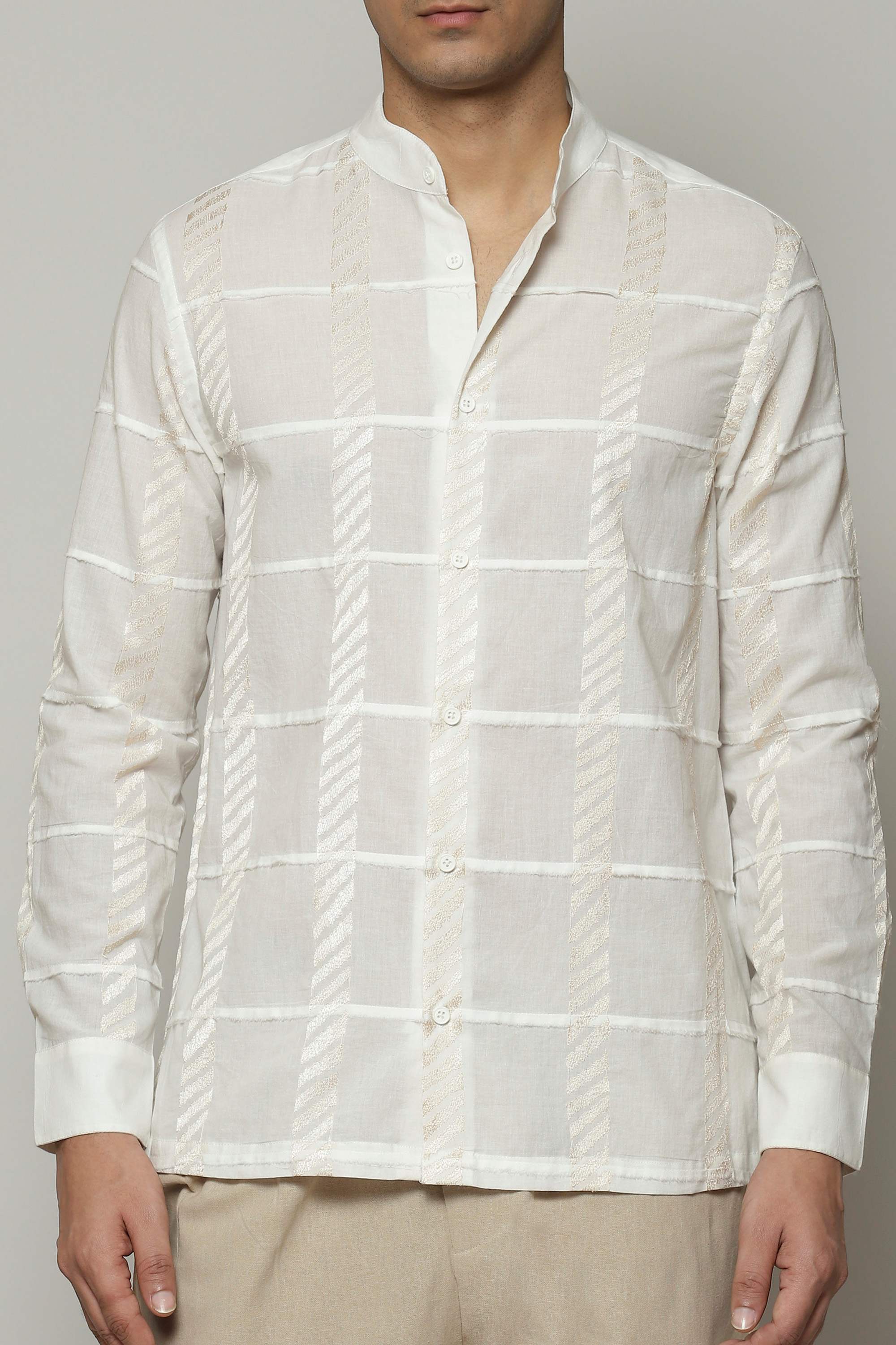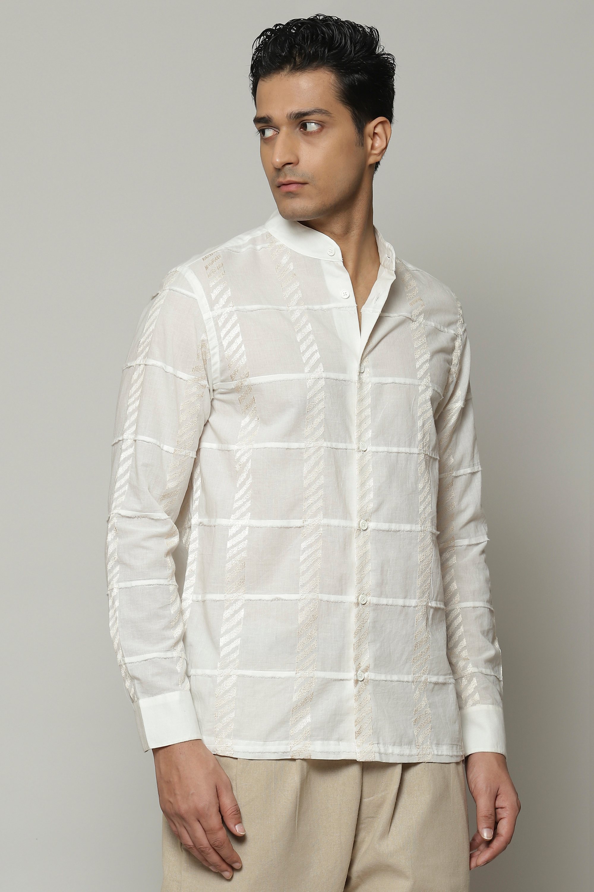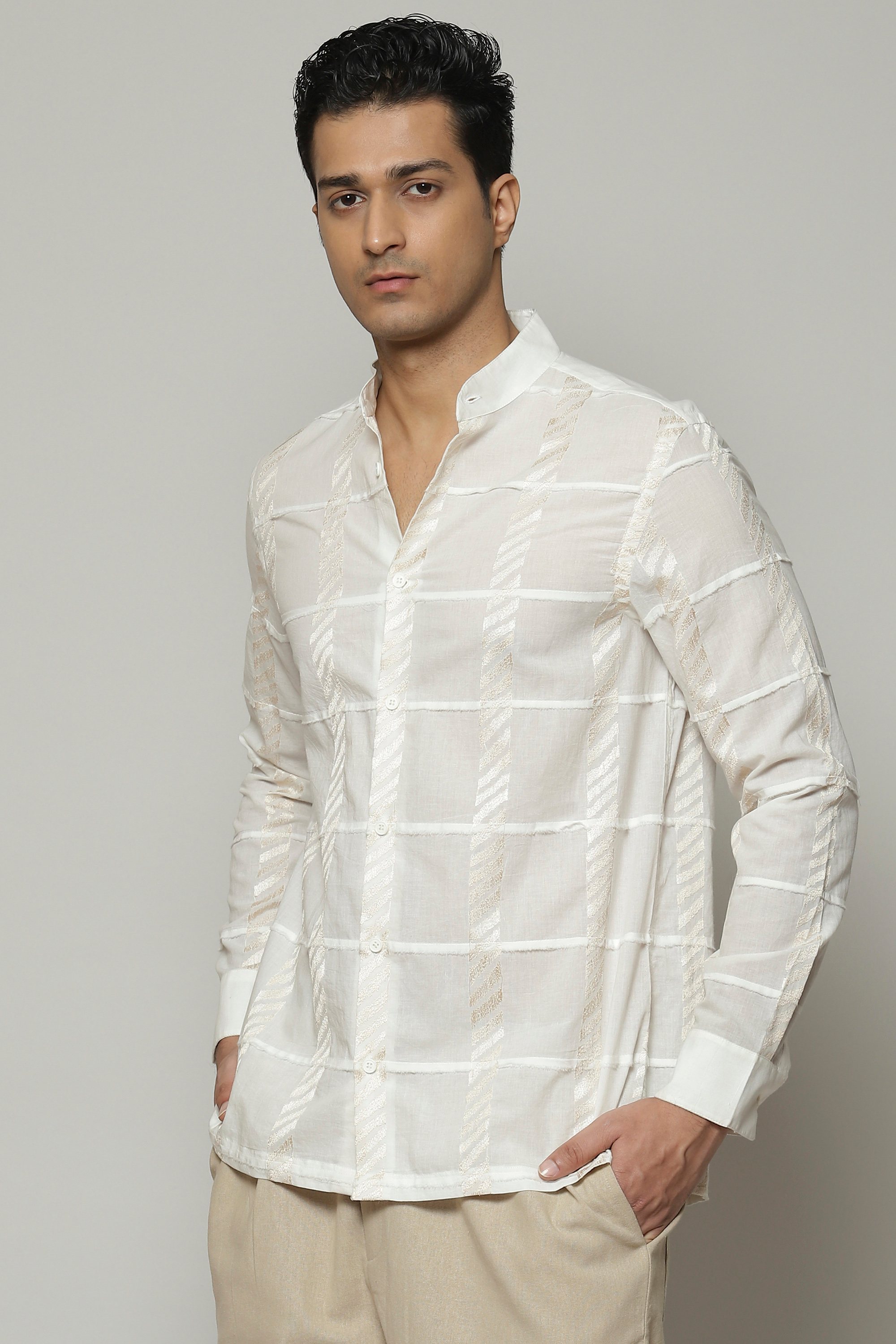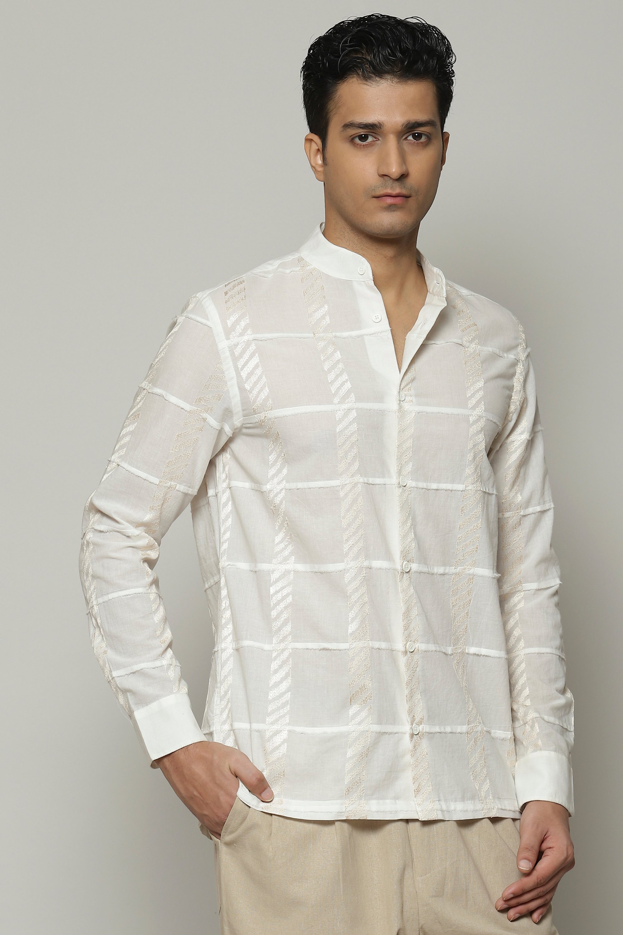 A dreamy ivory shirt, featuring patchwork embroidery. The piece is crafted in a lightweight cotton that keeps you comfortable through the day. This shirt acts as a fundamental building block for any ensemble.