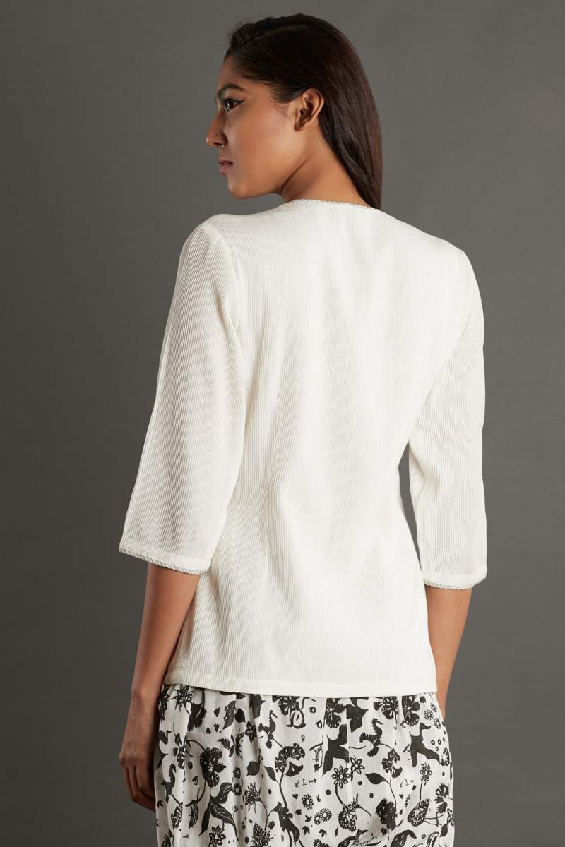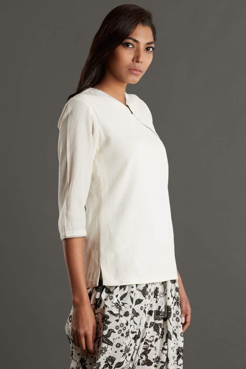 Pintuck Silk-Cotton White Top