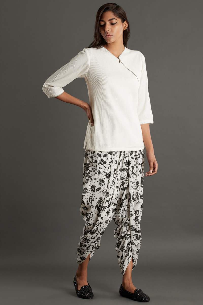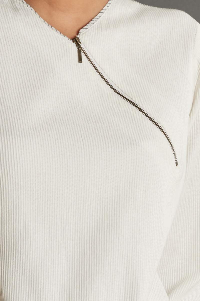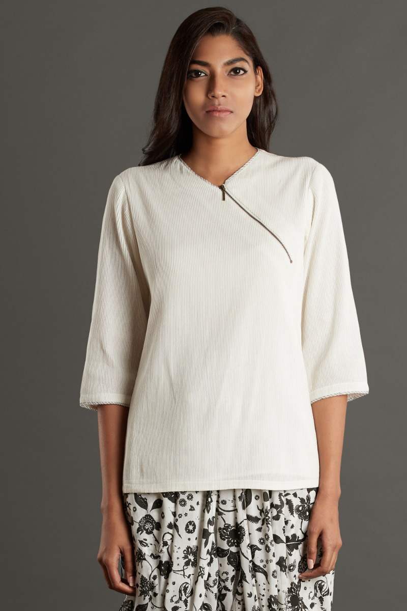 Regular-fit top features all over pintucks with front zipper. Cut form silk-cotton.