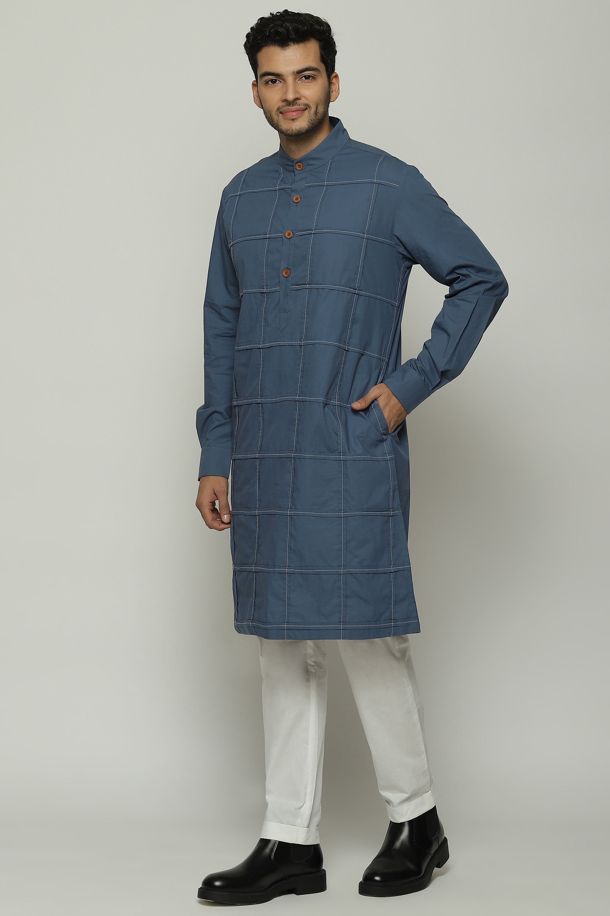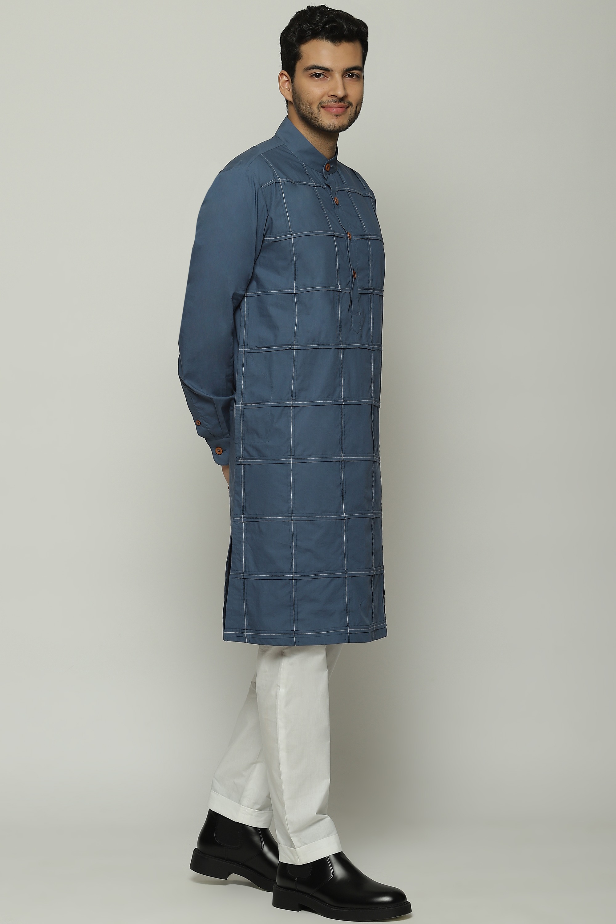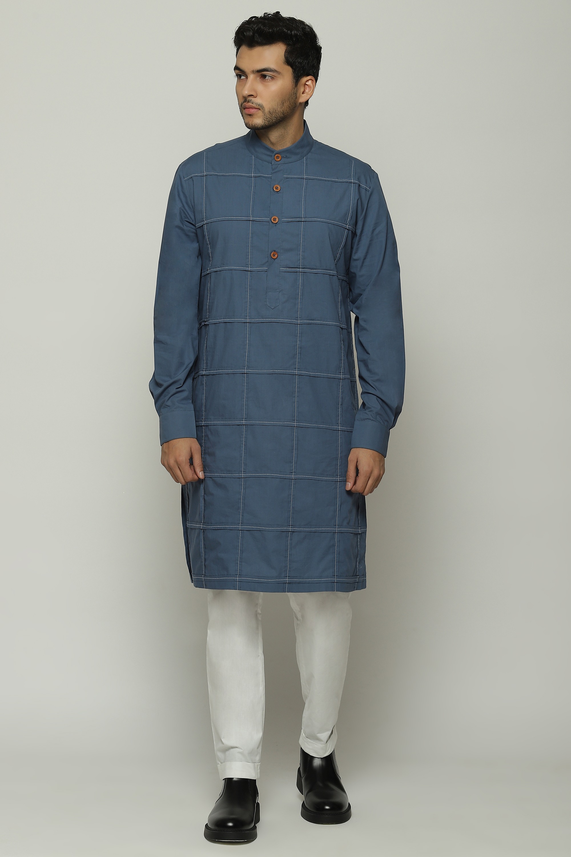 PLEATED CHECKS LONG KURTA