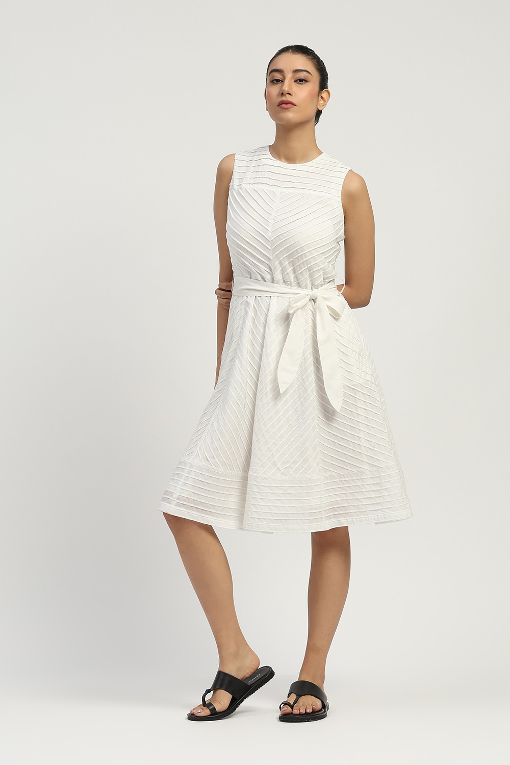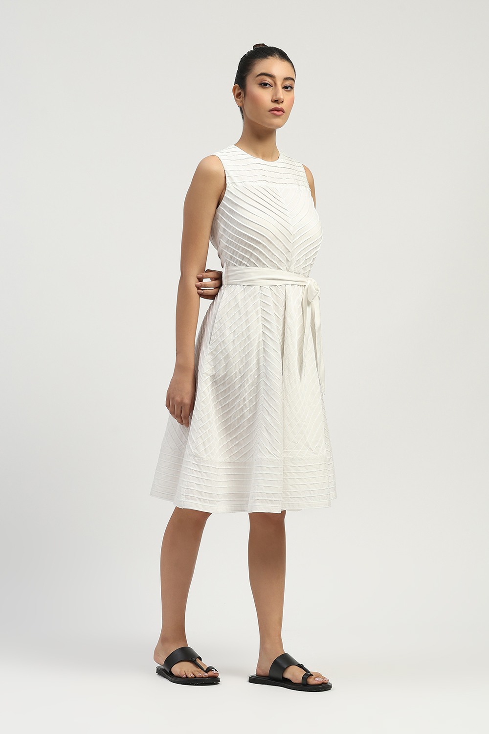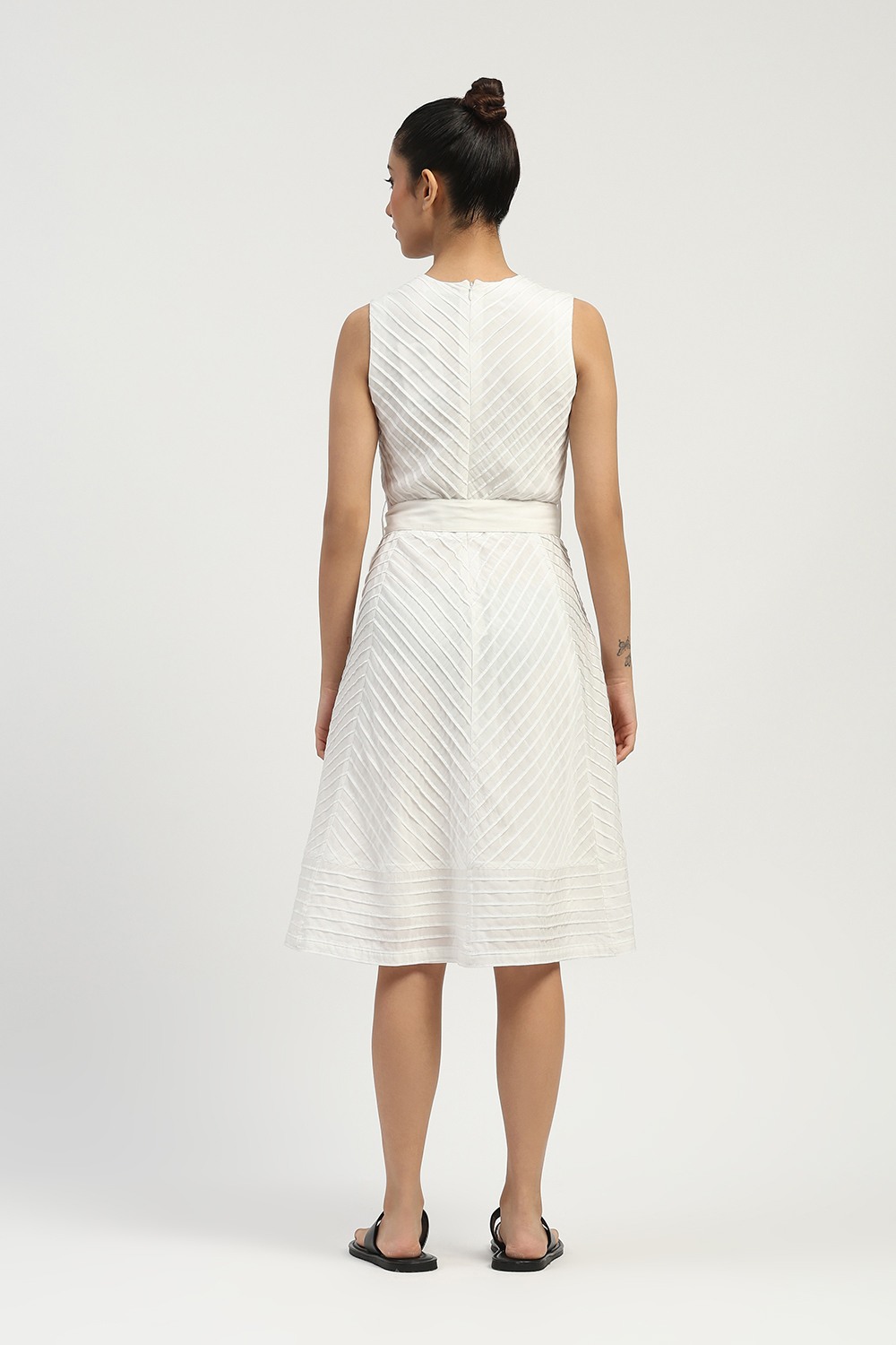 Technique Description : Pintuck is a fabric detailing technique where small, narrow folds are stitched on the fabric to create a raised line. These tucks are usually made in a row and give a textured, structured look to the fabric.