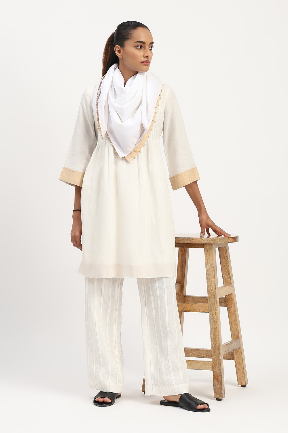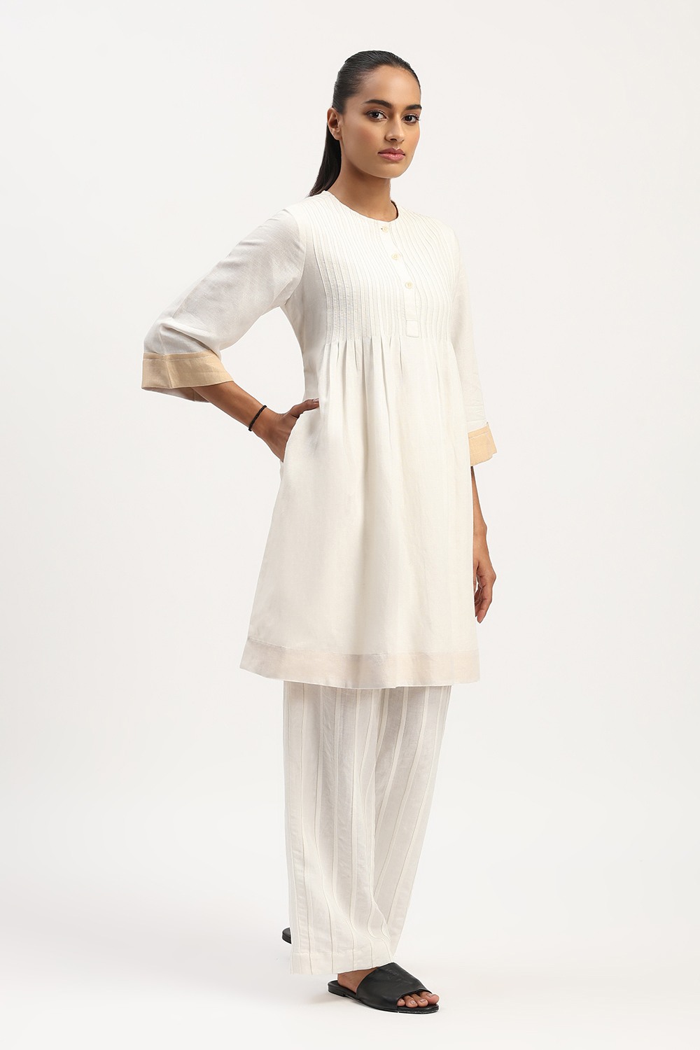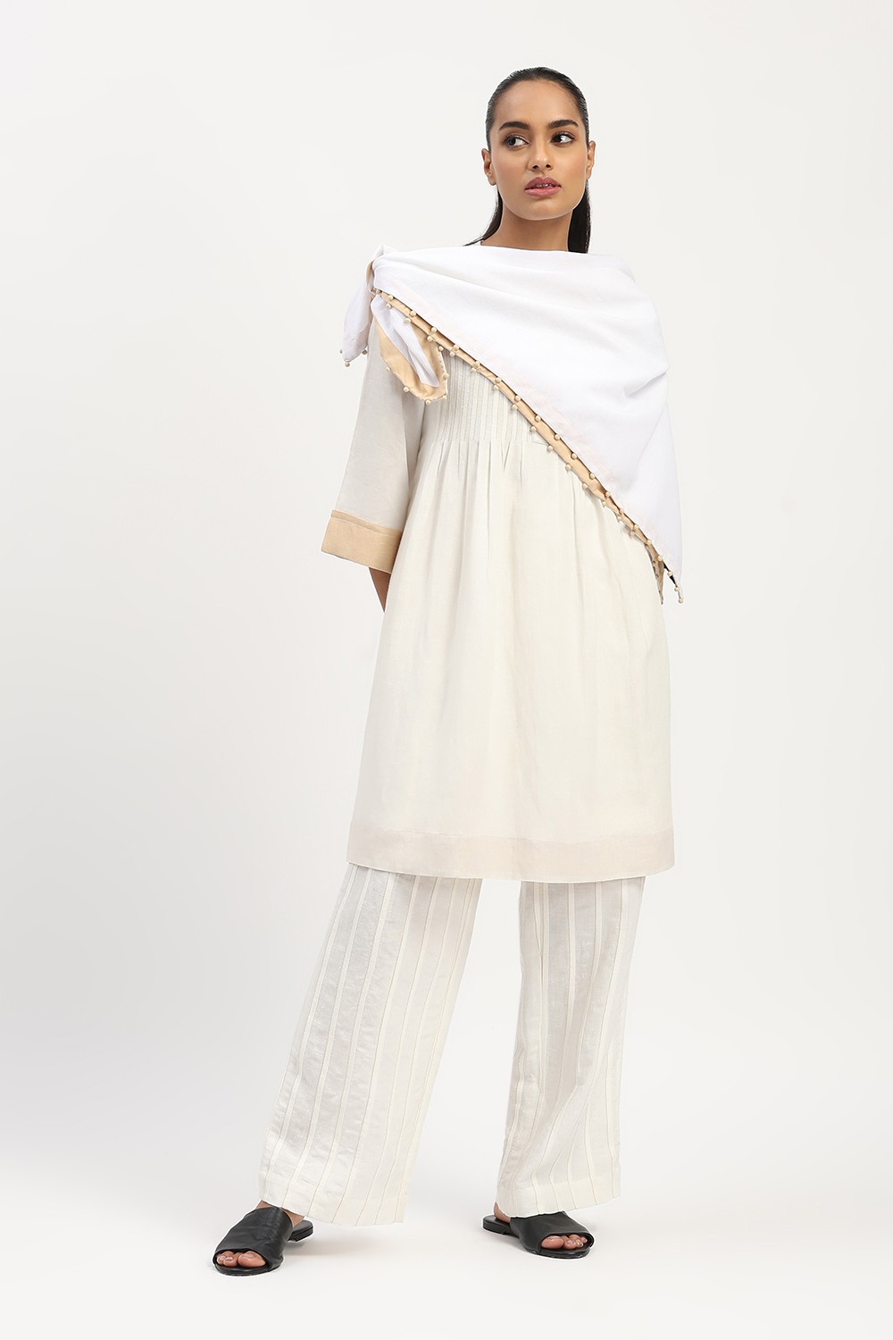 Home / Products / Dresses / ABRAHAM AND THAKORE / Pleated Linen Dress Ivory
