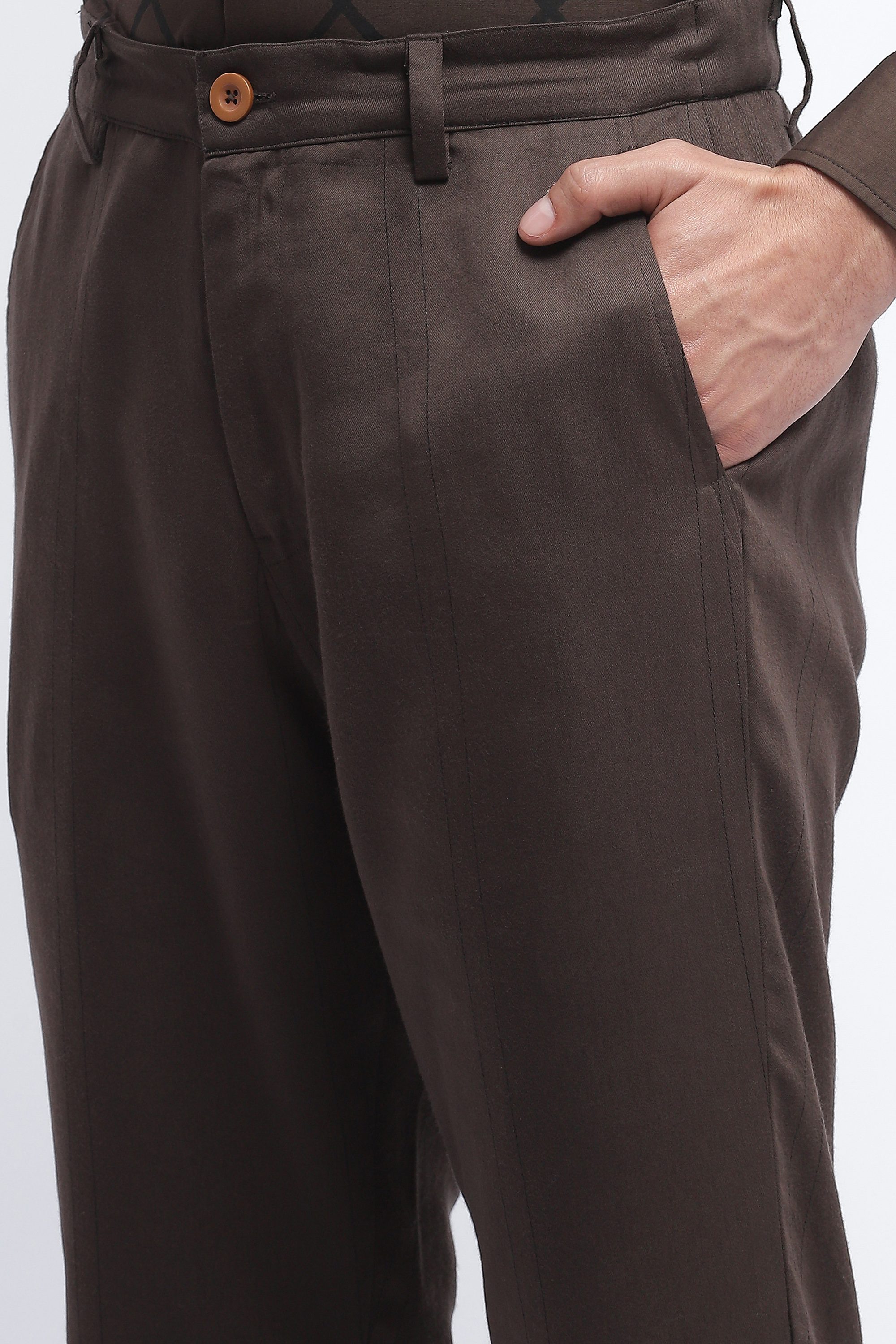 Best paired with their co-ord companions, these chocolate trousers are crafted in durable twill. Soft cotton x tencel fabric is pleated into stripes here and locked in place with a stitch.