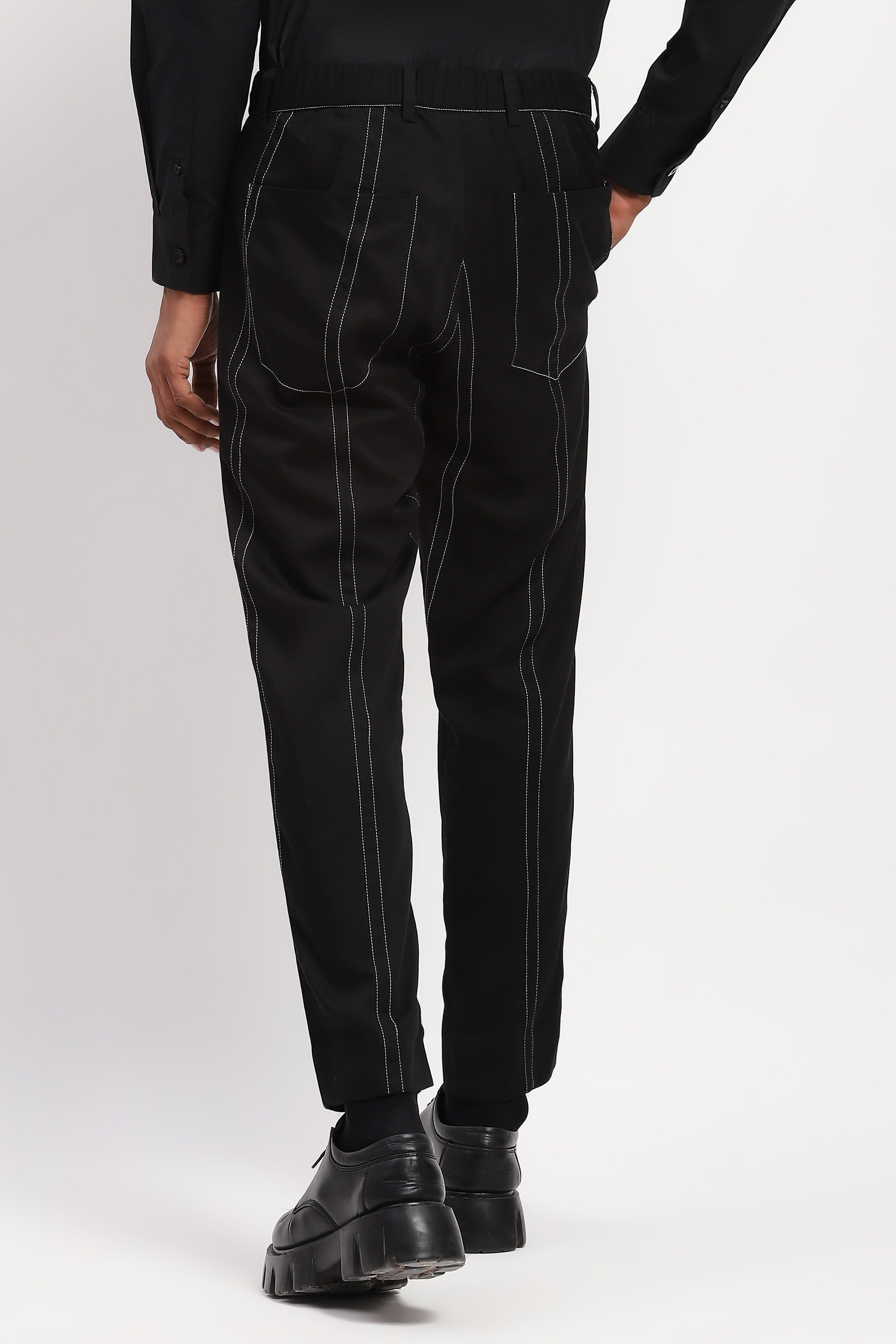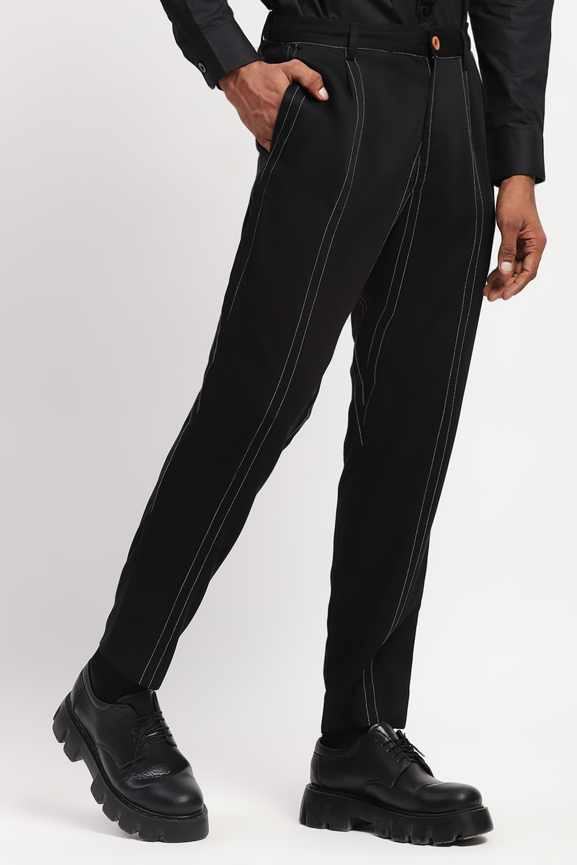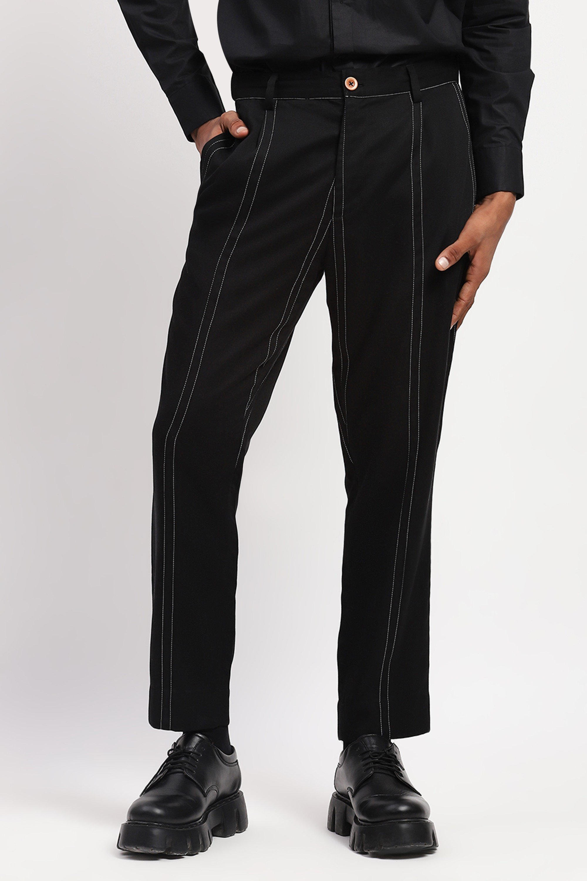 Best paired with their co-ord companions, these black trousers are crafted in durable twill. Soft cotton x tencel fabric is pleated into stripes here and locked in place with a stitch.