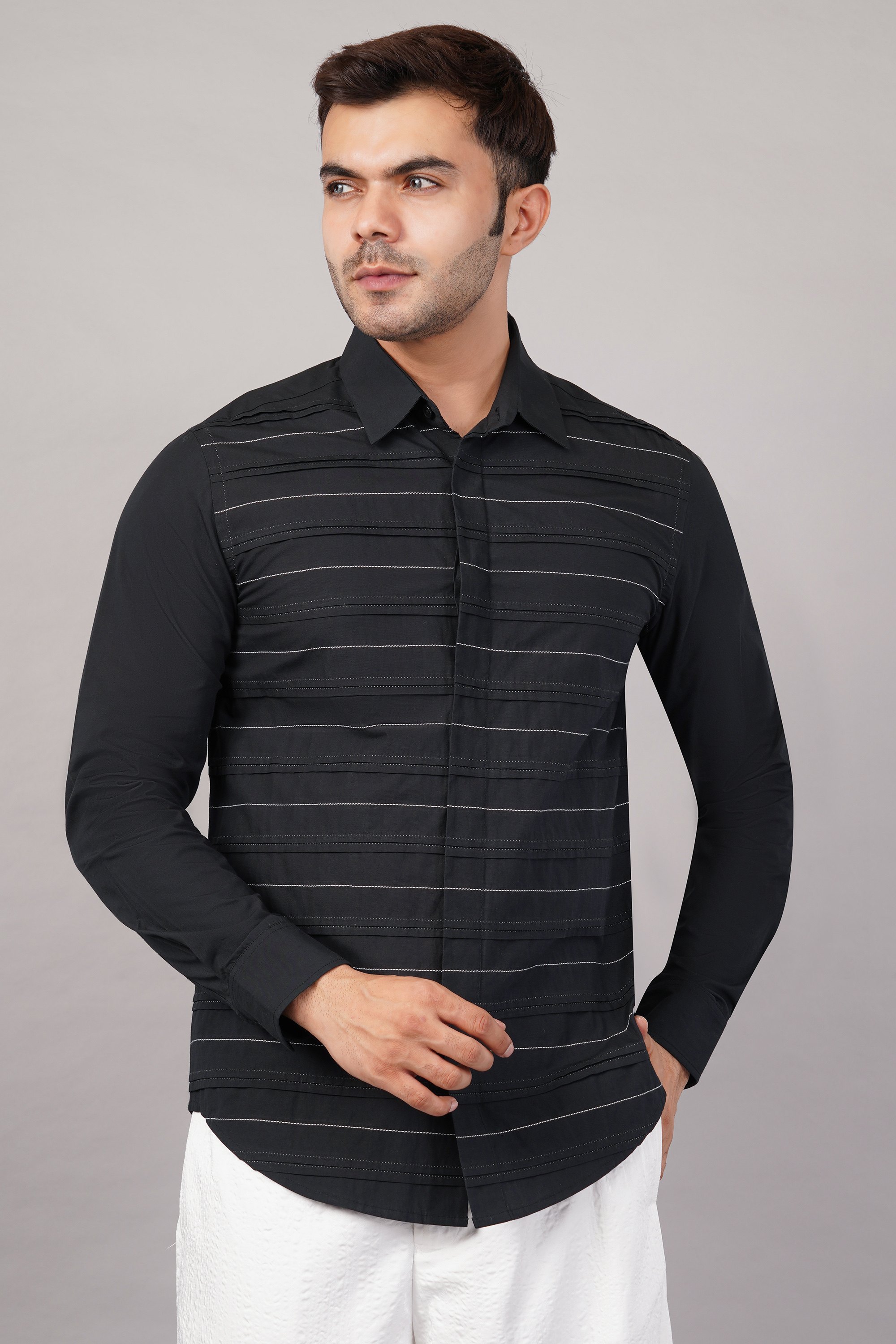 Pleated Stripes Shirt