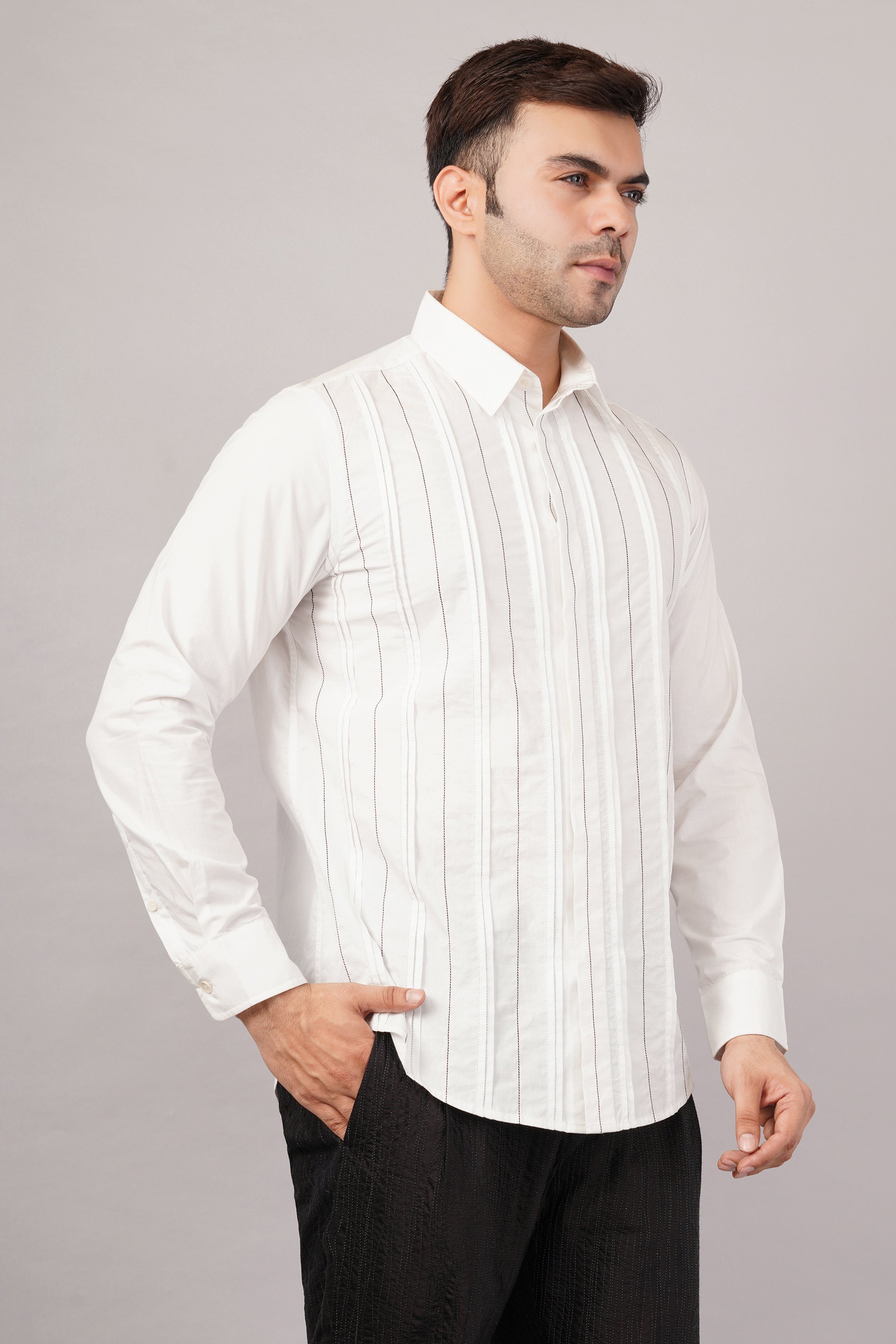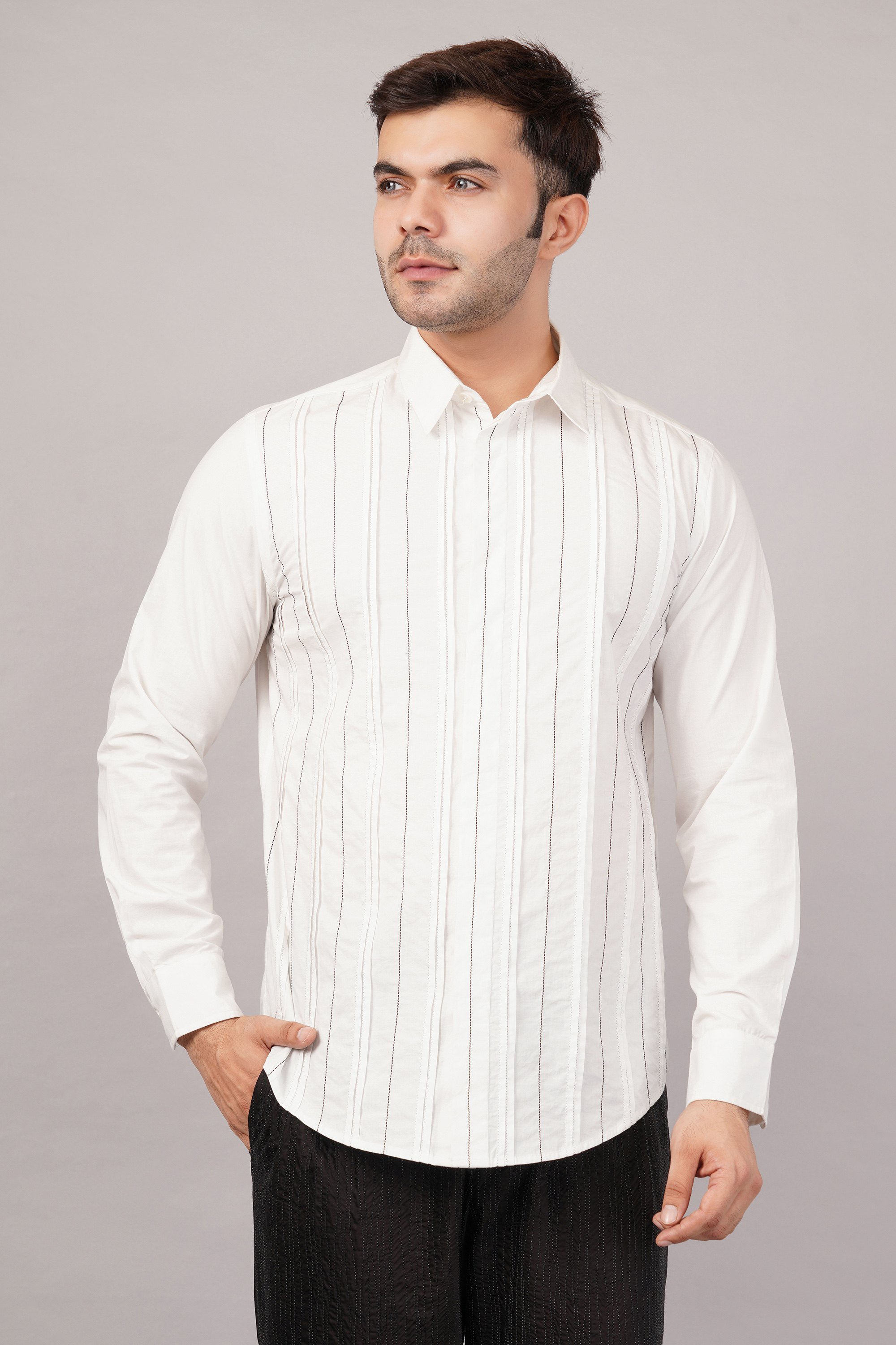 Pleated Stripes Shirt