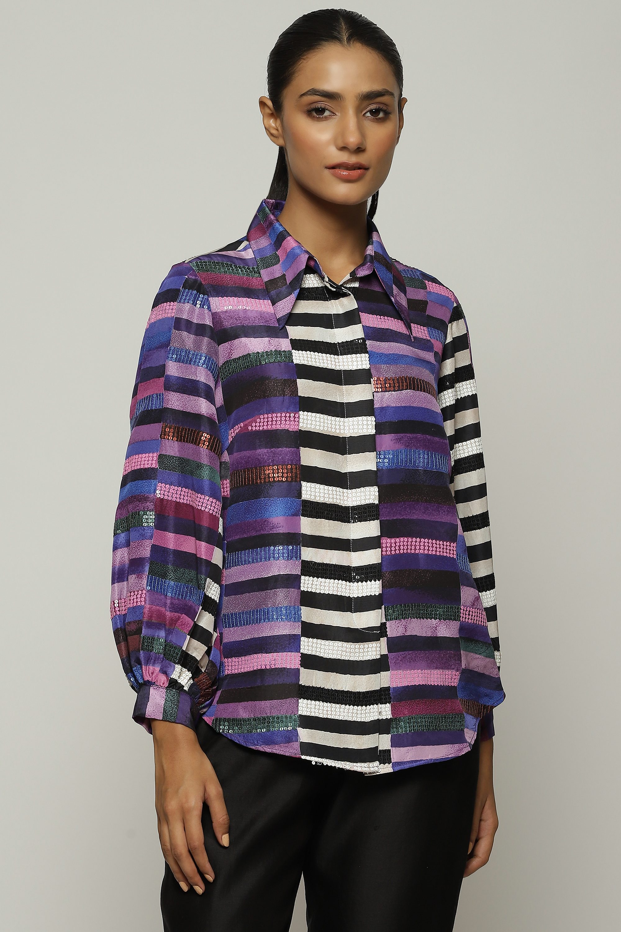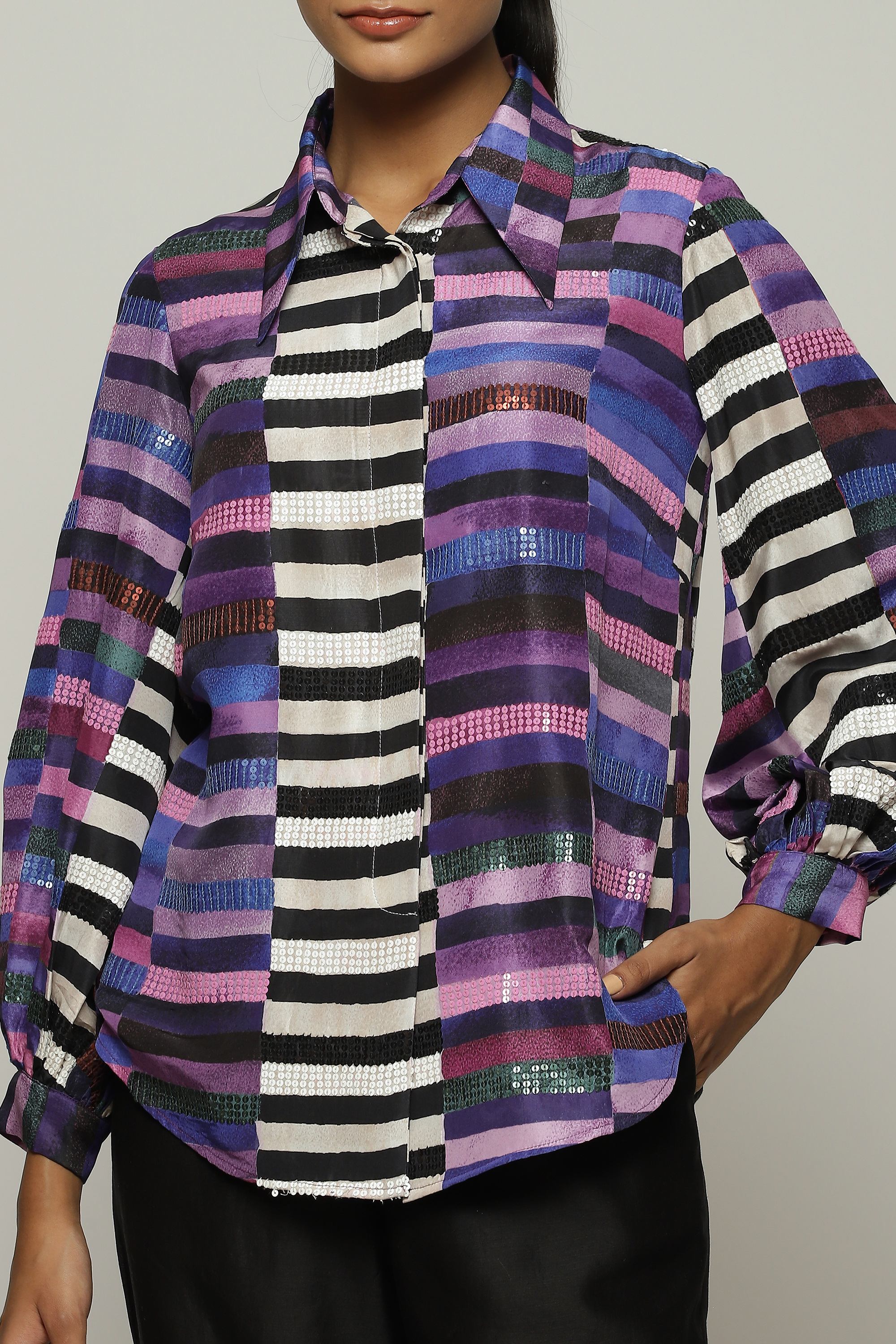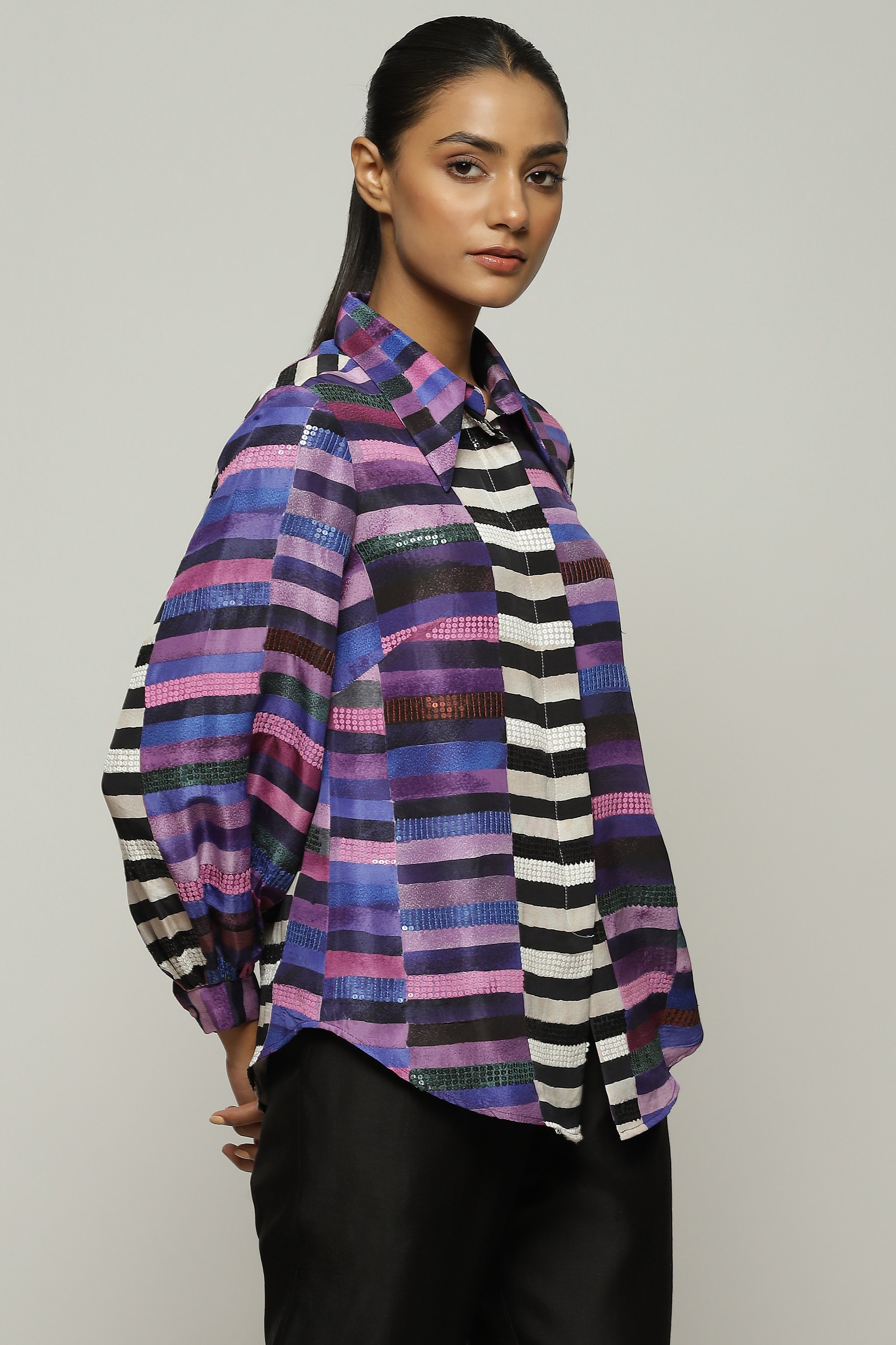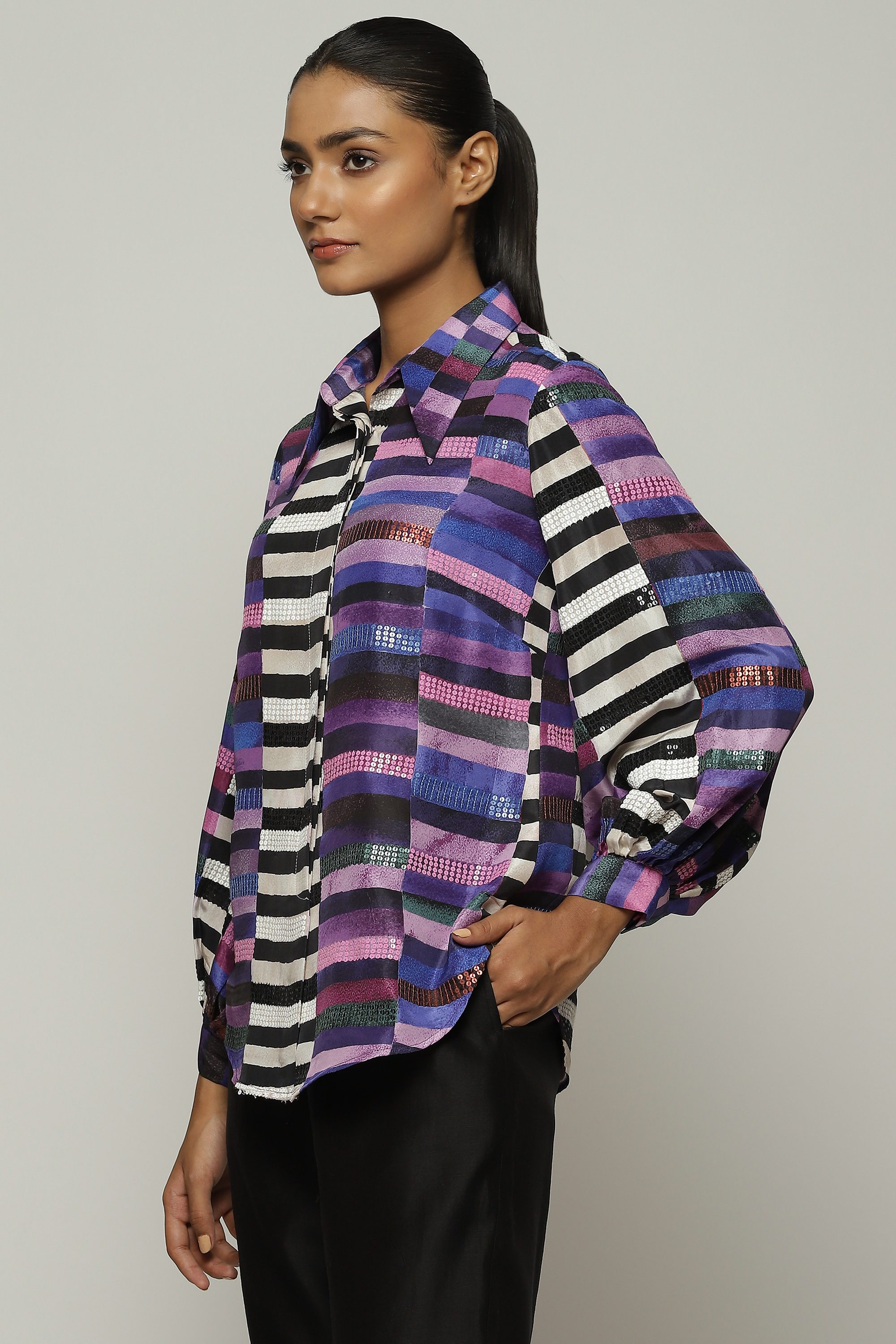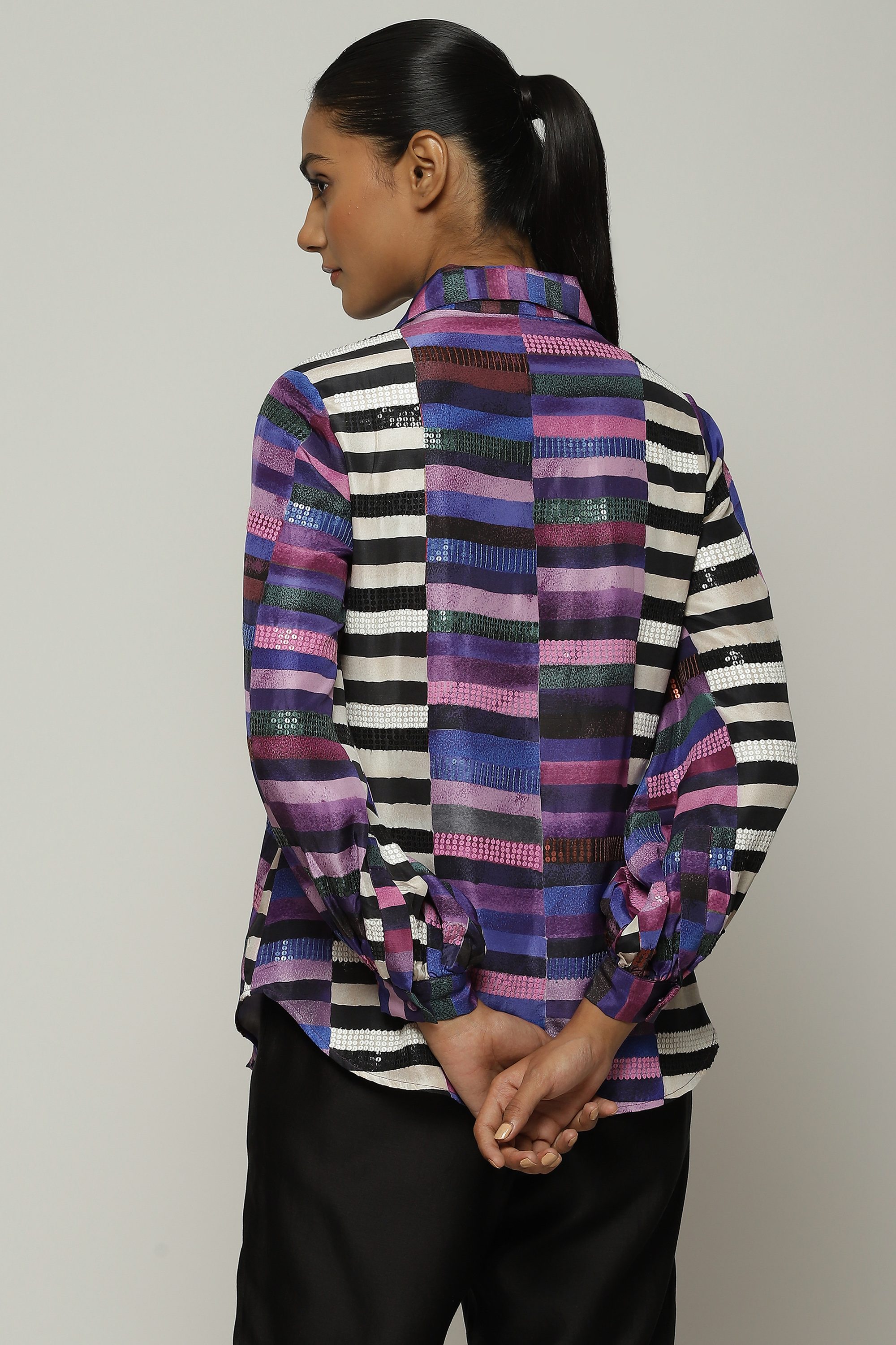 PRINT & SEQUINS BLOCKS BLUE SHIRT
