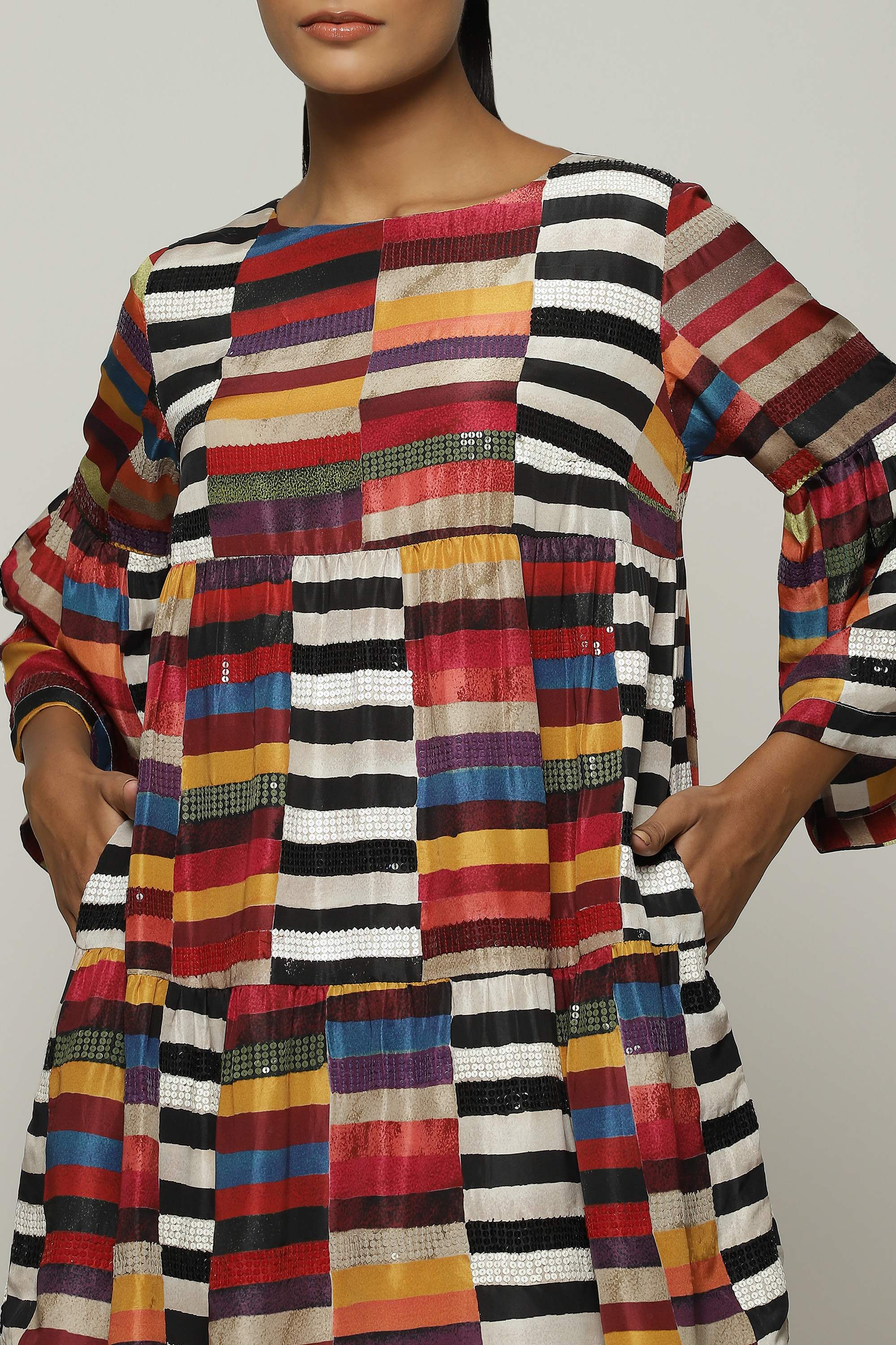 Embellishment Description : The garment has been hand embellished with sequins and beads using an aari needle on a frame.