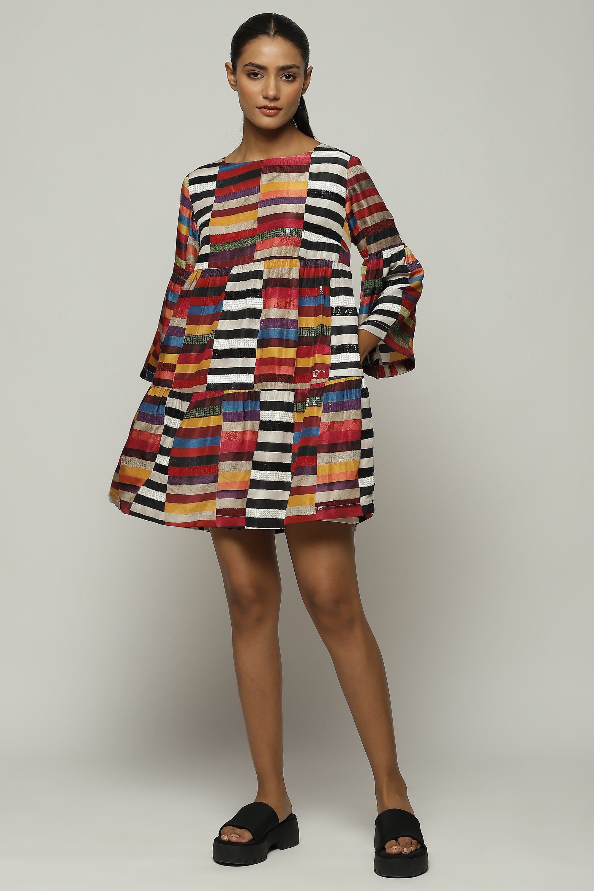 A black dress adorned with sequins.