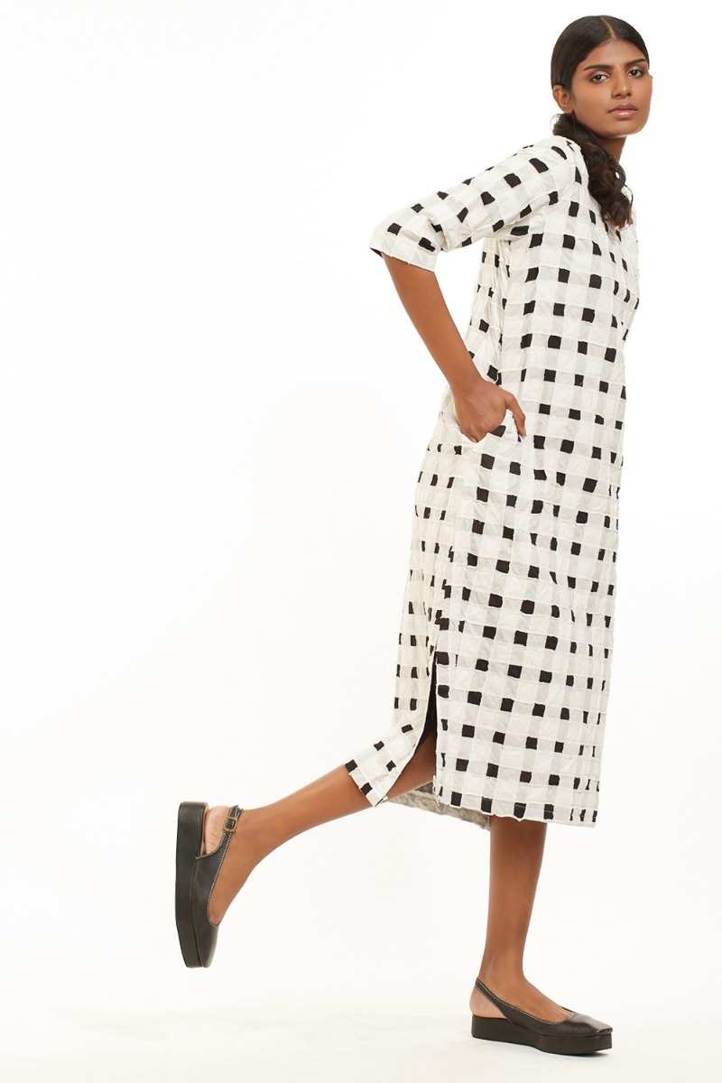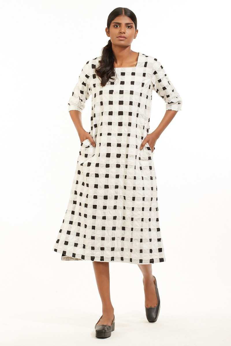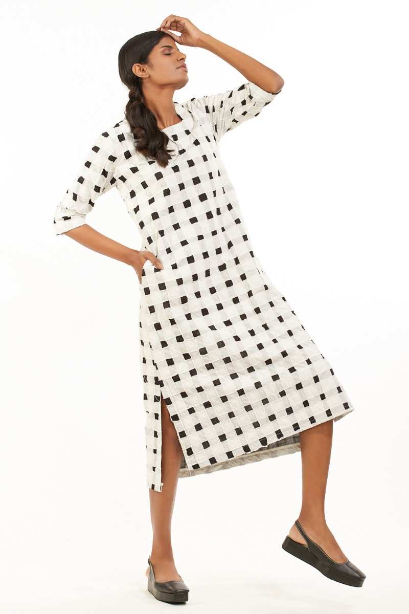 Quilted Check Long Dress. Cut From Sustainable Viscose.