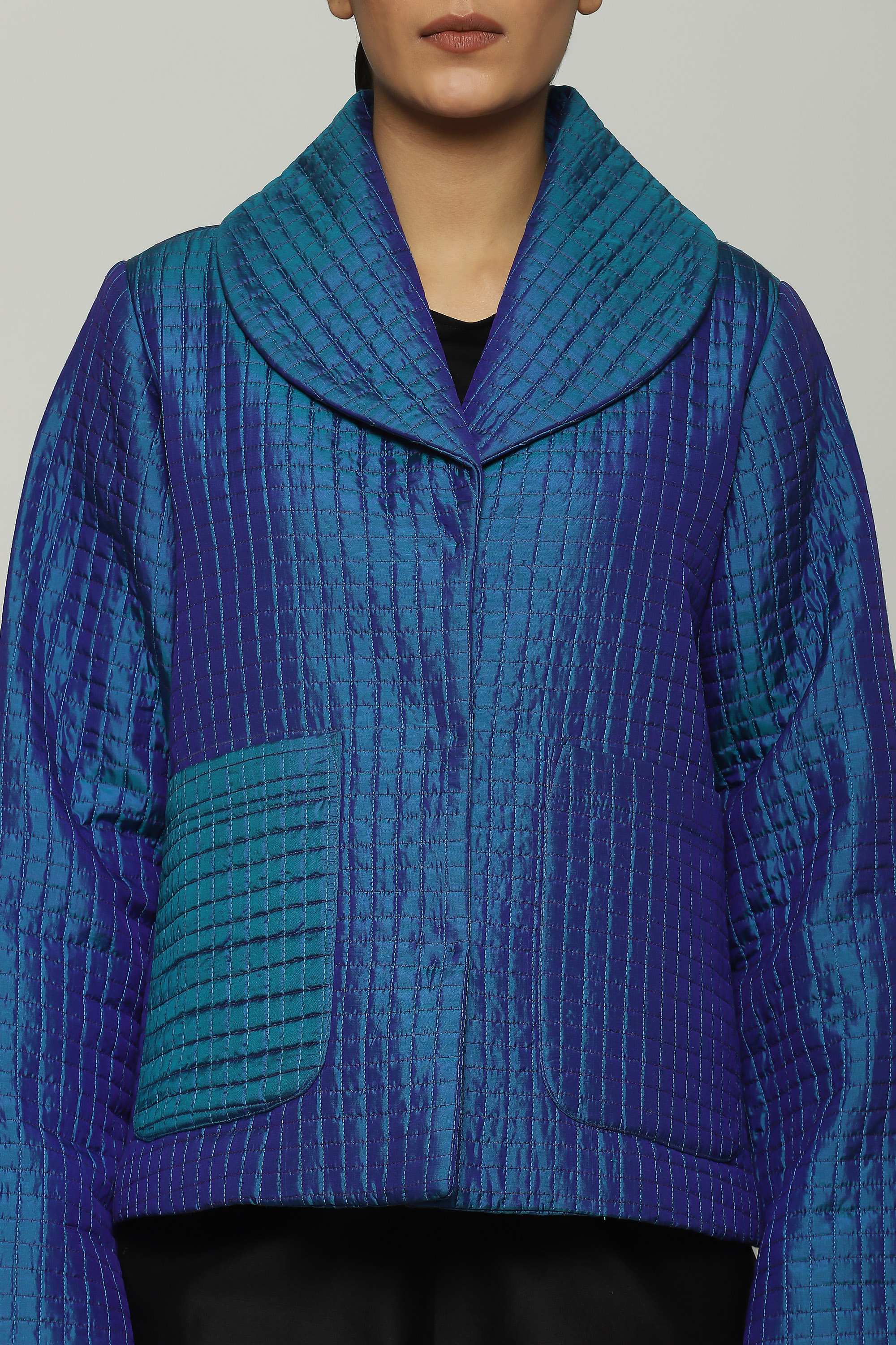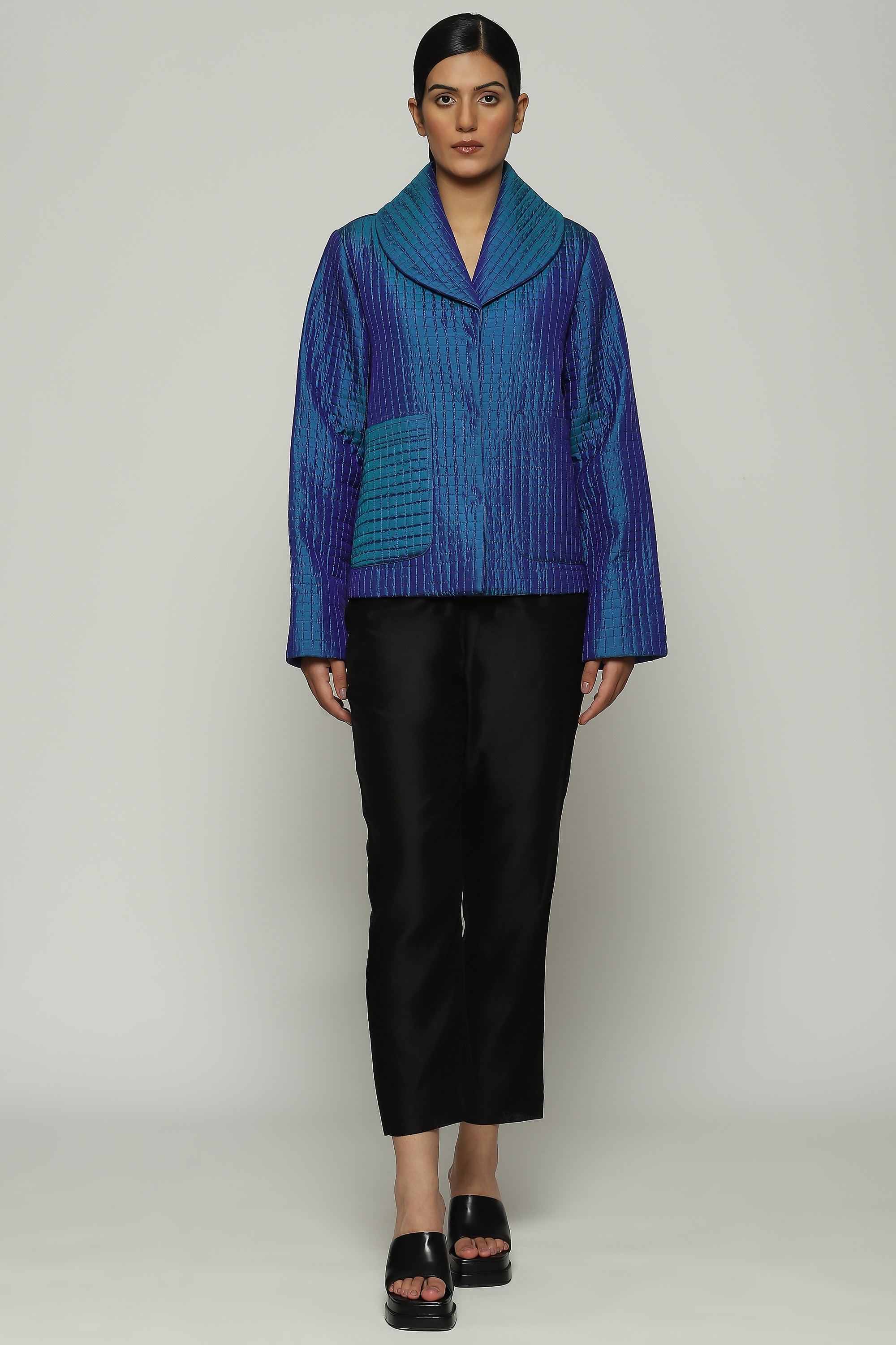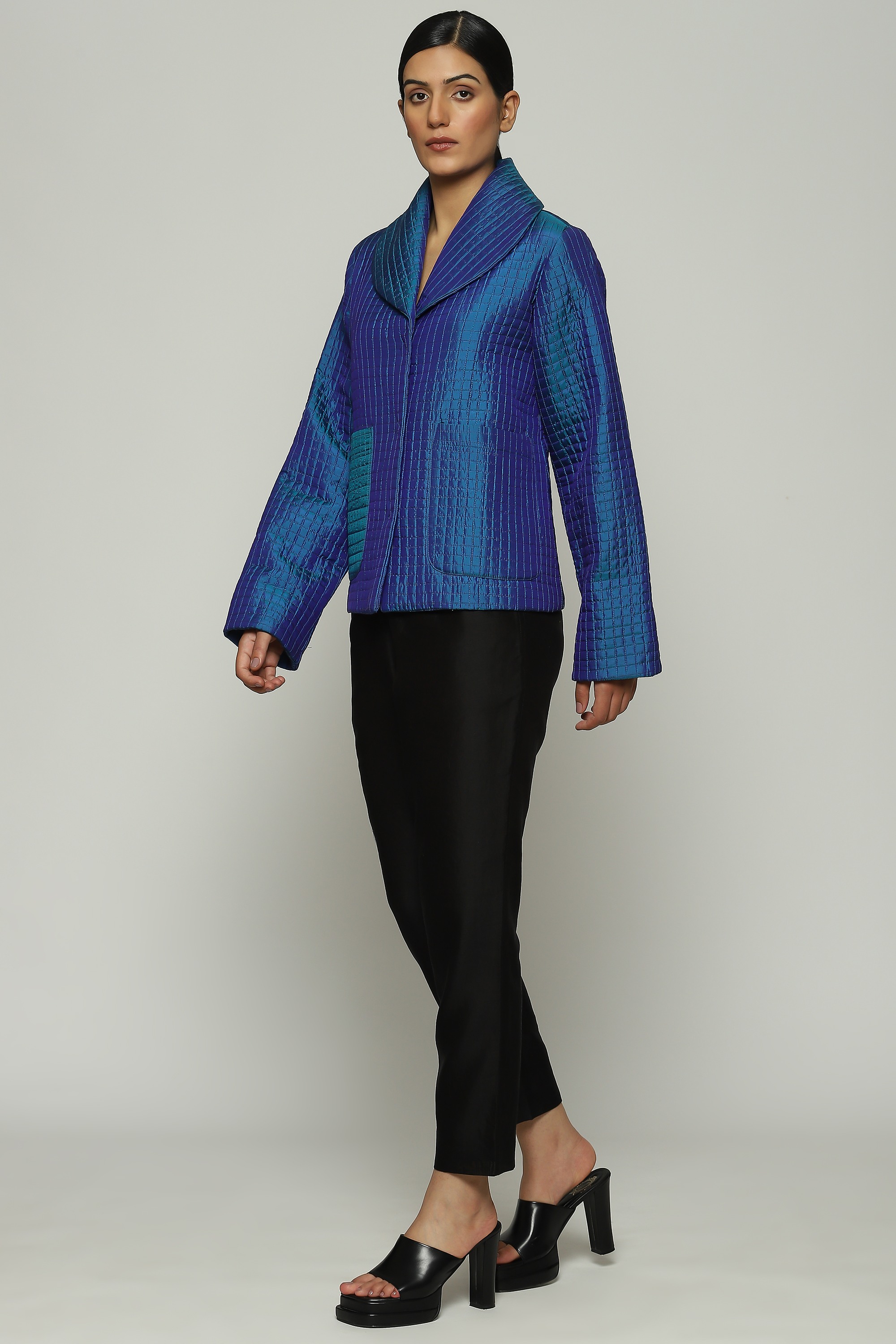 Warm and comfy, this piece is quilted from handwoven shot silk, lightweight viscose and a layer of wadding using the Italian Trapunto technique.