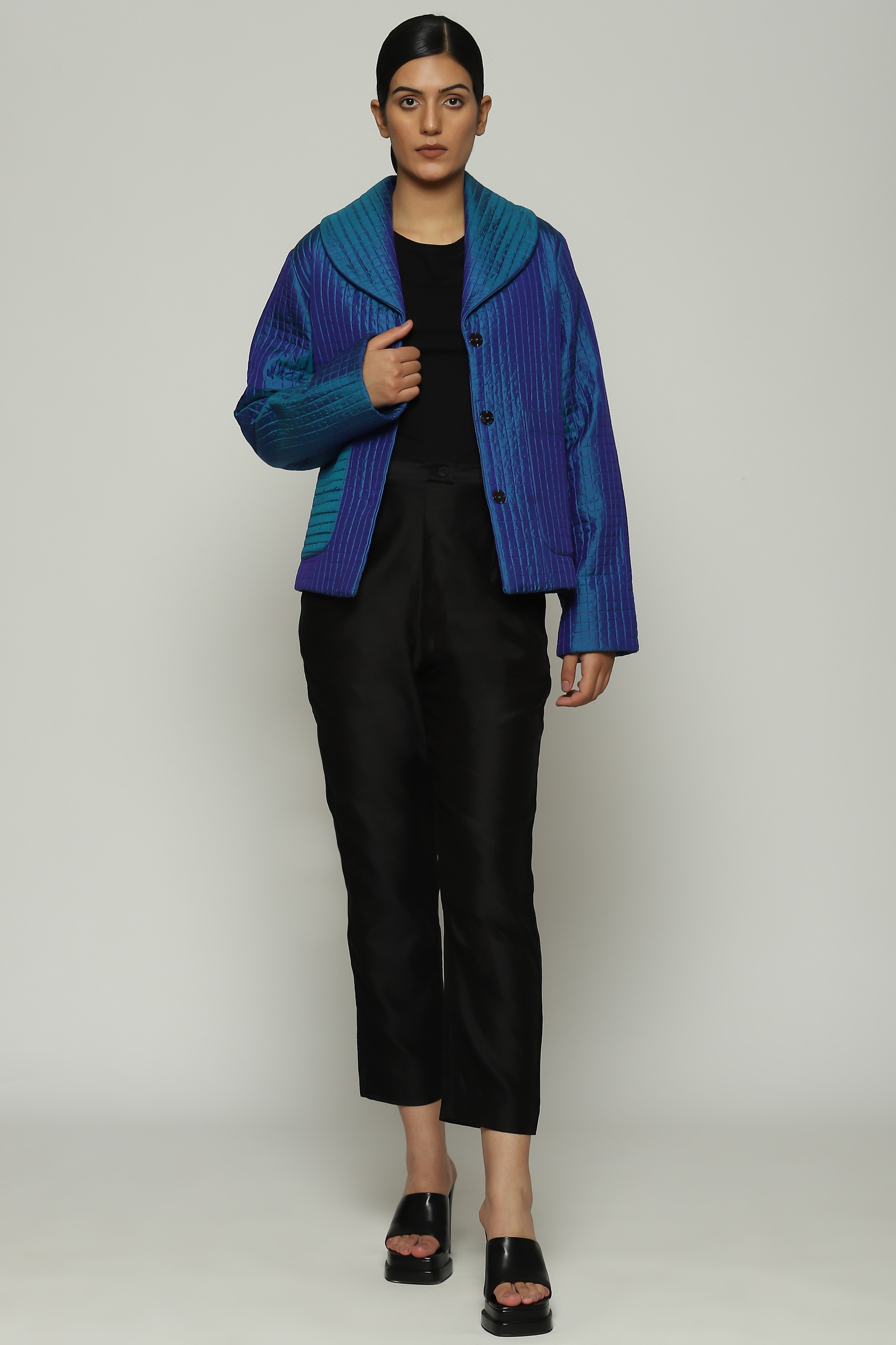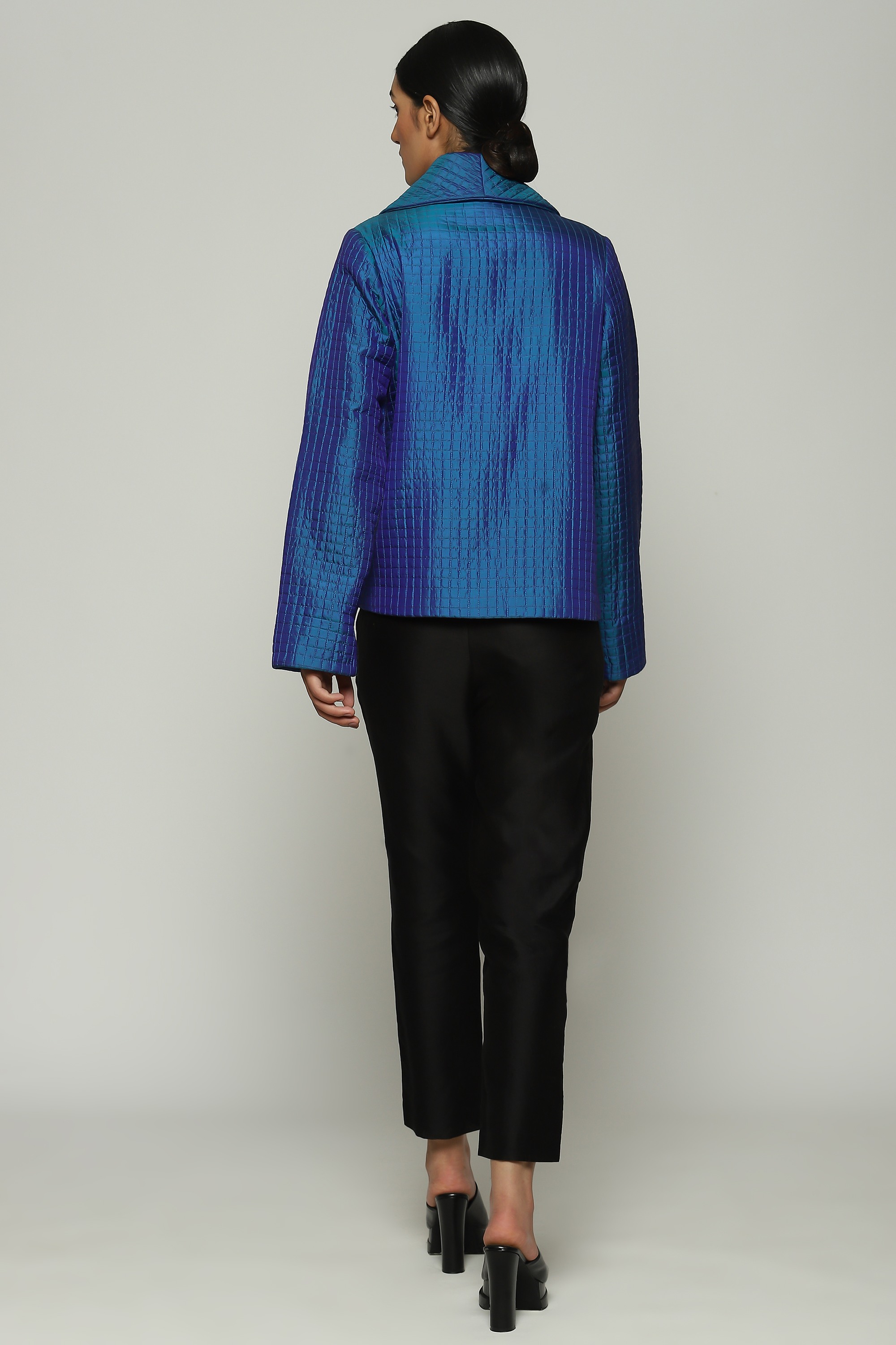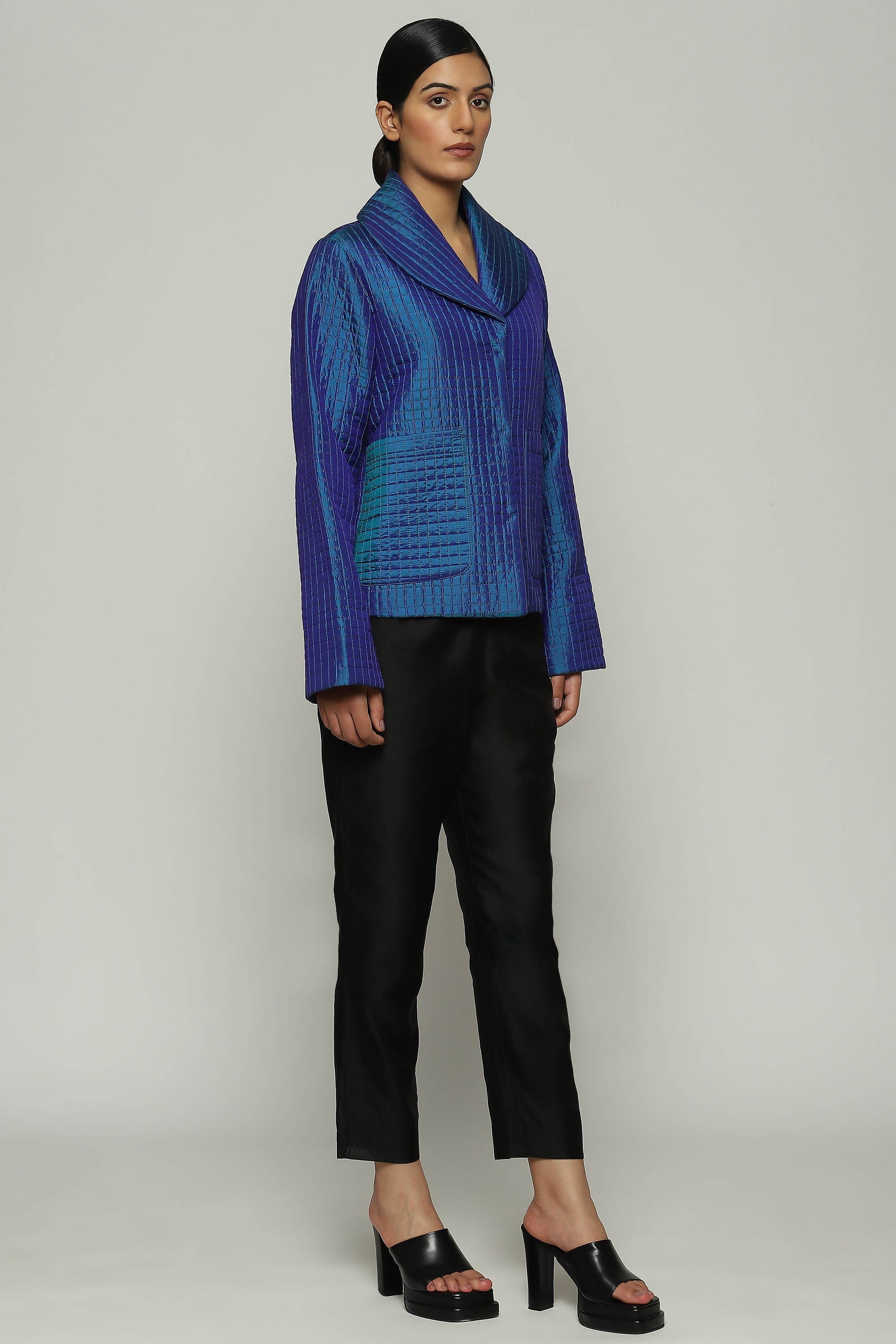 Warm and comfy, this piece is quilted from handwoven shot silk, lightweight viscose and a layer of wadding using the Italian Trapunto technique.
