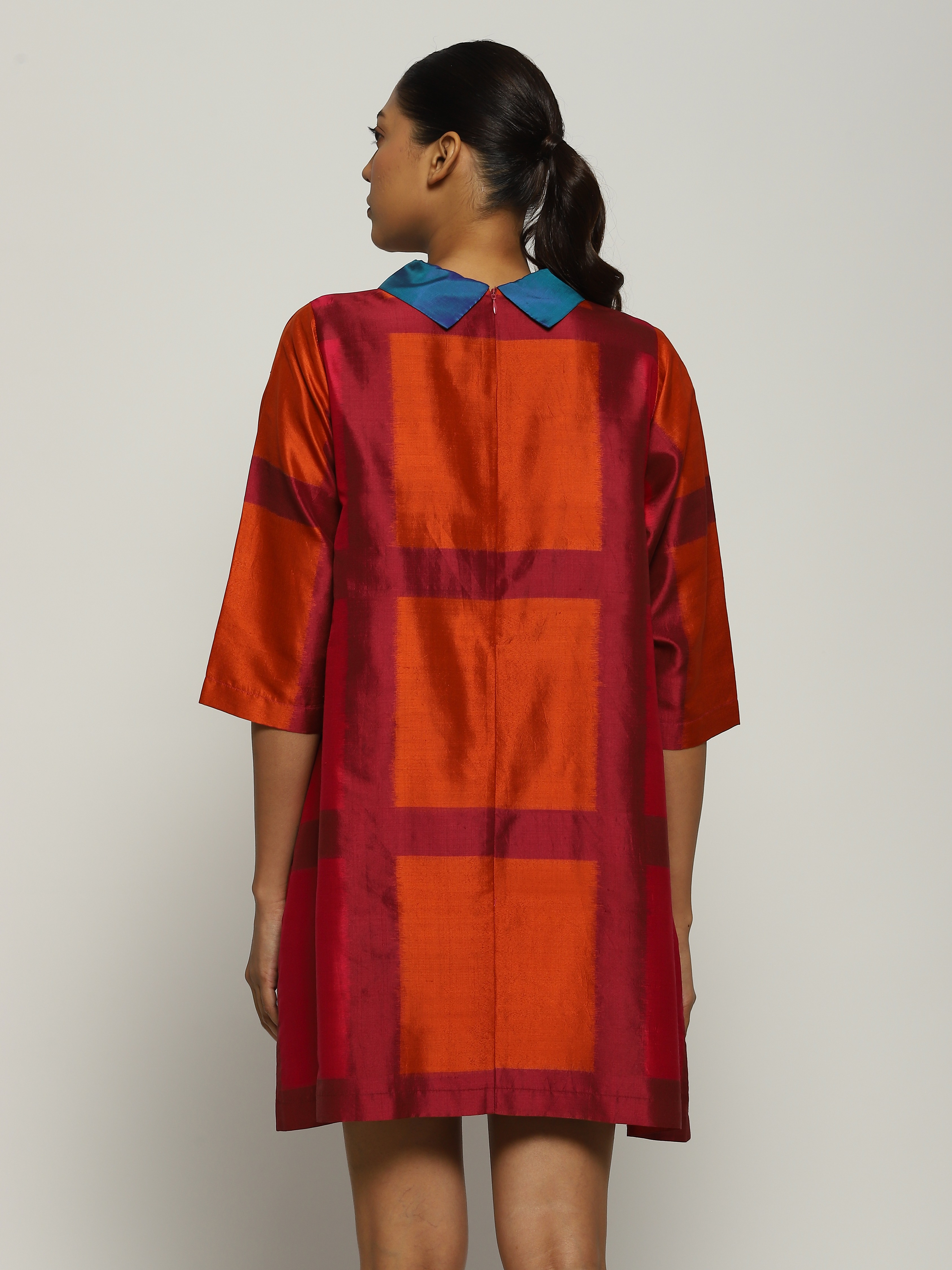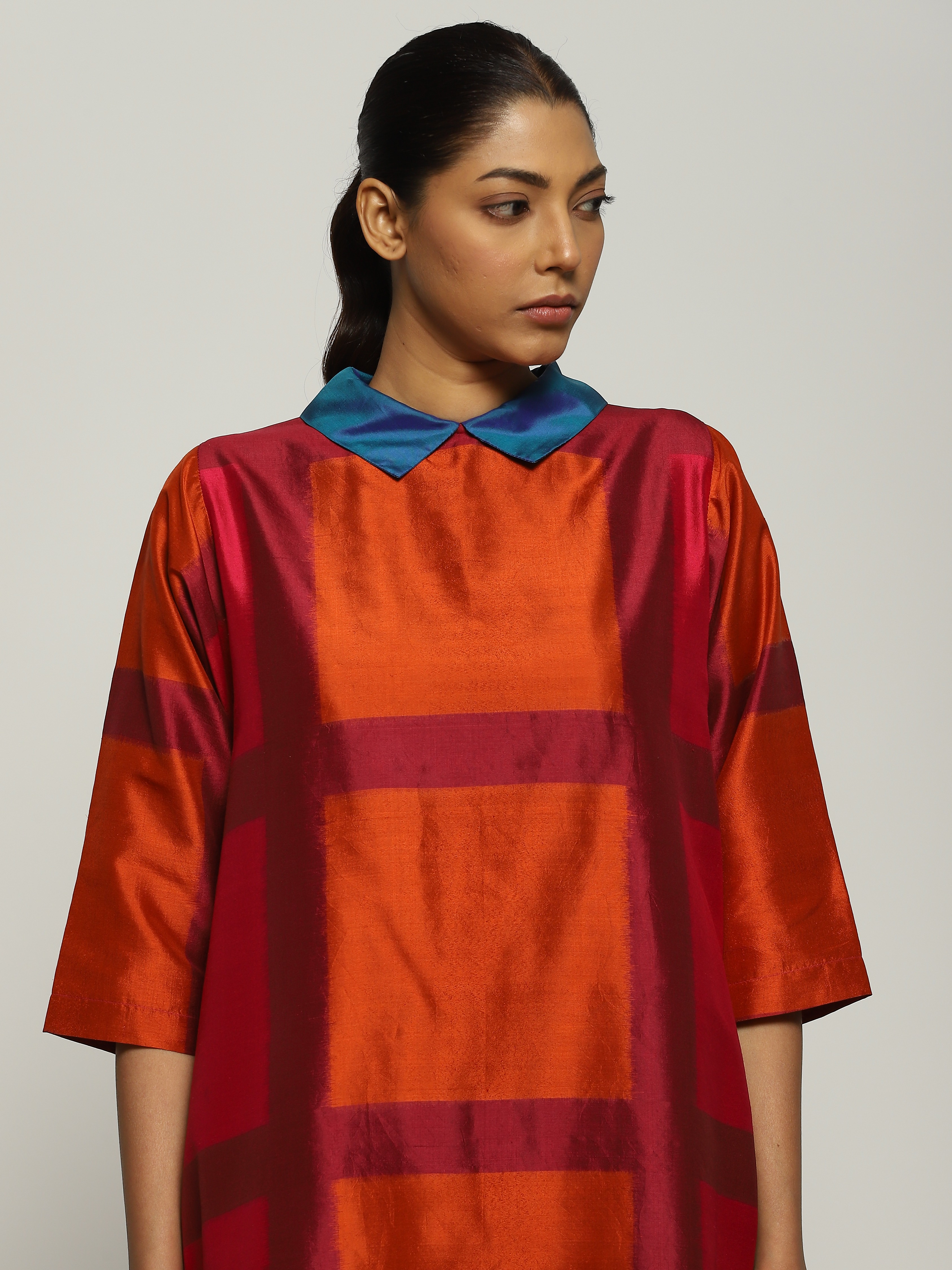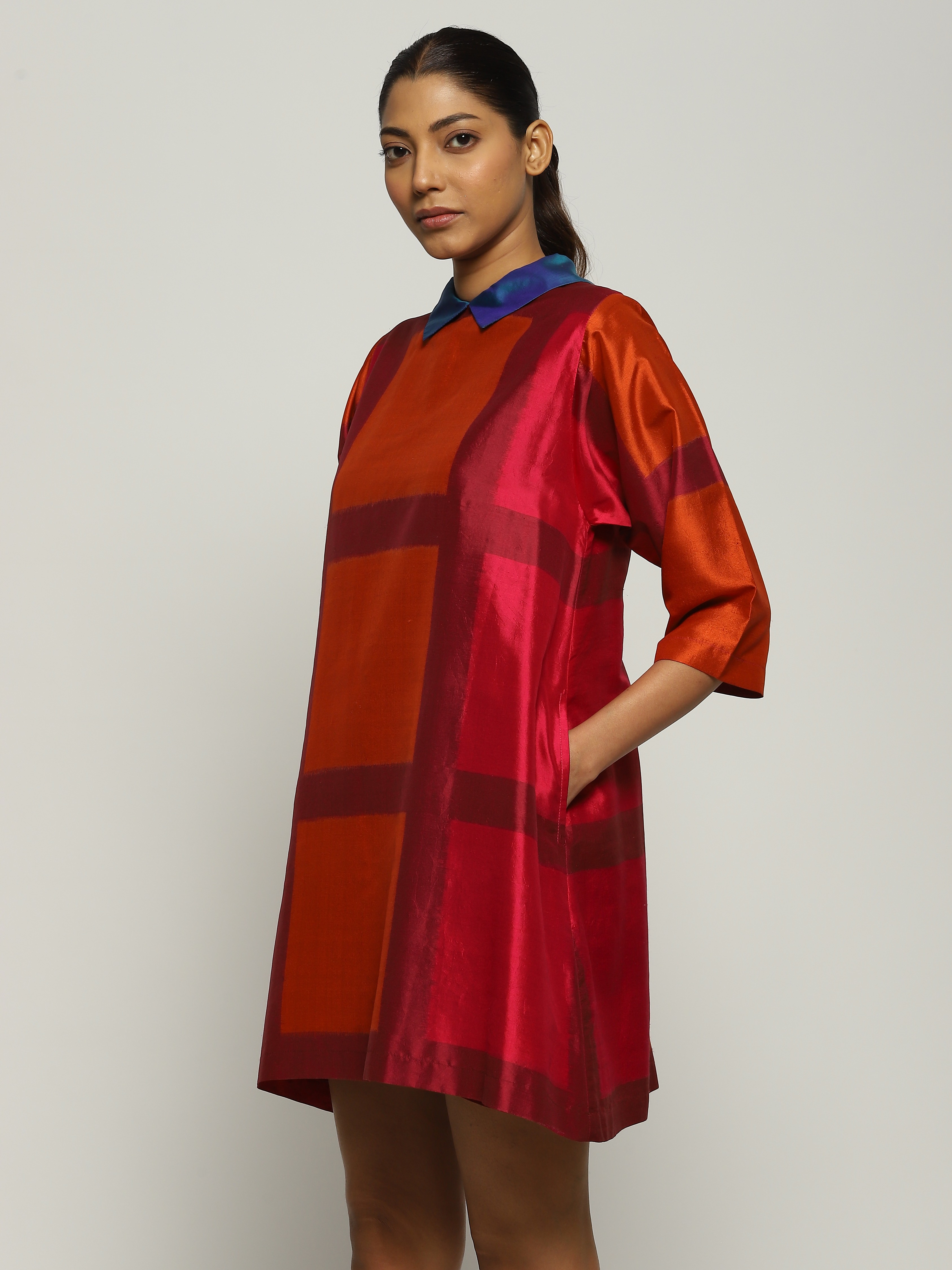 Crafted in luxurious silk, this piece features an intricate form of ikat where both weft and warp of the weave are tie-dyed with distinct patterns.