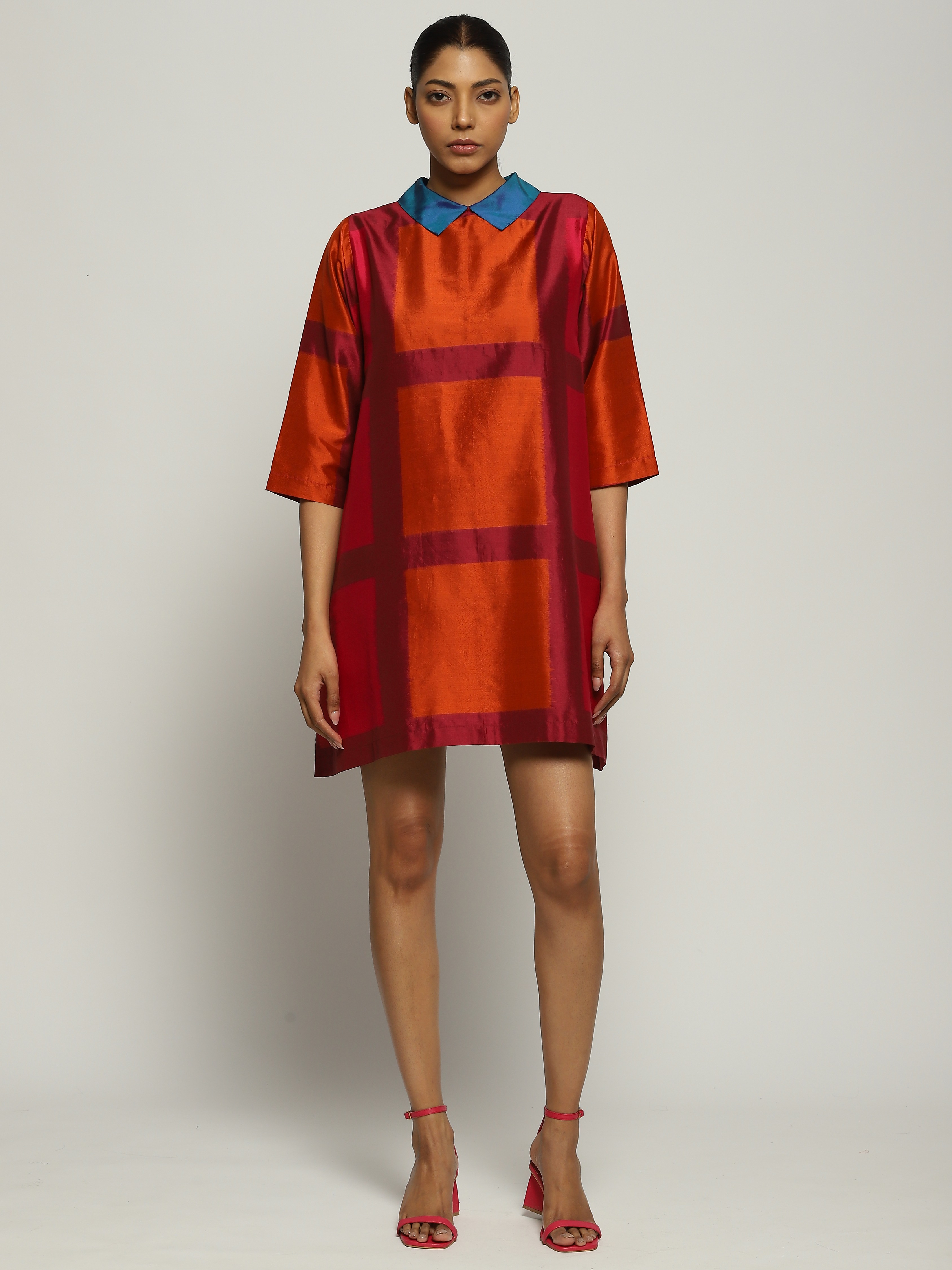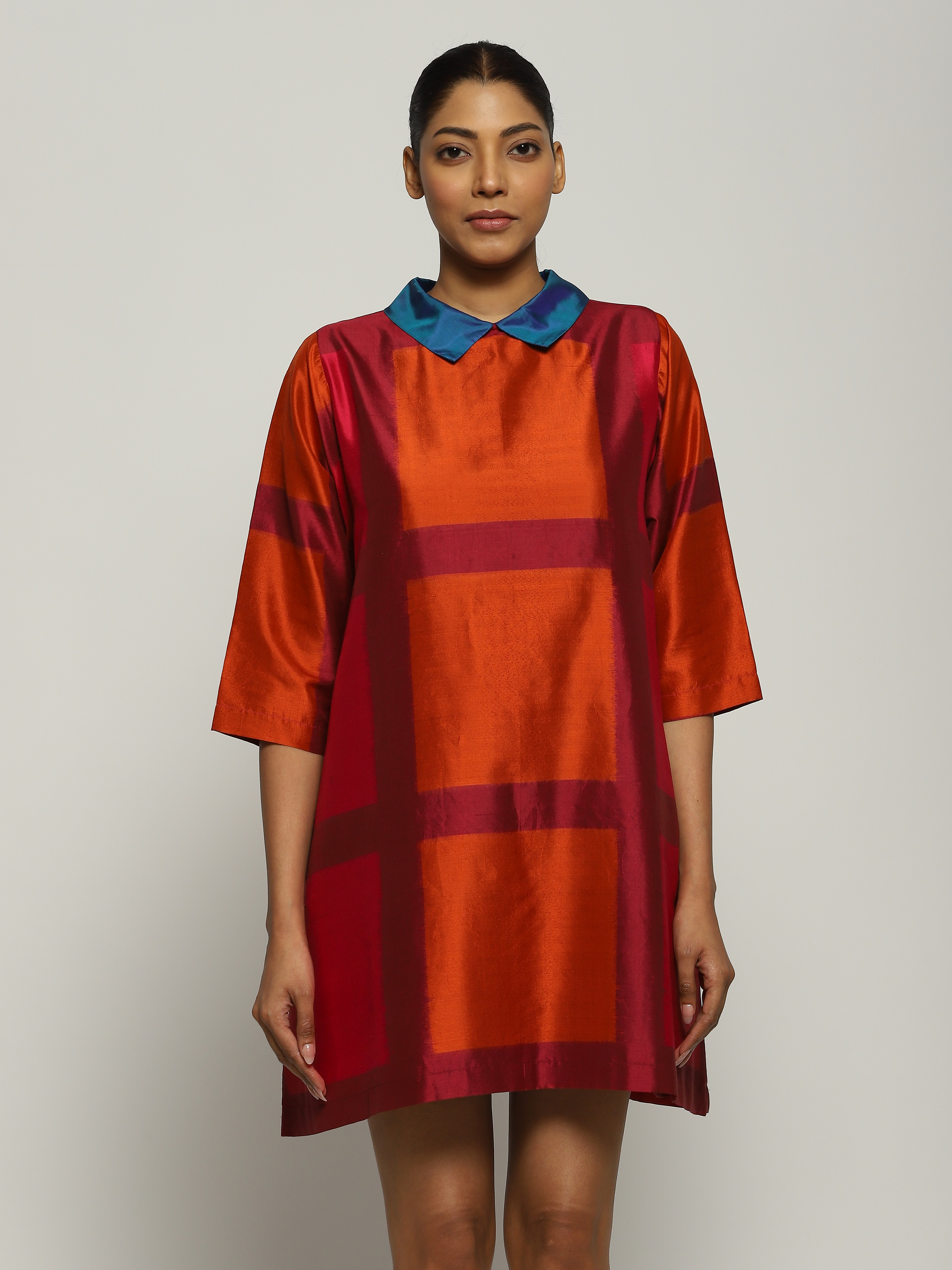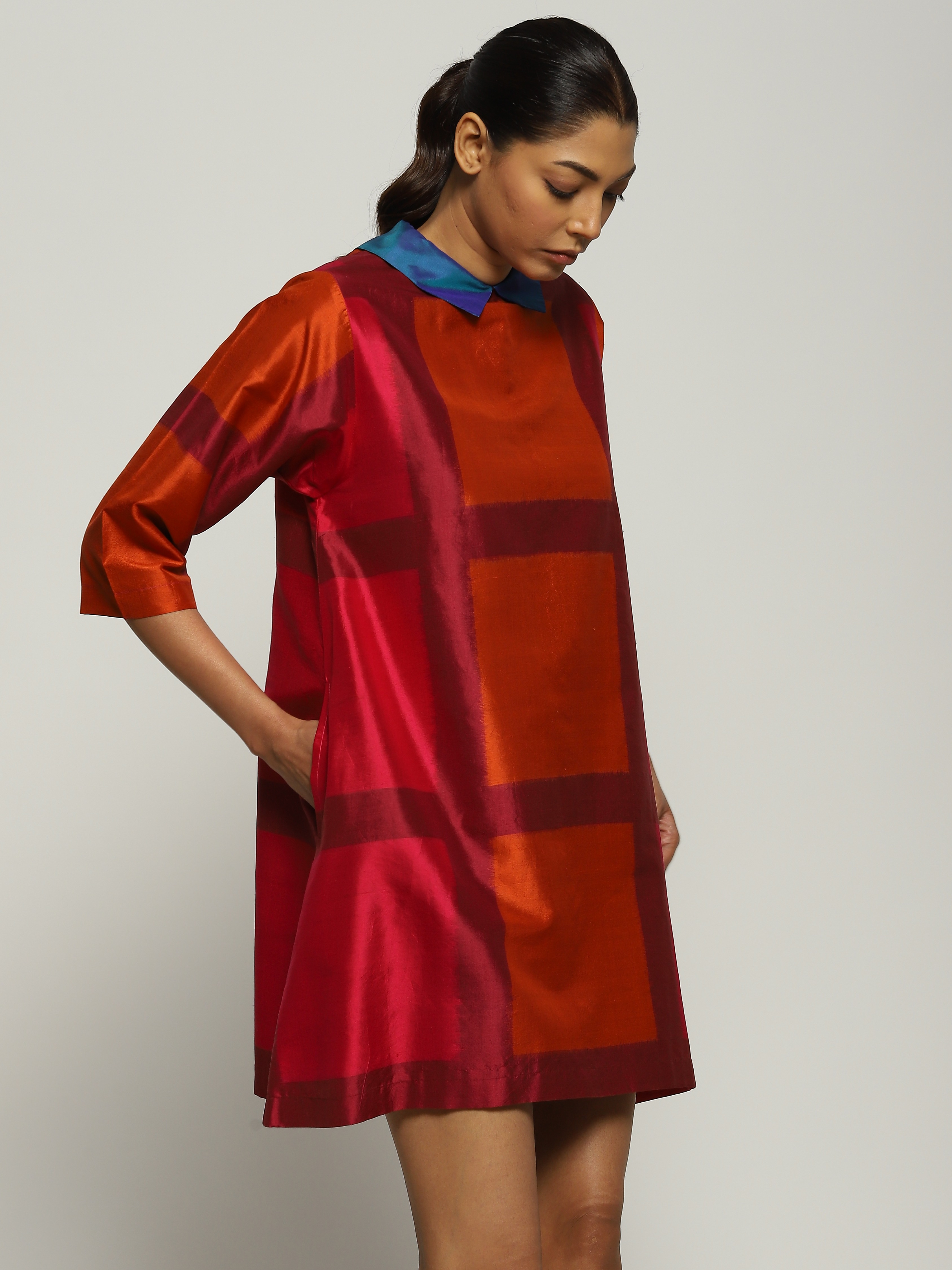 Crafted in luxurious silk, this piece features an intricate form of ikat where both weft and warp of the weave are tie-dyed with distinct patterns.