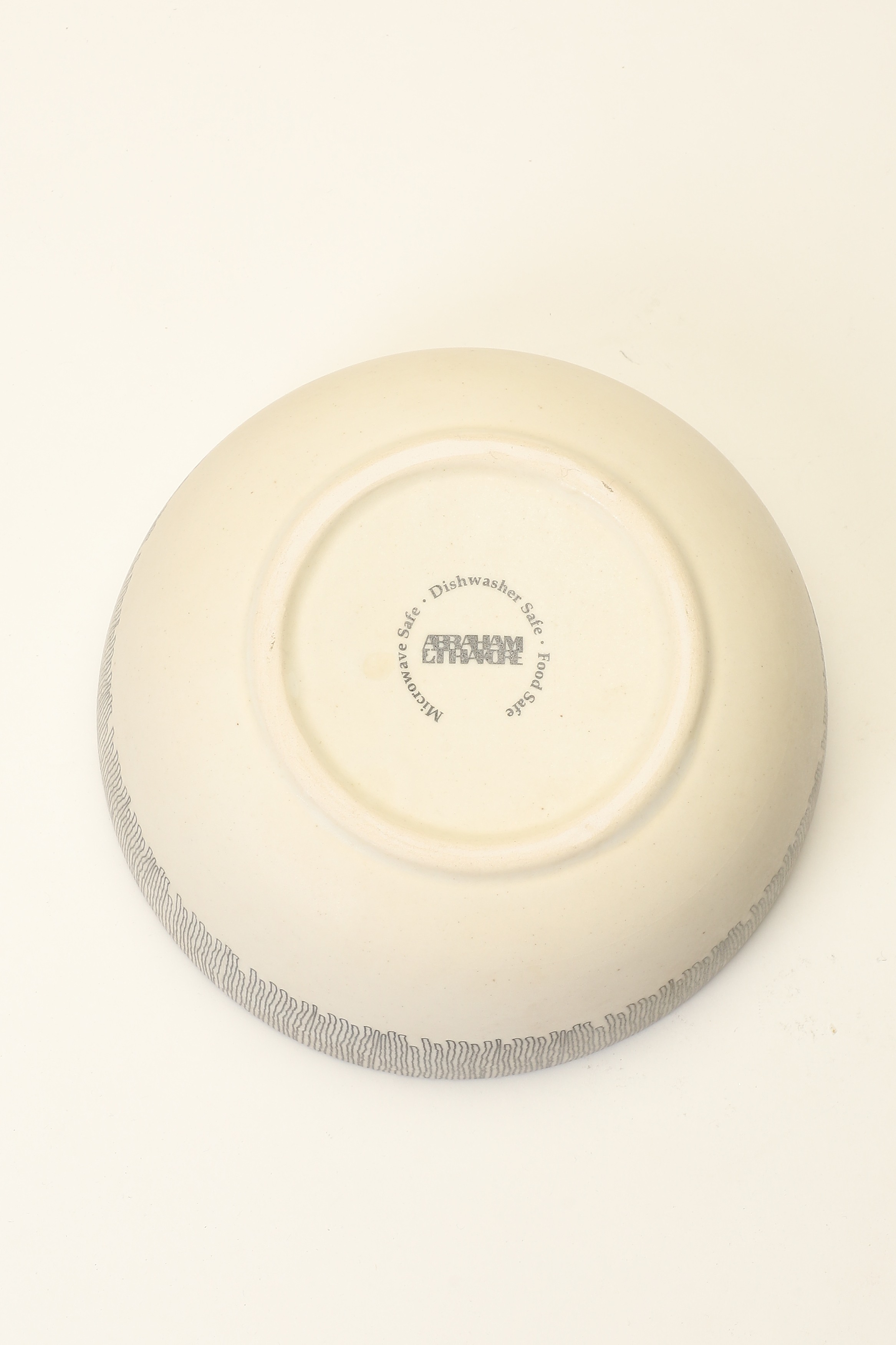 Abraham & Thakore’s foray into ceramics is an extension of the brand vision of using handcrafted product and inspired from patterns motifs in their collections. The raw material used for decoration is based on European standards and qualify Food Safe, Lead & Cadmium Free, Dishwasher Resistant, Microwave Safe tests from accredited labs. Inspired from fine scribble hand embroidery, the effect has been translated into stoneware and designed around the shape of this individual piece.