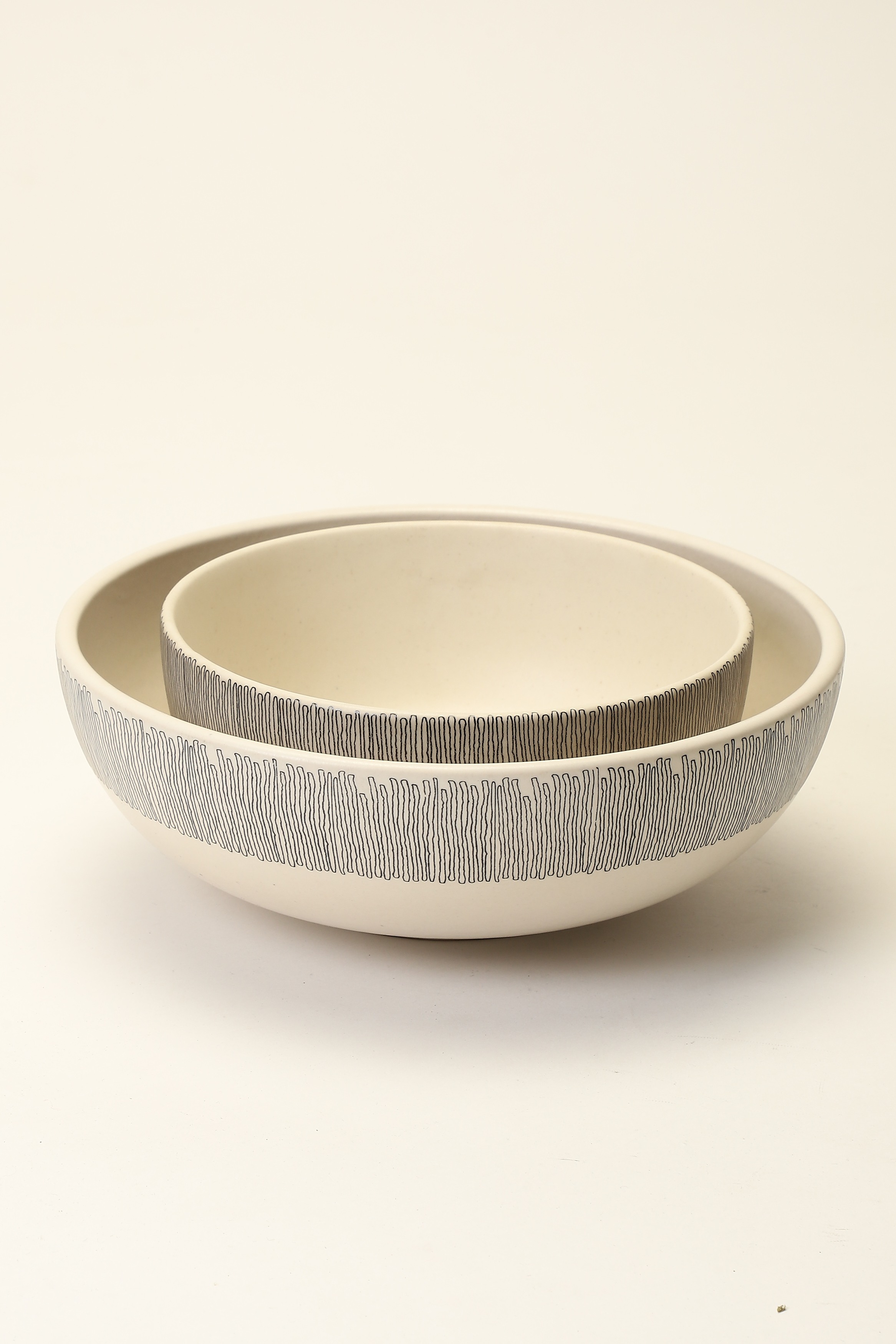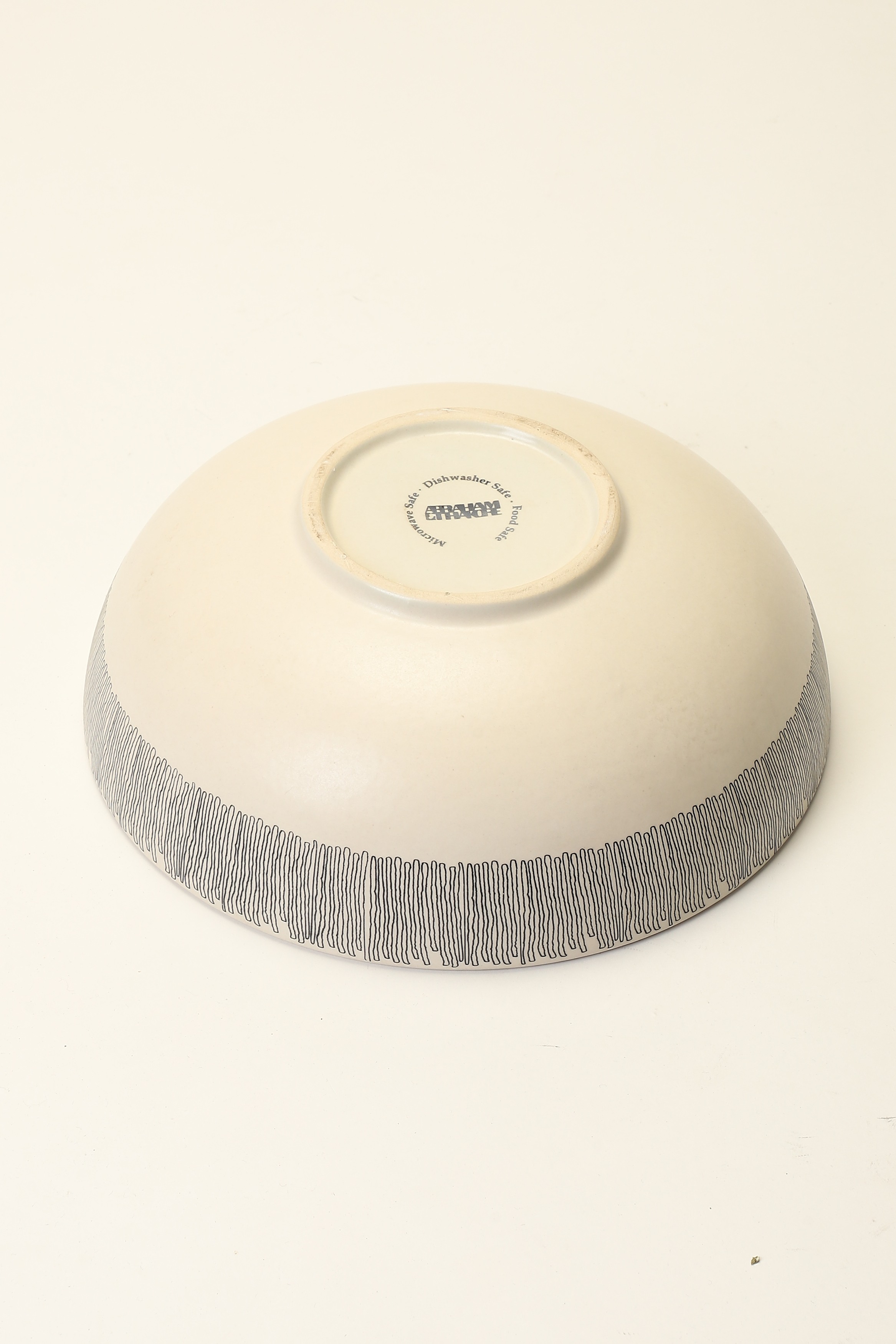 Inspired from fine scribble hand embroidery, the effect has been translated into stoneware and designed around the shape of this individual piece.