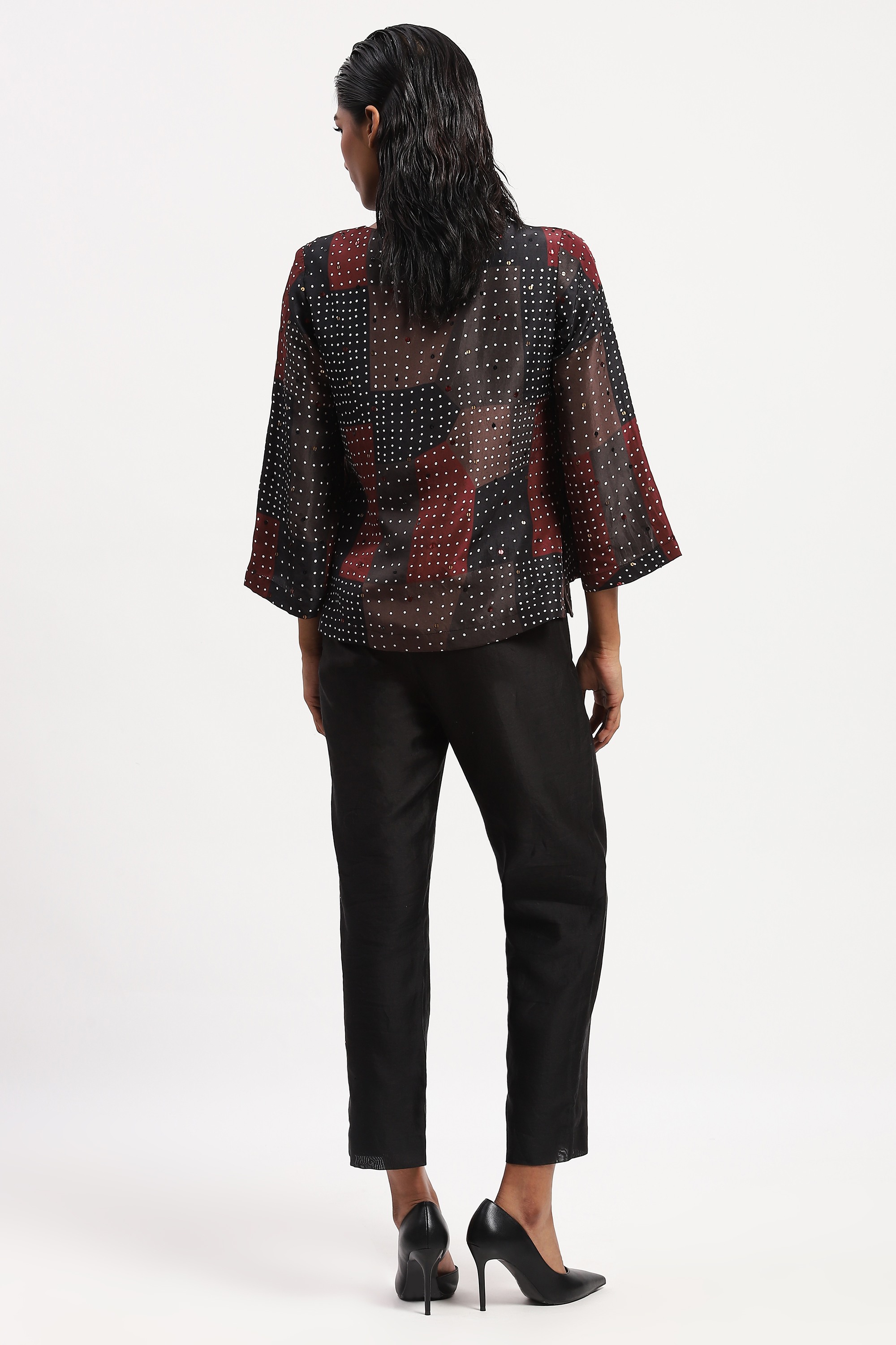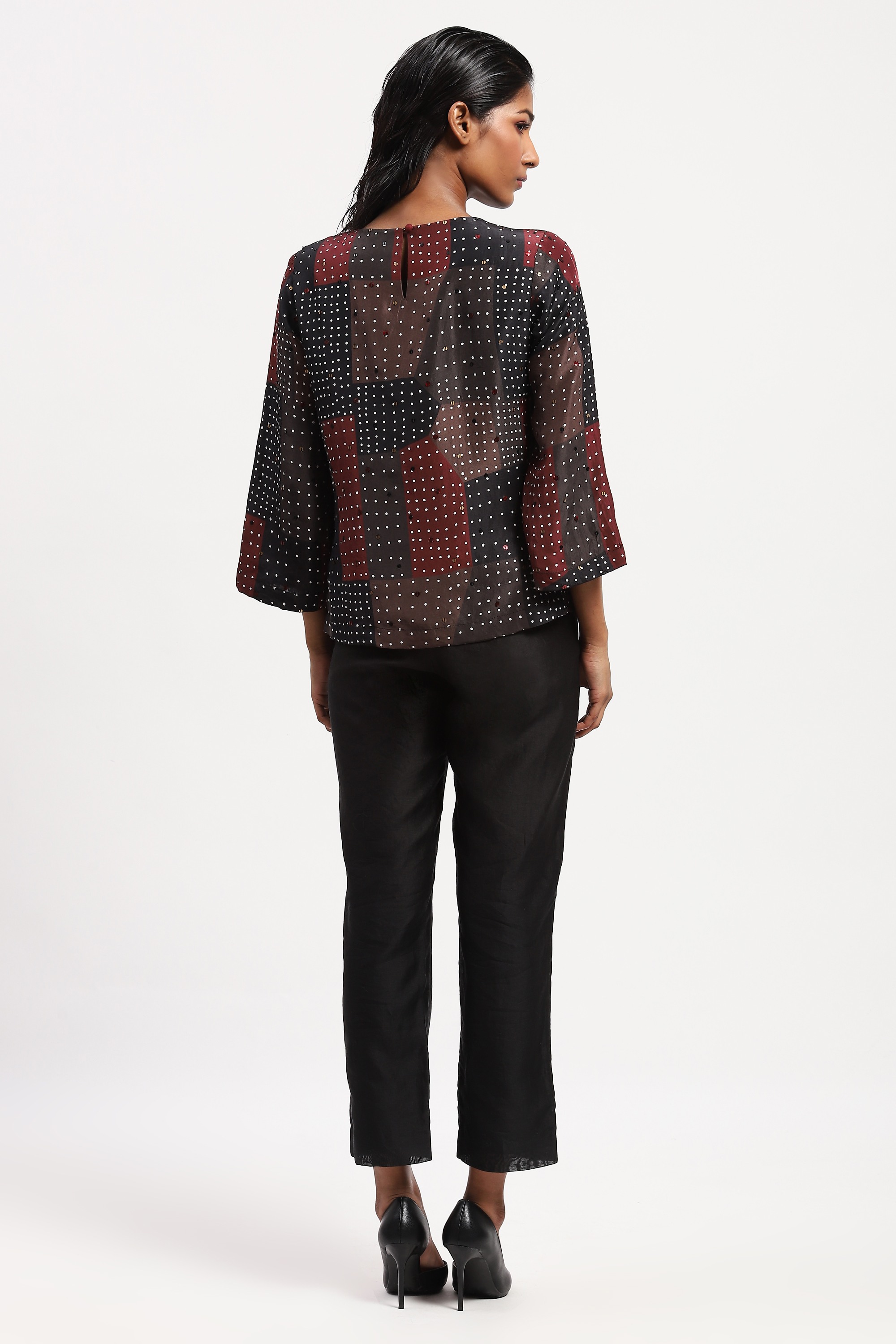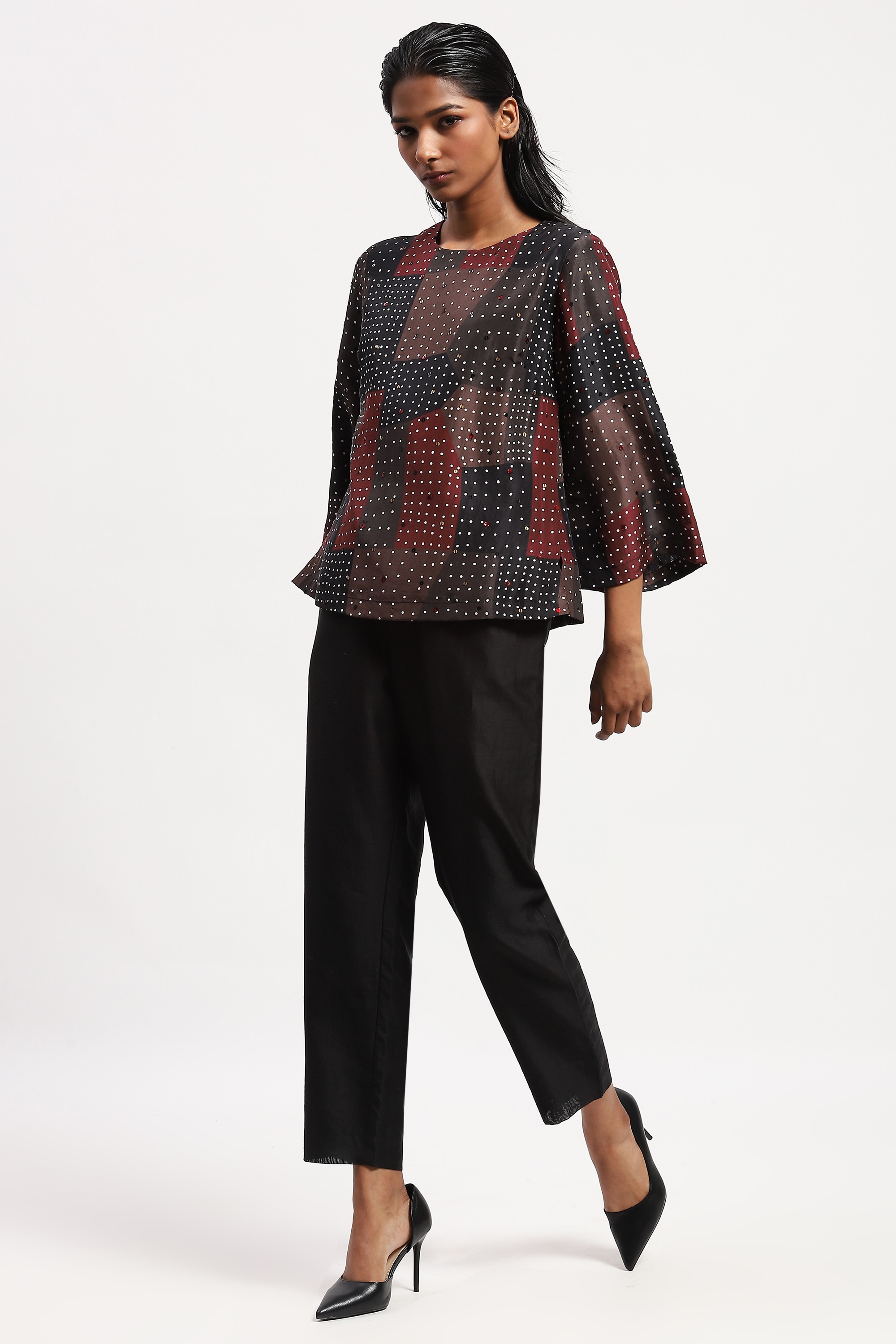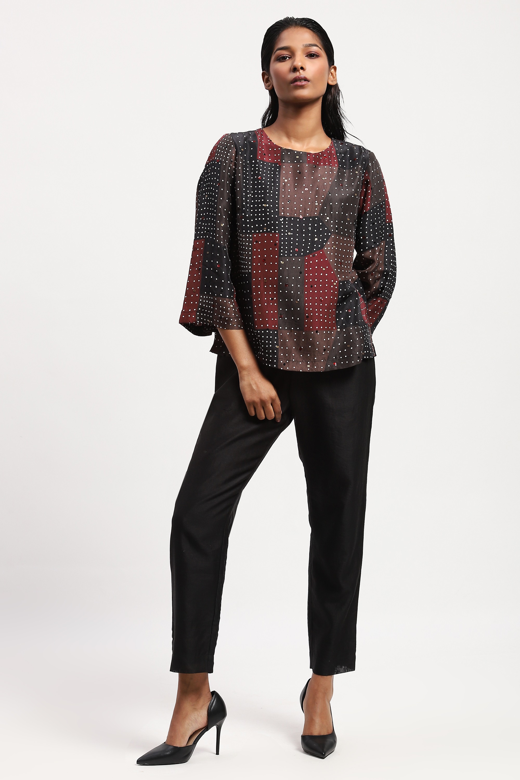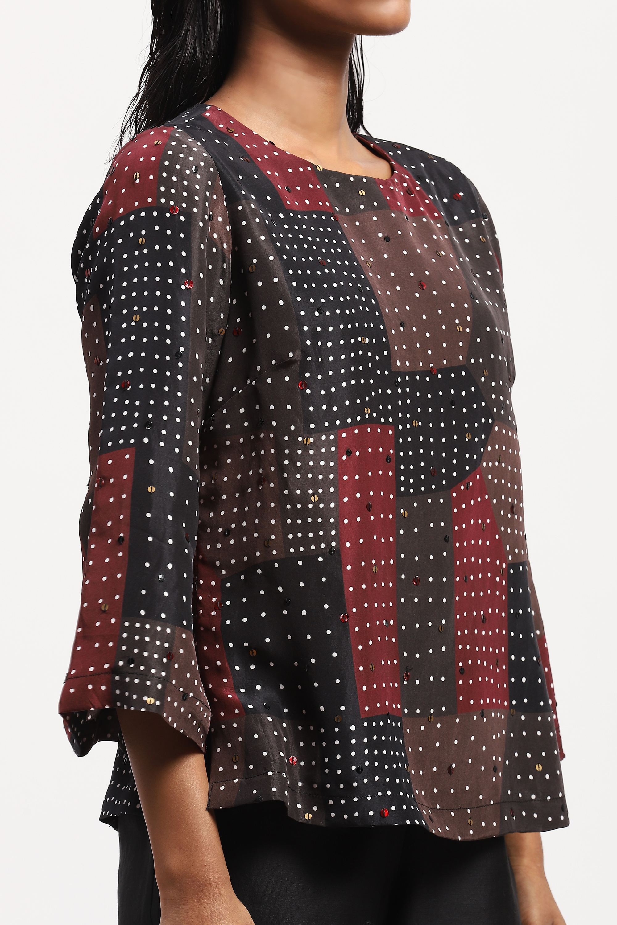 Best paired with a handcrafted playlist, this top is crafted in soft silk habutai. Its digitally printed pattern is embellished with a grid of sequins.