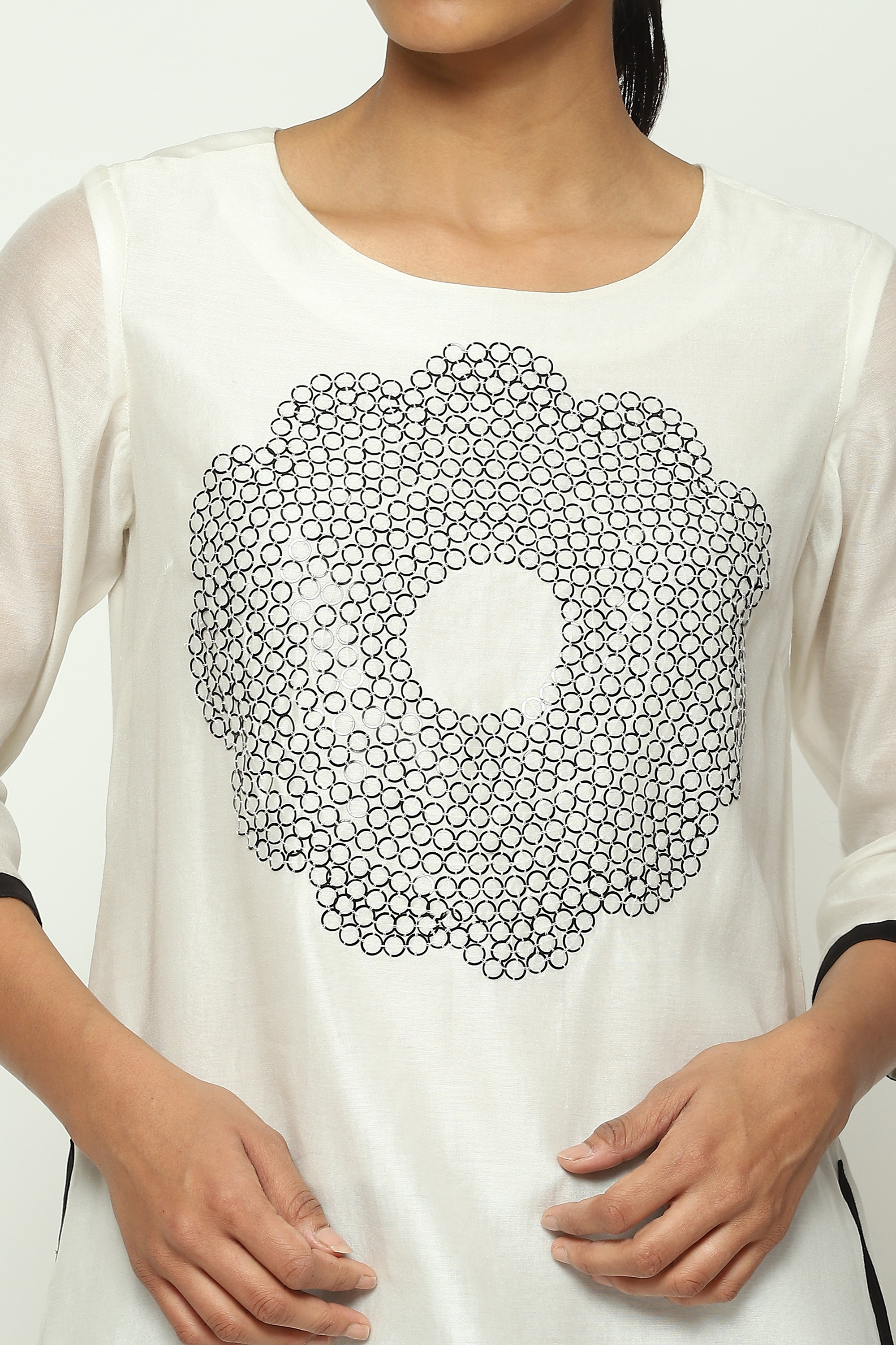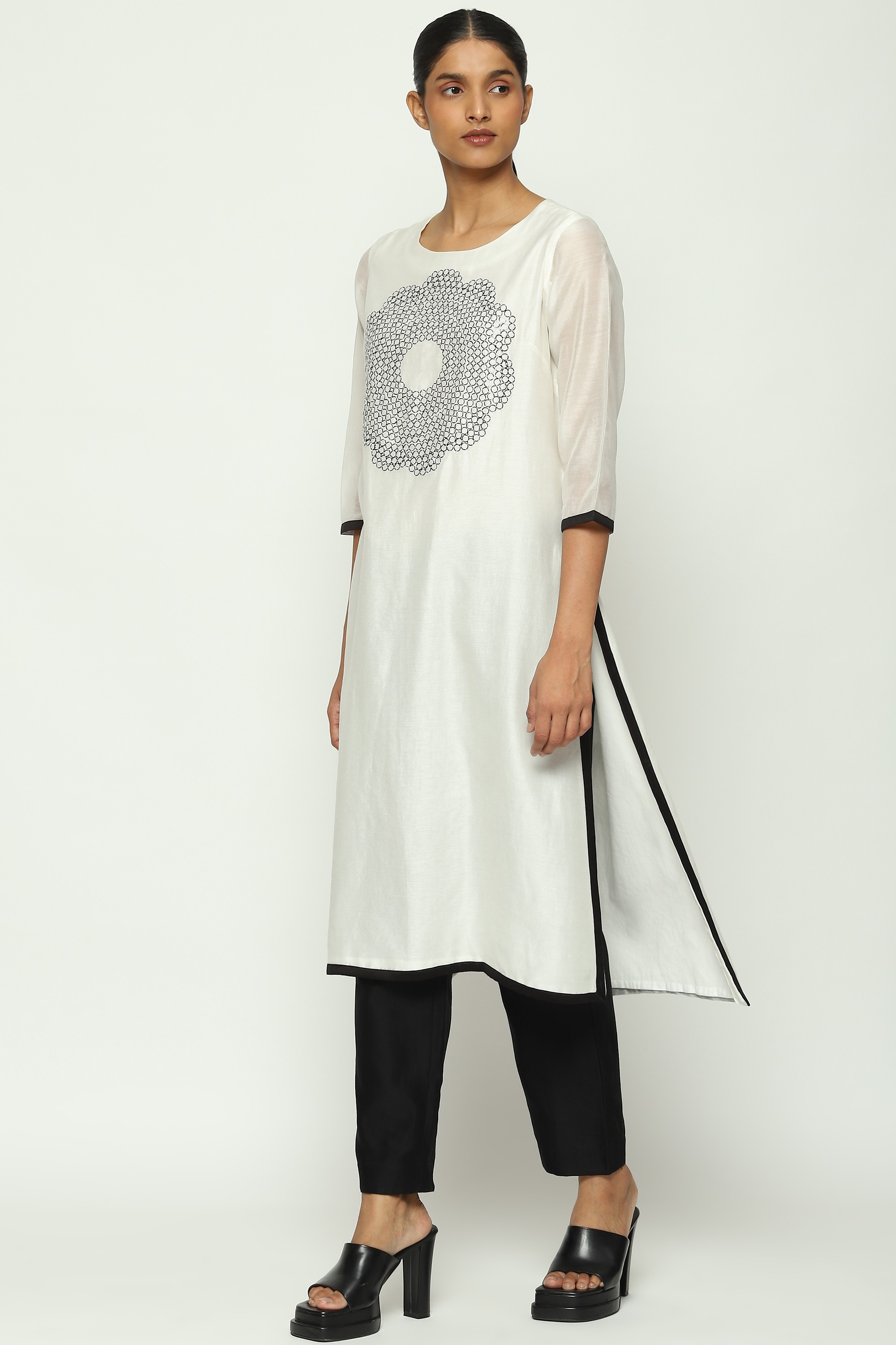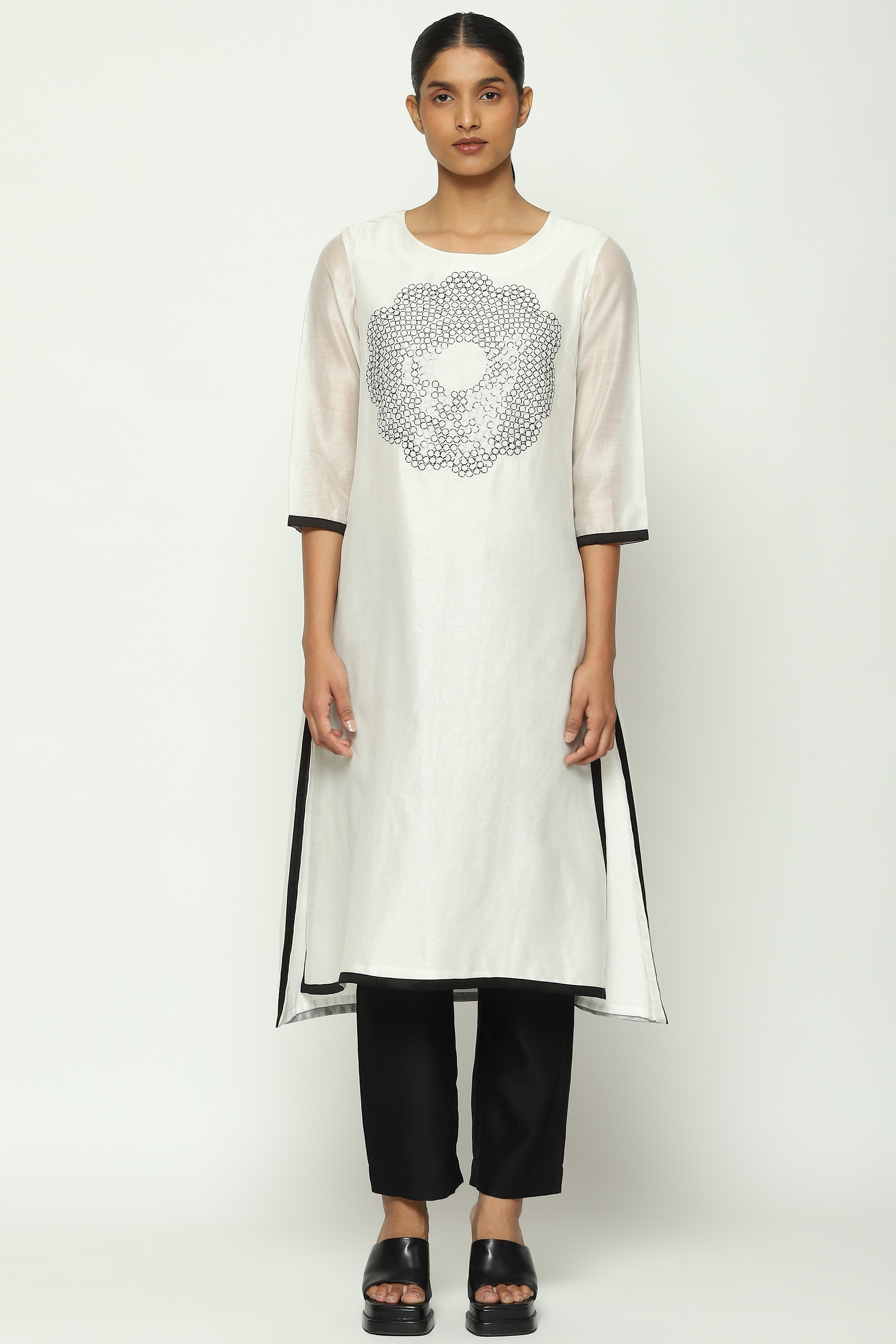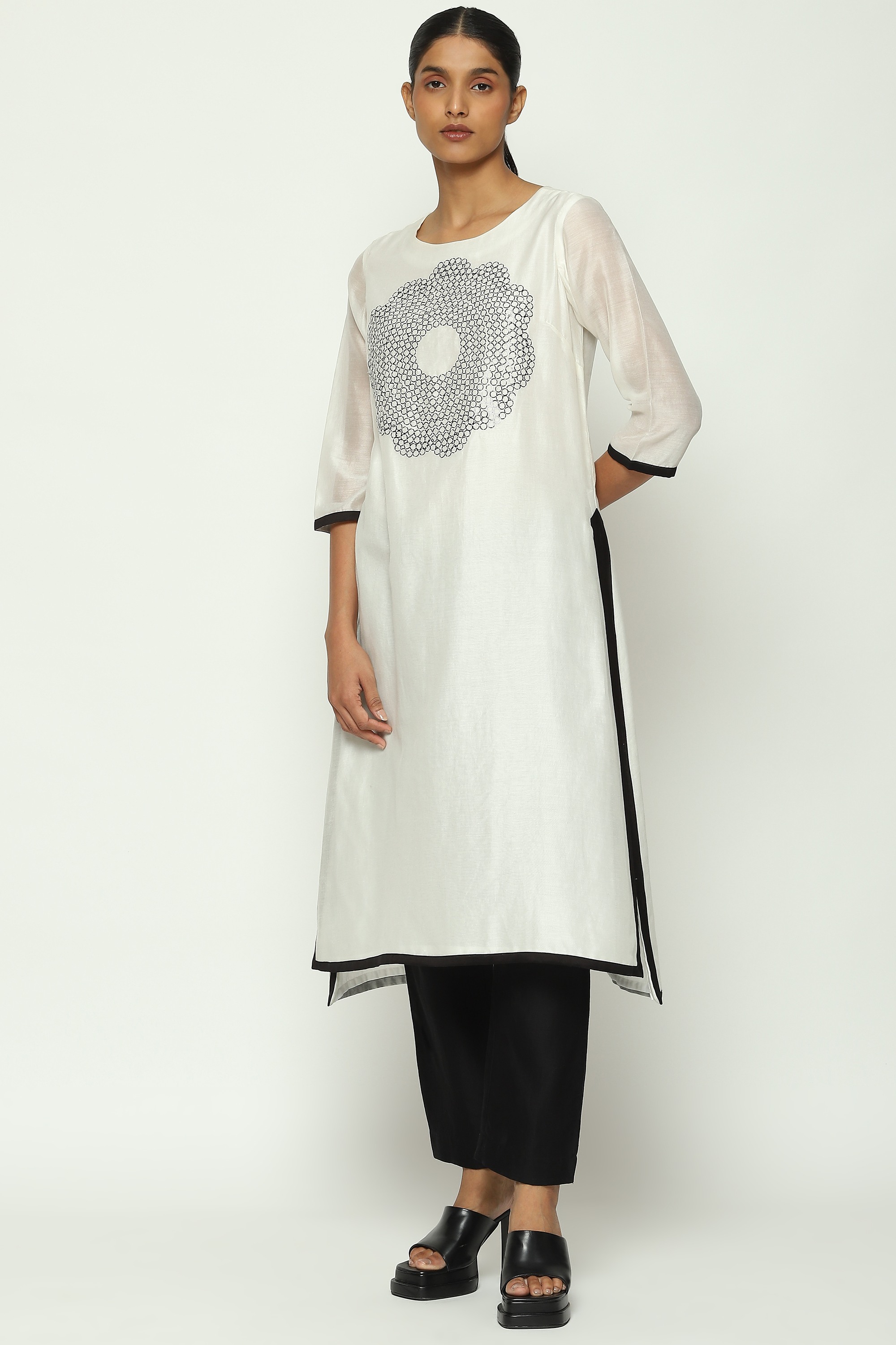 A symbol of harmony, embroidered with sequins on an ivory kurta.