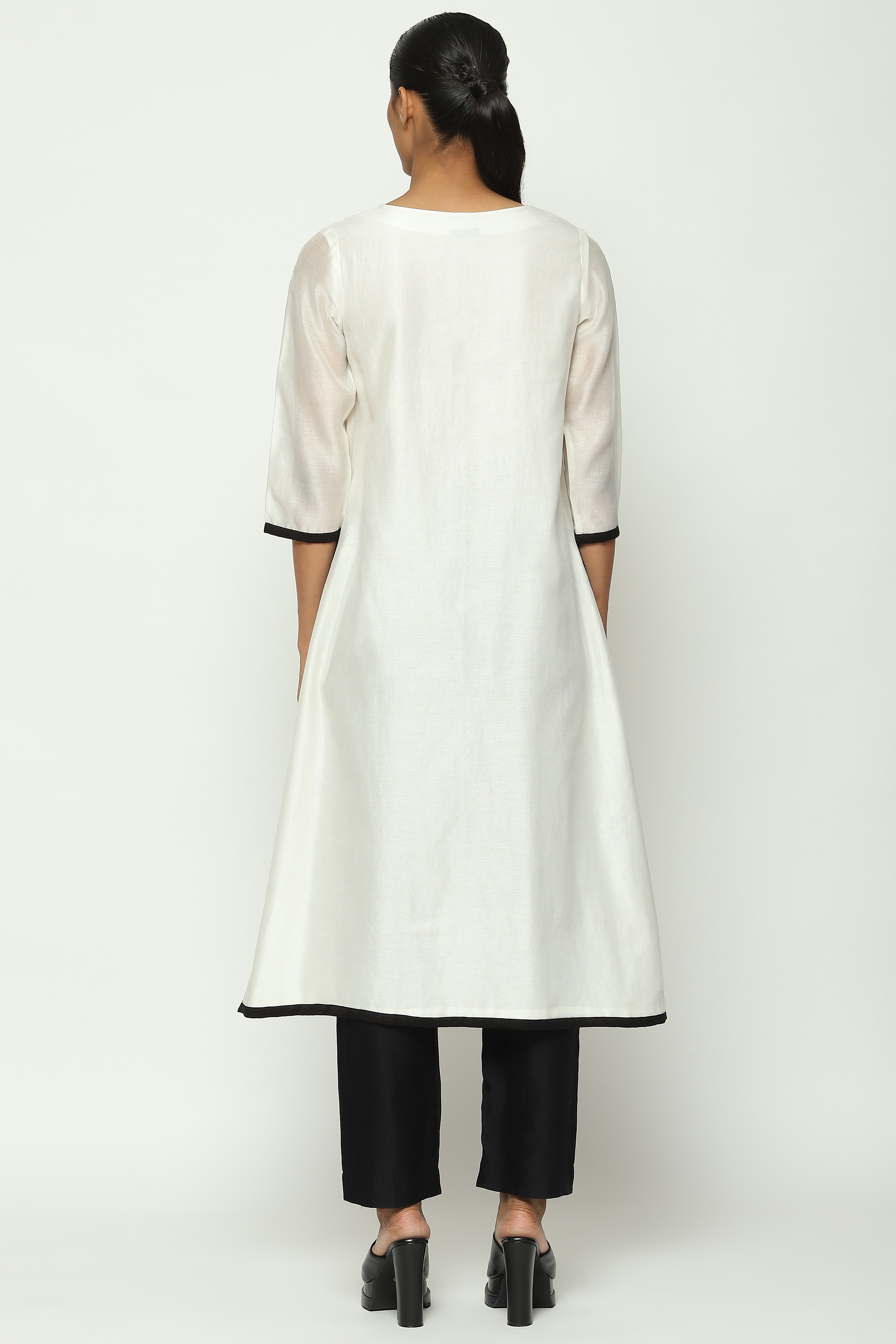 Body Language — the latest edit from Abraham & Thakore — explores humanity's connection with nature. The floral motif on this creation is hand adda embroidered on chanderi, a soft luxurious fabric.